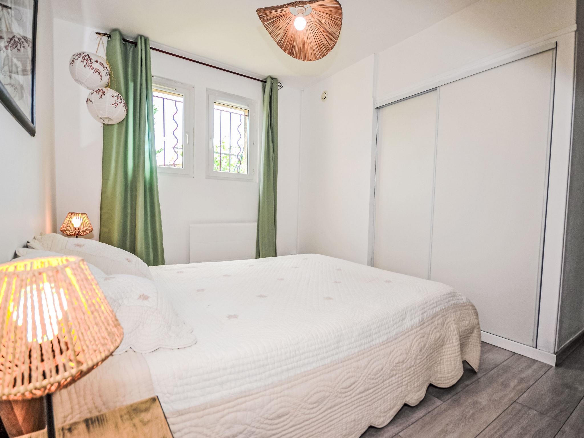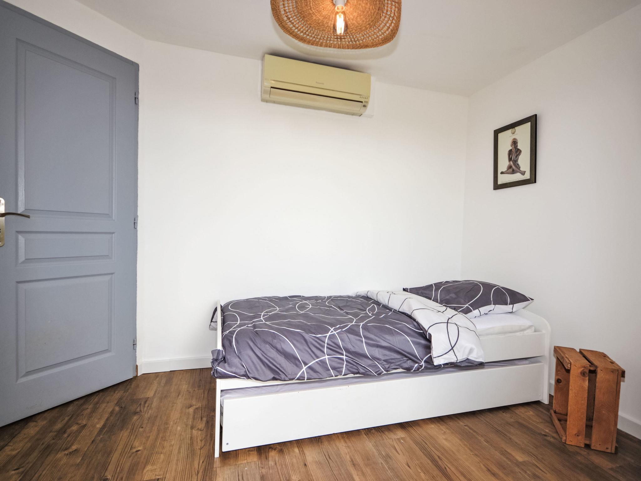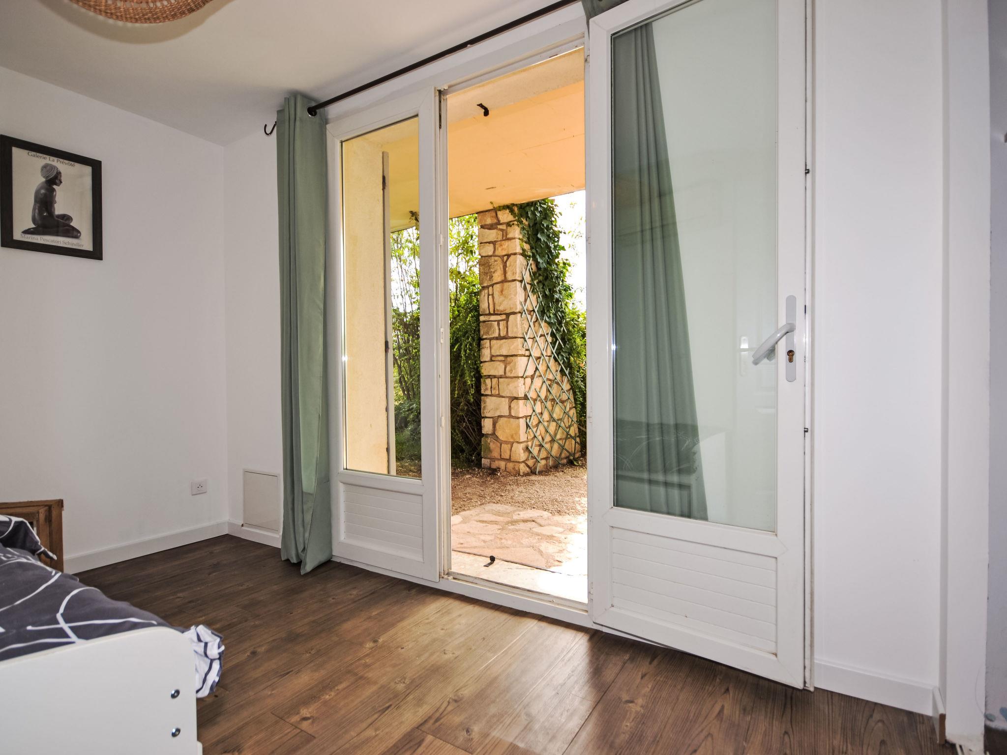 "Les Santons", 3-room apartment on the ground floor, west facing position. Bright, renovated in 2025, beautiful and tasteful furnishings: living/dining room with TV, international TV channels and air conditioning. Exit to the terrace. 1 room with 1 french bed (160 cm, length 200 cm). 1 room with 1 pull-out bed (2 pers. 2 x 90 cm, length 190 cm), air conditioning. Exit to the patio. Open kitchen (4 hot plates, oven, dishwasher, microwave, freezer, electric coffee machine) with air conditioning. Sep. WC, bath or shower. Electric heating. Natural stone floors. Terrace 35 m2. Facilities: washing machine, children's high chair, baby cot. Internet (WiFi, free). Parking (fenced 2 cars). Please note: smoke alarm. Offer by a private individual according to Art. 155, IV of CGI.
