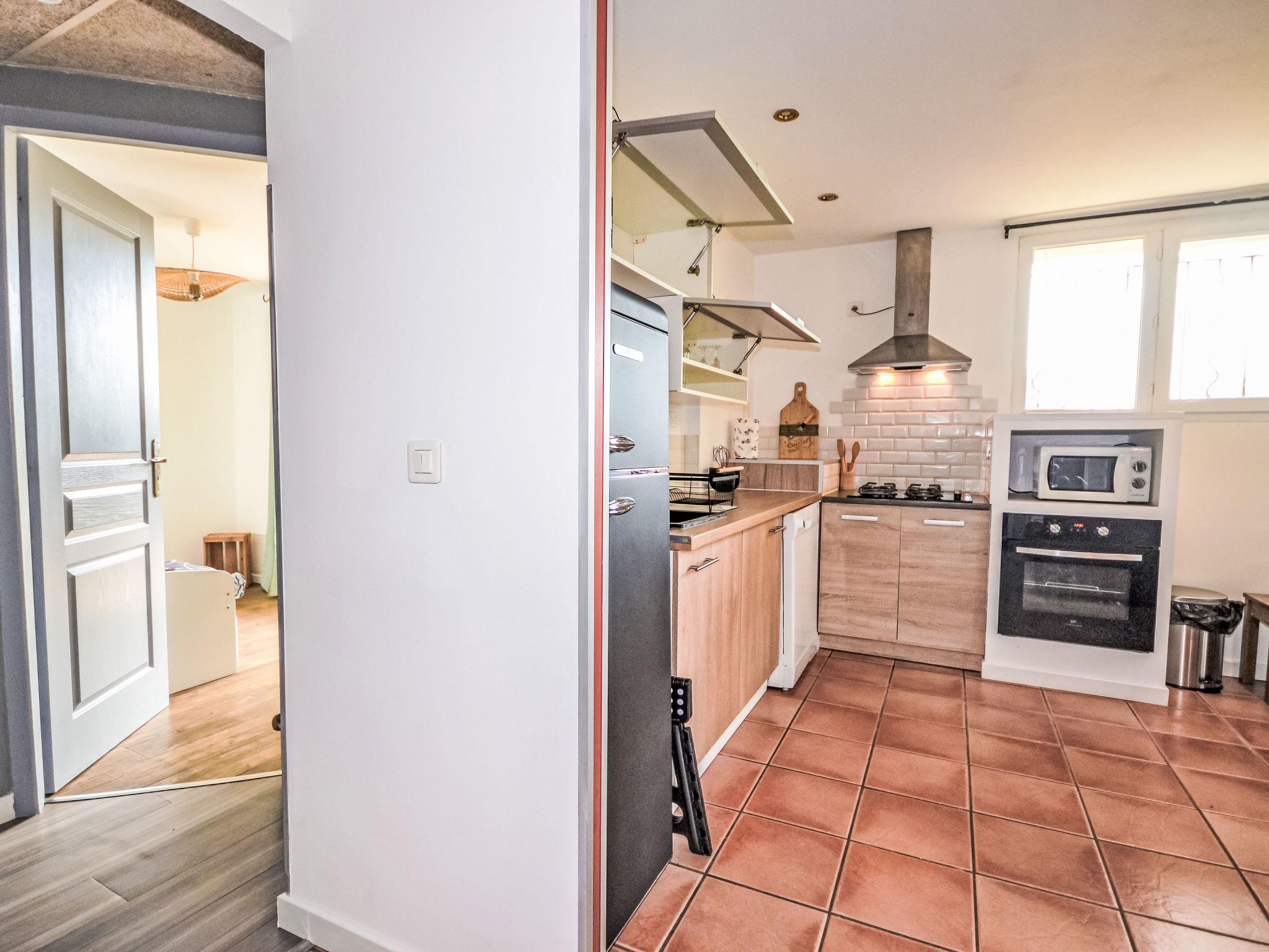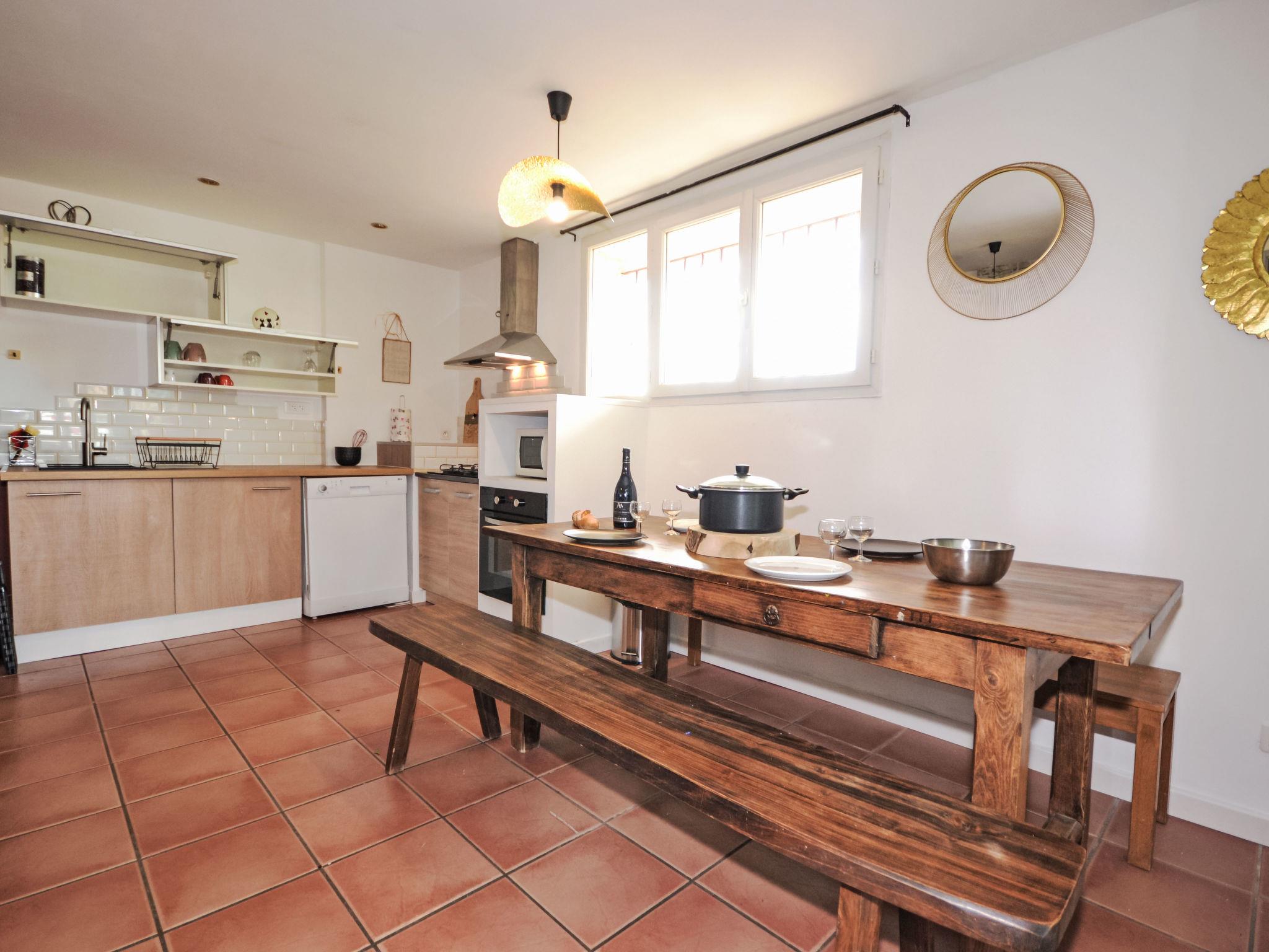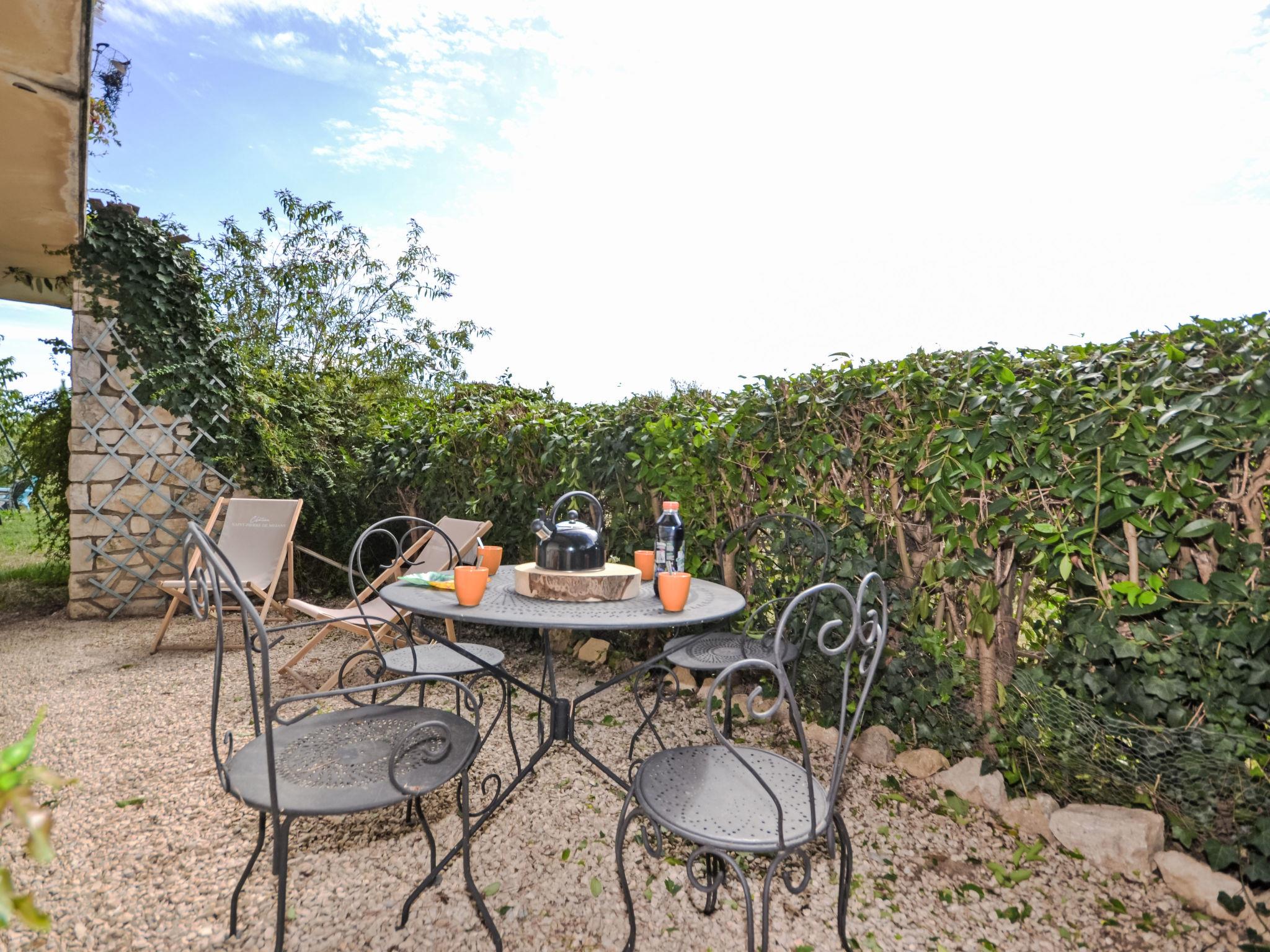 "Les Santons", 3-room apartment on the ground floor, west facing position. Bright, renovated in 2025, beautiful and tasteful furnishings: living/dining room with TV, international TV channels and air conditioning. Exit to the terrace. 1 room with 1 french bed (160 cm, length 200 cm). 1 room with 1 pull-out bed (2 pers. 2 x 90 cm, length 190 cm), air conditioning. Exit to the patio. Open kitchen (4 hot plates, oven, dishwasher, microwave, freezer, electric coffee machine) with air conditioning. Sep. WC, bath or shower. Electric heating. Natural stone floors. Terrace 35 m2. Facilities: washing machine, children's high chair, baby cot. Internet (WiFi, free). Parking (fenced 2 cars). Please note: smoke alarm. Offer by a private individual according to Art. 155, IV of CGI.