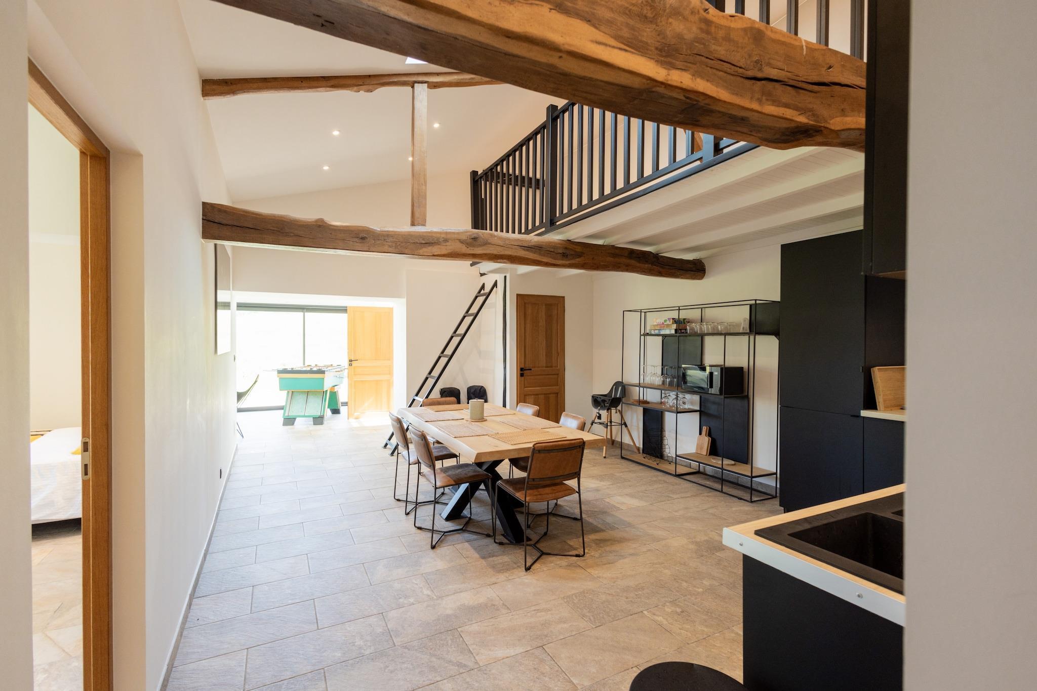 Oplev ro og komfort i vores feriehus beliggende i det rolige landskab i Peyrusse-Grande. Denne charmerende bolig tilbyder en perfekt blanding af moderne bekvemmeligheder og rustik charme, hvilket sikrer et dejligt ophold for både familier og grupper. I stueetagen finder du to veludstyrede køkkener. Det første køkken har komfur, komfur, kaffemaskine, ovn, grill, mikroovn og opvaskemaskine, mens det andet køkken indeholder komfur, kaffemaskine og køleskab med fryser. Tilbered lækre måltider med lethed og bekvemmelighed, uanset om du laver en solid morgenmad eller en gourmetmiddag. Mens centrum af Peyrusse-Grande ligger 17 km væk, finder du praktiske spisemuligheder kun 2 km fra feriehuset, så du kan prøve lækre lokale retter uden at vove dig for langt. Samles i den rummelige stue/spisestue, møbleret med tv, spisebord, komfortabelt opholdsområde og radio. Dette indbydende rum er ideelt til at nyde måltider sammen, slappe af efter en dag med udforskning eller blot slappe af med din yndlingsunderholdning. Soveværelserne er designet til komfort og tilbyder fredfyldte tilflugtssteder for en afslappende nats søvn efter dine eventyr i Peyrusse-Grande. Vågn op frisk og klar til at udforske de smukke omgivelser. Udenfor kan du nyde afslappede stunder ved den private swimmingpool. Afslut din dag med at slappe af på balkonen eller terrassen, nyde den rolige atmosfære og nyde den naturskønne udsigt.