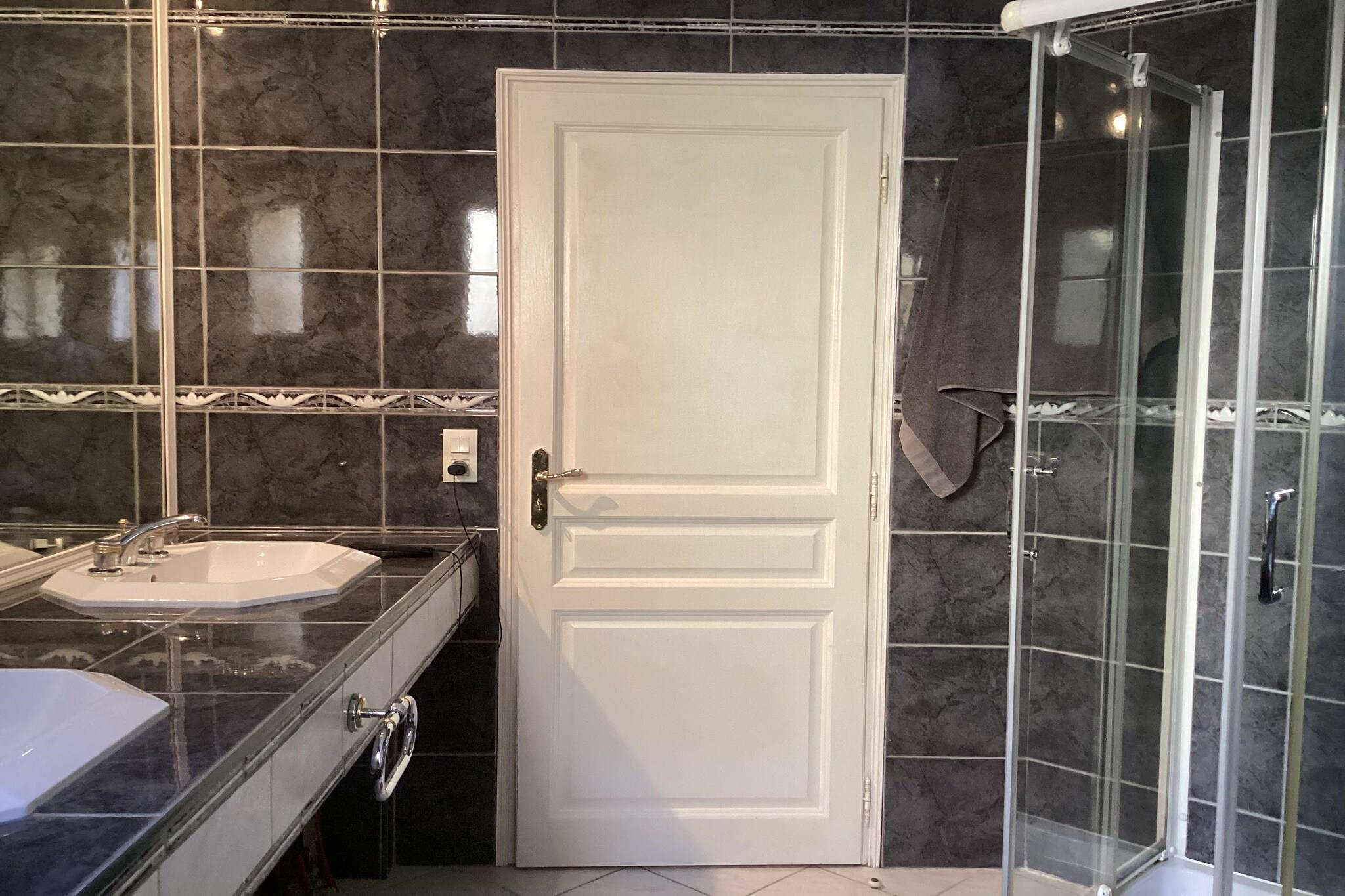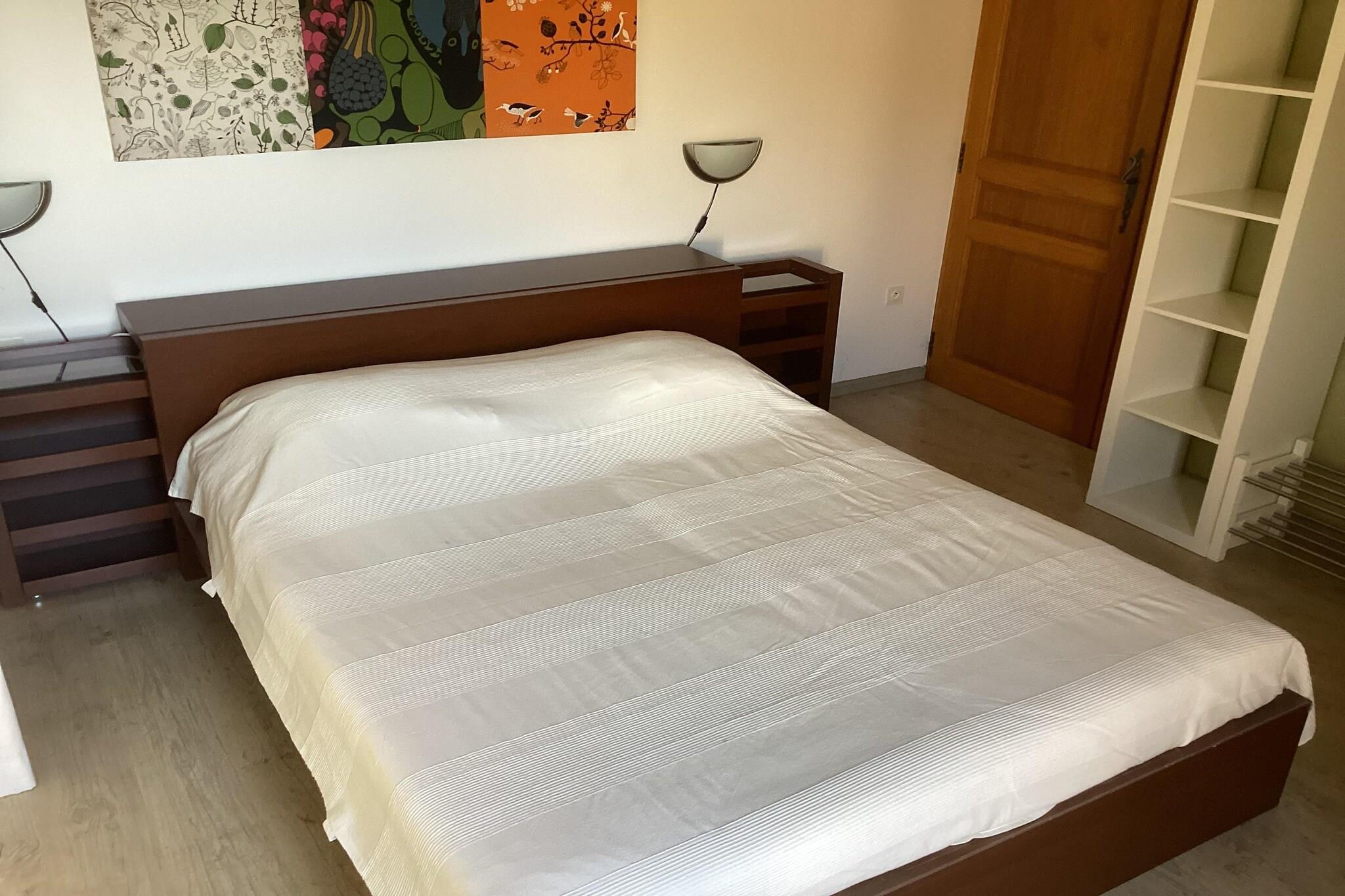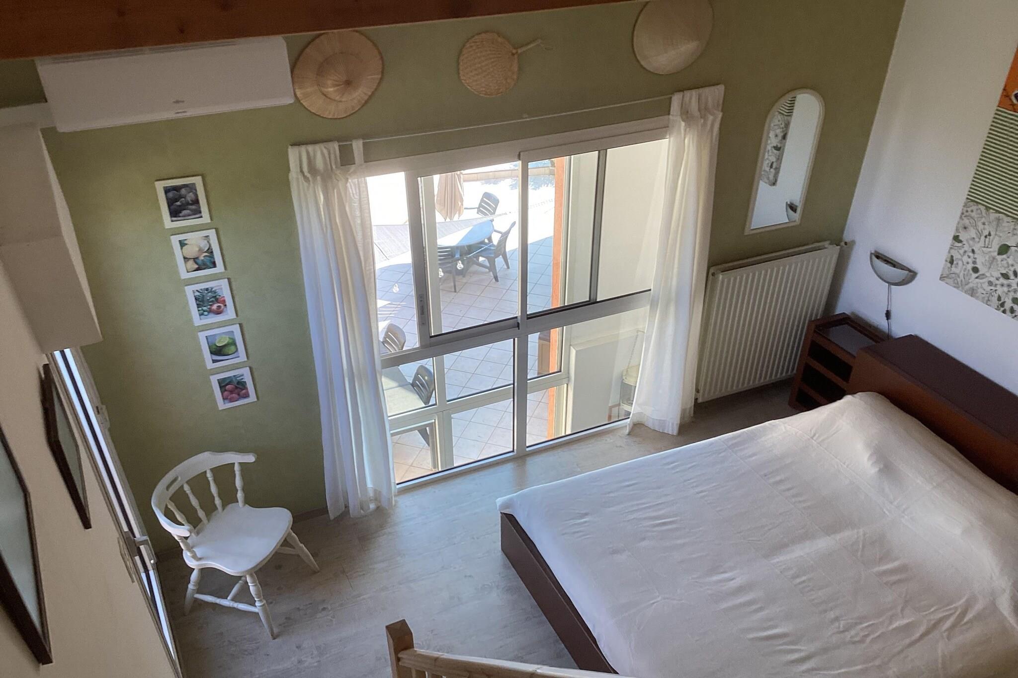 Flygt til et fredeligt tilflugtssted i denne charmerende villa, beliggende i hjertet af en rummelig privat have og komplet med egen swimmingpool. Ejendommen er perfekt til familier eller grupper og tilbyder to separate indgange og flere terrasser - nogle overdækkede - til afslappende øjeblikke i skyggen eller solen. Selvom villaen er roligt beliggende, ligger den kun en kort gåtur fra butikker, restauranter og lokale aktiviteter, hvilket tilbyder det bedste af både privatliv og bekvemmelighed. Indenfor finder du i stueetagen et lyst, åbent køkken udstyret med moderne apparater, herunder elkedel, kaffemaskine, ovn, mikrobølgeovn, opvaskemaskine og køleskab med fryser - alt hvad du behøver for at tilberede dine yndlingsmåltider. Den tilstødende opholds- og spisestue inviterer dig til at slappe af med et hyggeligt siddeområde og tv. To komfortable soveværelser med dobbeltsenge (160x200 cm) og et rummeligt badeværelse med både badekar og bruser fuldender stueetagen. Ovenpå tilbyder det tredje soveværelse ekstra privatliv med en dobbeltseng, eget brusebad og et separat toilet - ideelt til gæster eller den udvidede familie. Udenfor omgiver den frodige have villaen med middelhavsgrønne områder, mens den private pool og liggestolene inviterer dig til at tilbringe afslappende eftermiddage med at nyde solen. Uanset om du spiser udendørs på terrassen eller nyder en svømmetur under åben himmel, tilbyder denne villa de perfekte rammer for en afslappende og mindeværdig ferie.