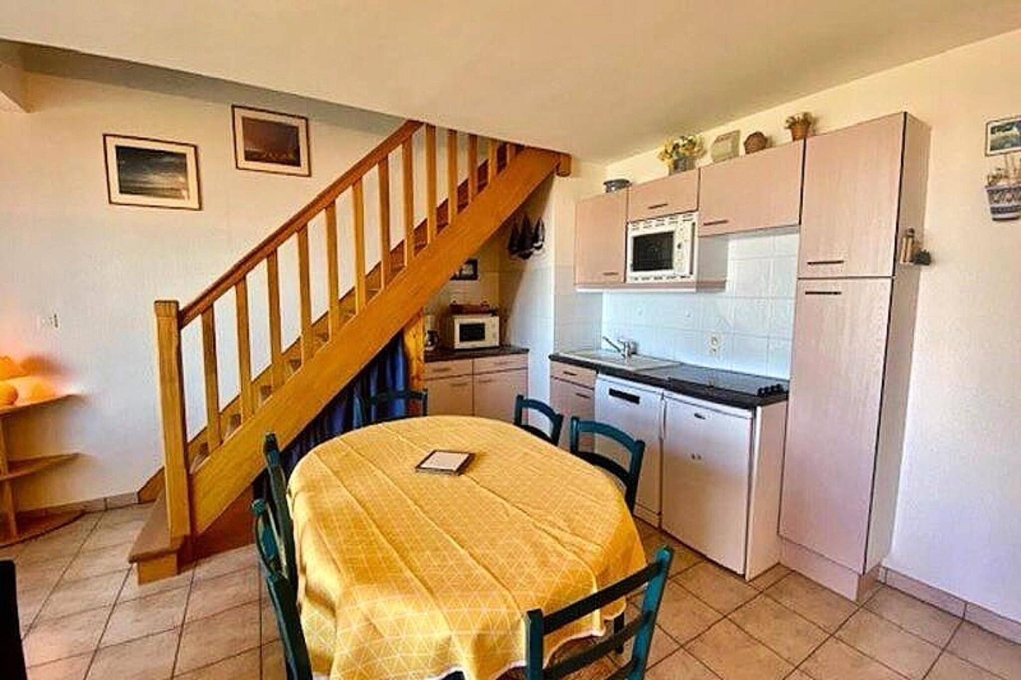 This charming sea-view apartment offers a comfortable stay for 4 to 6 people, with cozy sleeping arrangements including a double bed, bunk beds, and a mezzanine featuring a 160cm bed. The apartment is located on the first floor, providing a peaceful environment overlooking the port and the stunning bay of Quiberon. Pets are not allowed, and Wi-Fi is available for guests' convenience. A private garage (No. 7) is also included, ensuring secure parking during your stay. A consumption package is required, except from May to September, with optional end-of-stay cleaning and linen rental services. Guests can enjoy the surrounding area, with direct access to the port and a nearby coastal path, perfect for scenic walks. The area offers a range of cafes, markets, and local attractions, ensuring a vibrant yet relaxing atmosphere for your stay. Whether exploring the nearby beaches or soaking in the bay’s beauty, this location is ideal for a peaceful getaway or an adventurous exploration of Quiberon’s natural wonders. The apartment includes a fully equipped kitchen, featuring a four-burner electric hob, mini-oven, refrigerator, microwave, dishwasher, coffee maker, and toaster, perfect for preparing home-cooked meals. The living area provides ample space to relax with a sofa and TV, while the separate bathroom with a washing machine adds convenience for longer stays. Guests can also enjoy a large sea-facing balcony with garden furniture, ideal for outdoor relaxation.