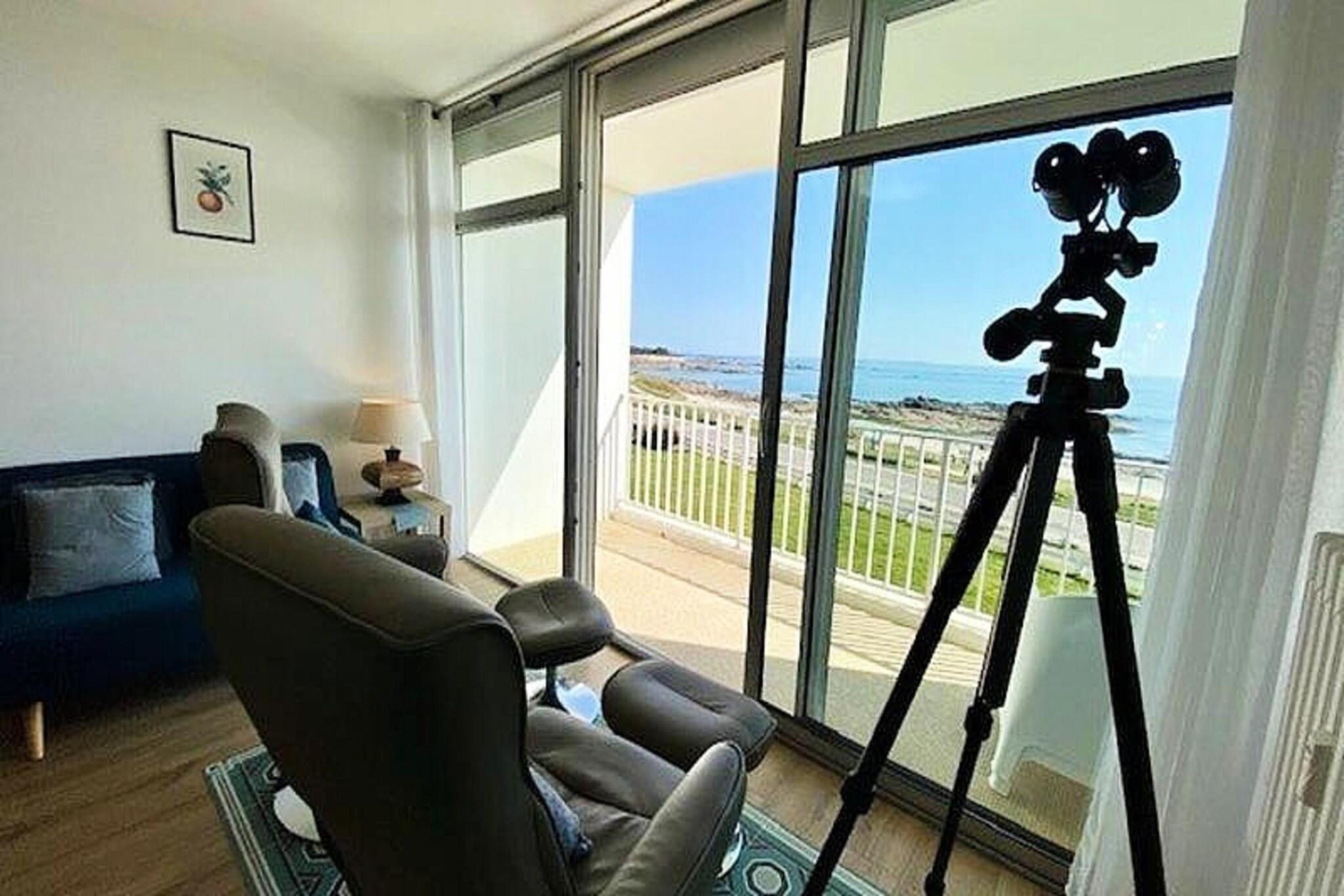 This fully renovated 35m² studio is perfect for up to three guests. It features a spacious living area with a 160cm bed and a 110cm single sofa bed, ideal for relaxing or sleeping. The studio includes a bathroom with WC and provides comfortable bedding with duvets. A beautiful south-facing loggia offers stunning sea views of Houat and Belle Ile. The apartment is non-smoking and does not allow pets, ensuring a peaceful environment. Private parking is available in the residence for added convenience. Located just 150 meters from the beach and next to Thalassotherapy and Pointe du Conguel, this studio is ideally placed for enjoying the local area. The surrounding neighborhood is filled with cafes, restaurants, and vibrant markets, perfect for sampling local delicacies. Whether you want to relax on the beach or explore the coastal attractions, this location offers plenty to do. The studio is equipped with an open kitchen, featuring a fridge, hotplates, microwave, and mini-oven, making it easy to prepare meals. Guests can enjoy the full sea view from the loggia with garden furniture, adding an extra touch of relaxation. With included WiFi and optional services like end-of-stay cleaning, linen rental, and childcare equipment, this apartment offers both comfort and convenience for a memorable stay.