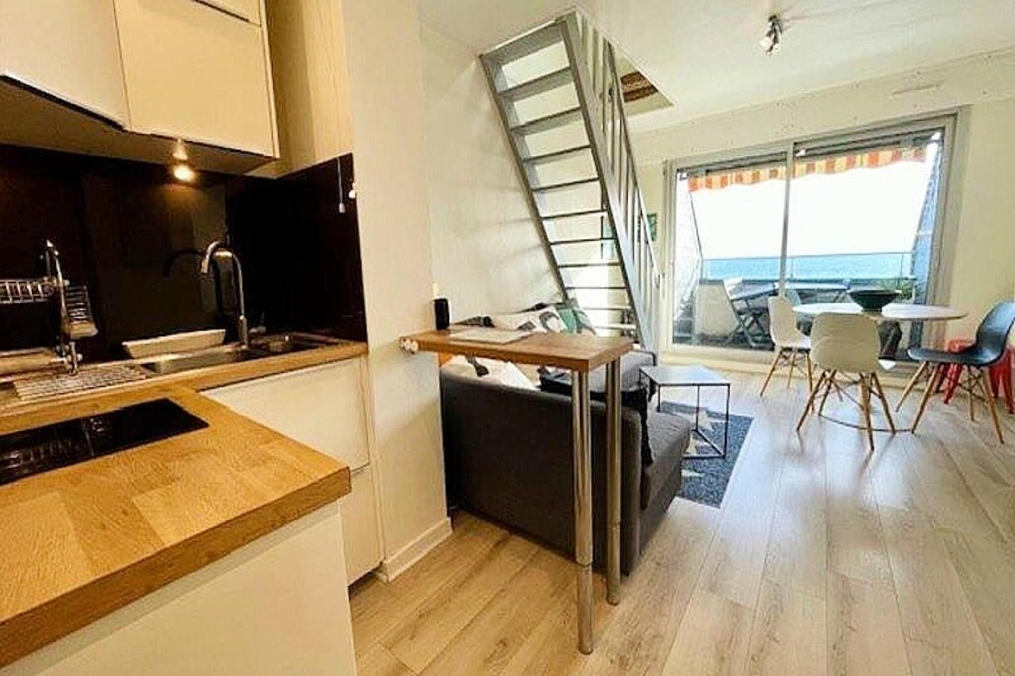 This beautifully renovated mezzanine studio offers a stylish and comfortable retreat for up to 4 people. The living area is equipped with a TV, DVD player, and a 140cm convertible corner sofa, perfect for relaxing. Upstairs, you'll find a 140cm bed with duvets and a charming adjoining dressing room with a washing machine. The property is pet-friendly, with an additional charge for pets, and includes a parking space for convenience. Located opposite the Château Turpault and Belle-Ile-en-Mer, this apartment is in a prime spot just a short walk from the center and local shops. The stunning sea views from the south/west-facing balcony add to the appeal, providing a peaceful setting to unwind. Explore the nearby attractions, cafes, and markets, making this an ideal base for your stay. The apartment includes a well-equipped kitchen with a 2-burner induction hob, oven, microwave, fridge-freezer, and dishwasher, allowing you to prepare meals with ease. The bathroom is separate from the WC, offering added privacy. Additional services such as linen rental, childcare equipment, Wi-Fi minibox, and optional end-of-stay cleaning are available for added comfort during your stay.