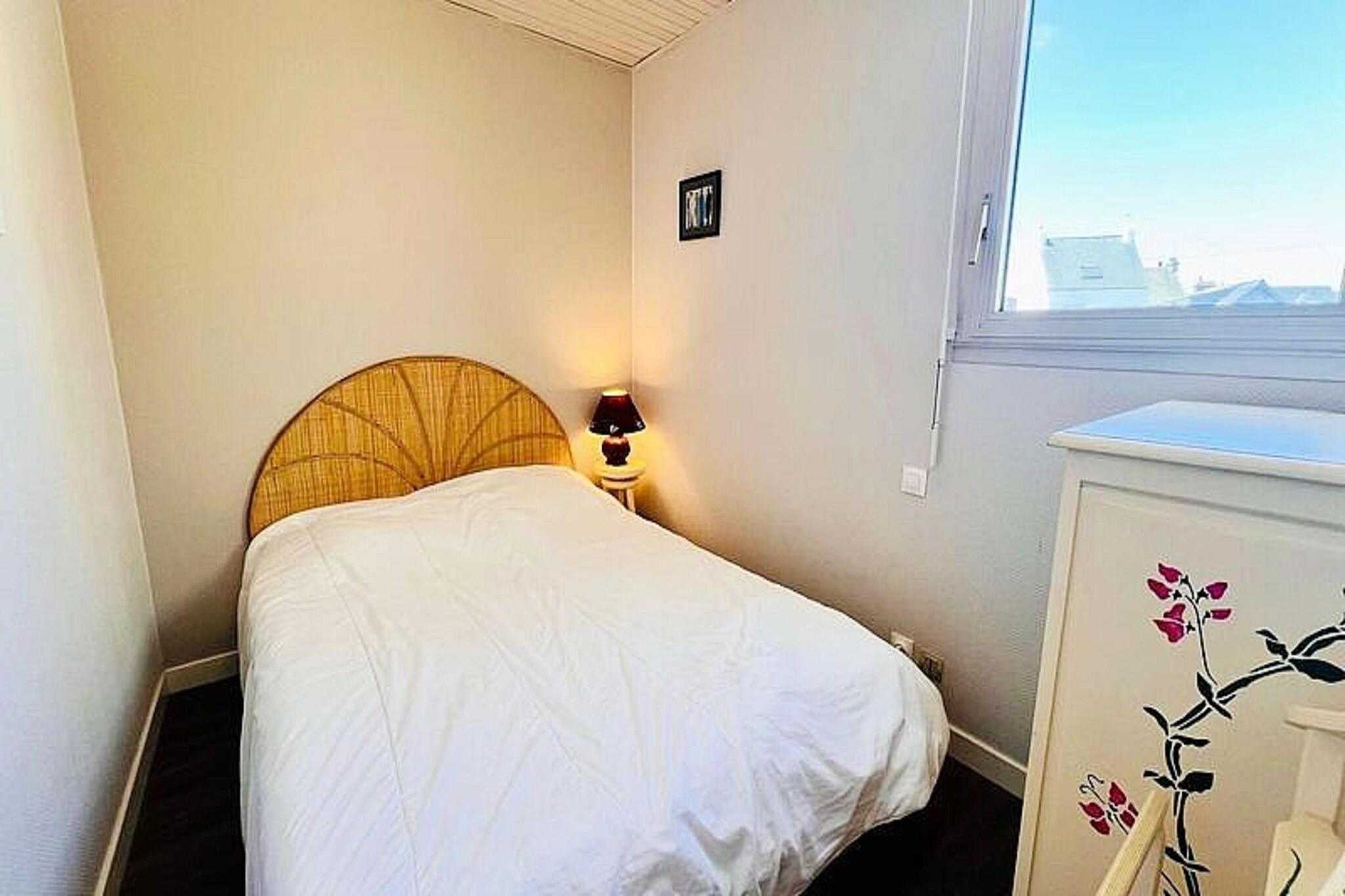 This pleasant 2-room apartment offers stunning sea views and a glimpse of Turpault Castle, providing a perfect retreat for 2 guests. The apartment includes a cozy living room with a 140cm convertible sofa and a TV, ideal for relaxation. The bedroom features a new 140cm bed for a comfortable night’s sleep. Pets are welcome with an additional fee, making it a great option for pet owners looking to enjoy a seaside getaway. A parking space is included in the residence, along with access to a shared bike rack for outdoor adventures. Located just steps from the center of Quiberon, this apartment is perfectly positioned to explore the vibrant area. Guests can enjoy nearby shops, cafes, and the large beach, which is perfect for strolling, swimming, or enjoying the beautiful coastal scenery. The stunning Turpault Castle is also within view, adding to the charm of the location. The area is ideal for those seeking both relaxation and easy access to local attractions. The apartment features an equipped kitchen area with a 4-burner electric hob, oven, microwave, and refrigerator, offering everything needed for preparing meals. The south/west-facing balcony is a highlight, providing beautiful views of the sea while guests enjoy their meals or relax outdoors. The bathroom includes a separate WC for added convenience. Whether you're cooking, exploring, or simply enjoying the view, this apartment offers the perfect home base.