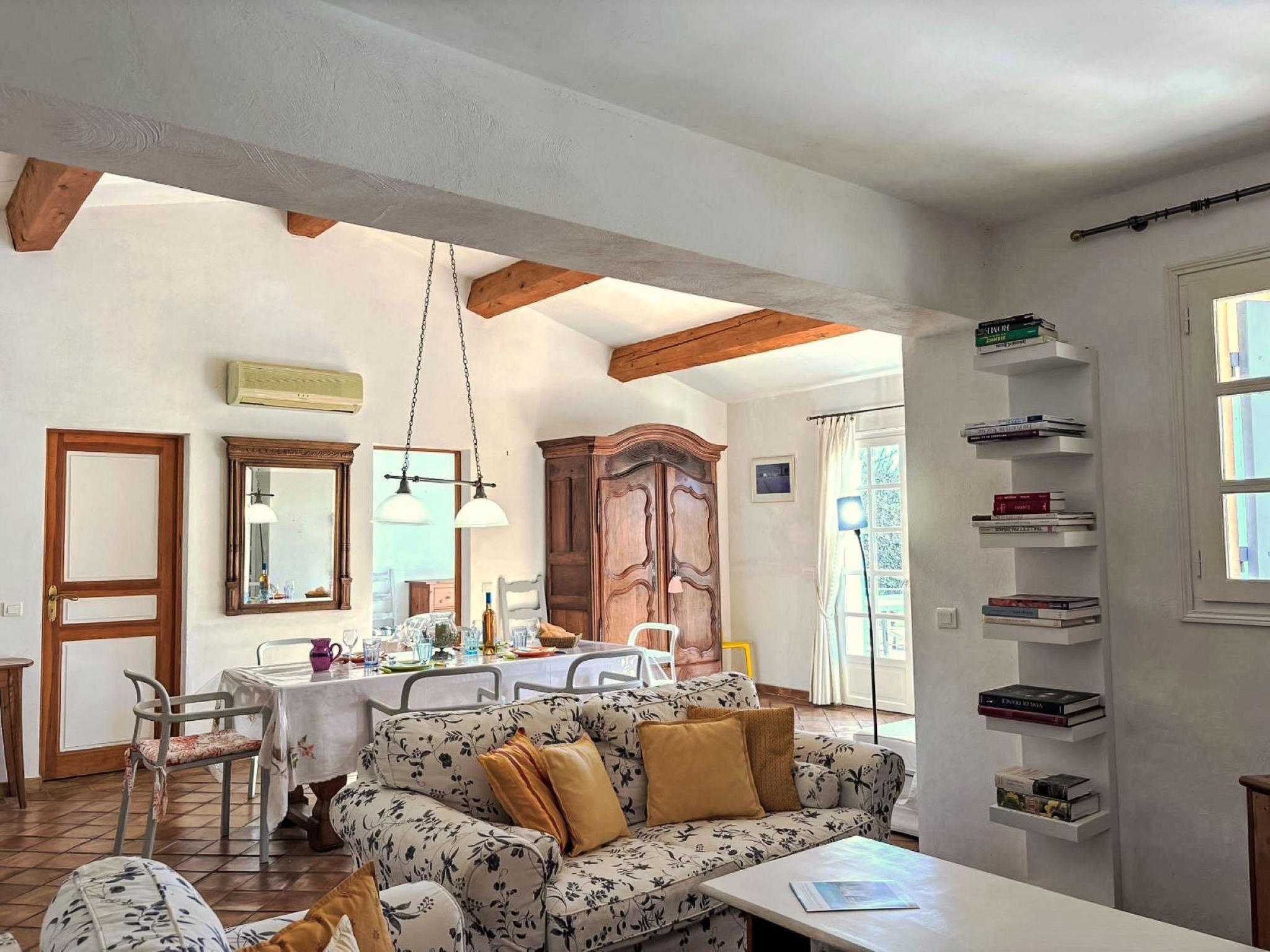3-room house 90 m2. Cosy furnishings: living/dining room with TV (flat screen). Exit to the terrace. 1 room with 1 french bed (160 cm, length 190 cm), shower/WC and double hand-basin. Exit to the terrace. 1 room with 2 beds (90 cm, length 190 cm), shower. Open kitchen (4 hot plates, oven, dishwasher, toaster, kettle, microwave, freezer, electric coffee machine, Capsules for coffee machine (Nespresso) extra). Sep. WC. Electric heating, air-conditioning. Large terrace 45 m2 partly roofed, south-east facing position. Terrace furniture, barbecue, deck chairs (4). Facilities: washing machine, iron. Internet (WiFi, free). Parking (2 cars). Please note: non-smokers only. Maximum 1 pet/ dog allowed. Smoke alarm. Offer by a private individual according to Art. 155, IV of CGI. 83101000875Z5
