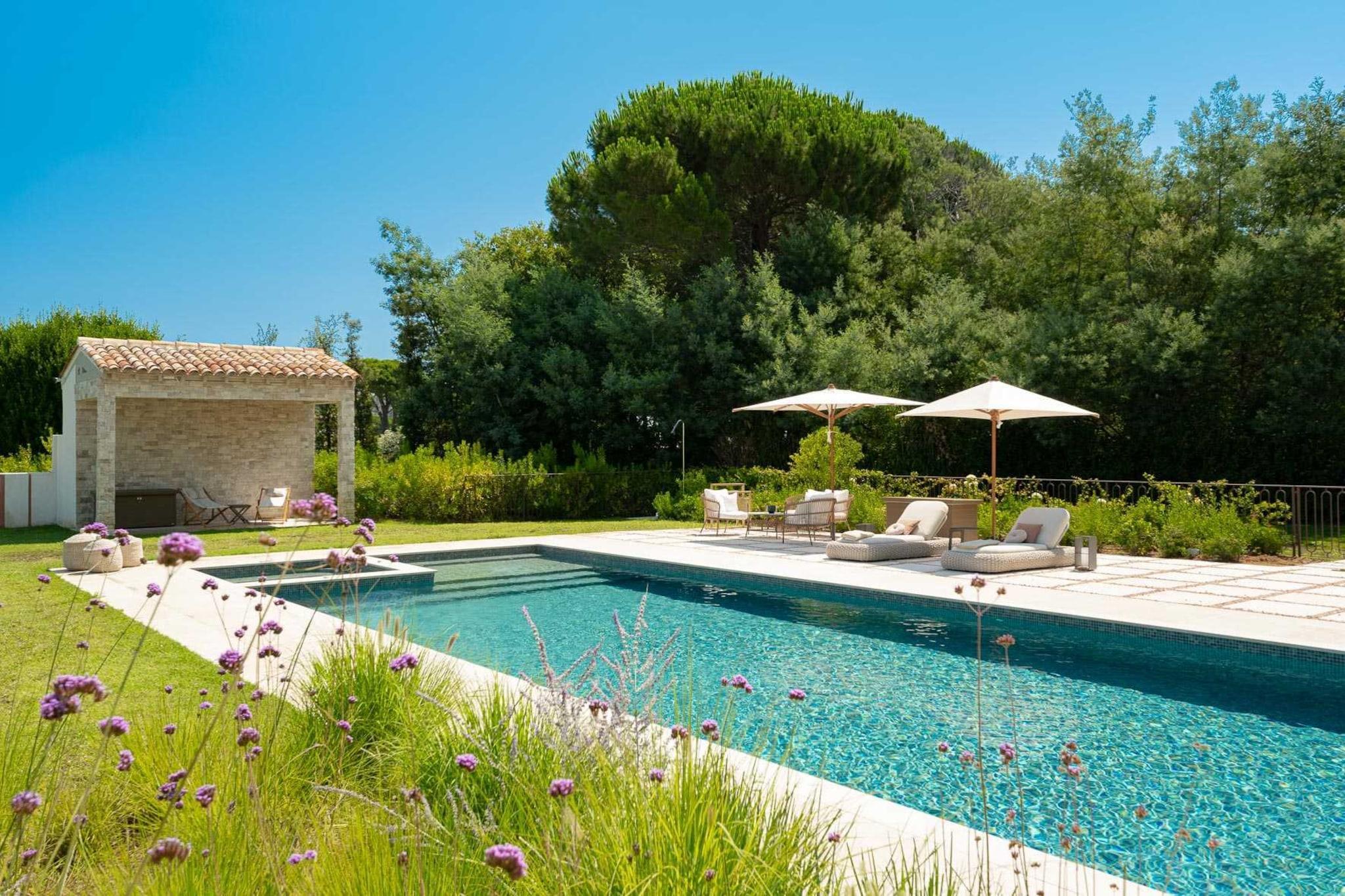 Sumptuous villa composed of 5 bedrooms with adjoining bathrooms. Located 9min from the center of Saint Tropez and the Baie des Canebiers. Nice airport: car 1h30 Saint-Tropez airport: 25 minutes by car Toulon Airport: 50 minutes by car Here are three activities to do around Ramatuelle, a region that offers a variety of options to enjoy the beauty of the French Riviera: Pampelonne Beach: Description: Soak up the sun and enjoy the Mediterranean Sea at the famous Pampelonne Beach. With its crystal-clear waters and iconic beach clubs, it's the perfect place to relax, swim, and soak in the beach atmosphere. Visit the Village of Saint-Tropez: Description: Explore the charming village of Saint-Tropez, located near Ramatuelle. Wander through its cobbled streets, colorful markets, and lively harbor. Visit iconic sites such as the Citadel of Saint-Tropez and the Church of Saint-Tropez. Hiking in the Massif des Maures: Description: Discover the natural beauty of the region by exploring the Massif des Maures, a range of wooded hills and mountains. Hiking trails offer panoramic views of the surrounding countryside, providing a tranquil getaway from the bustling beaches. Remember to check weather conditions and opening hours before planning your activities. Whether you prefer lounging on the beach, cultural exploration, or outdoor adventures, the area around Ramatuelle has plenty to offer.