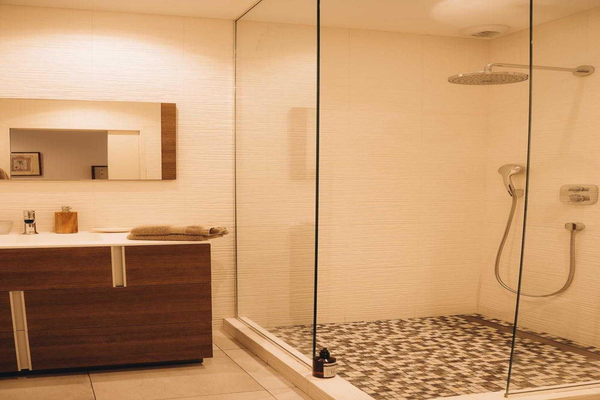 Ground floor: (Living room(TV, dining table, air conditioning), Kitchen(electric kettle, toaster, cooker, coffee machine, oven, microwave, fridge, dishes and cutlery, Cooking basics), bedroom(Queen Bed), bedroom(Queen Bed), bedroom(Queen Bed), bedroom(Queen Bed), bedroom(Queen Bed), bathroom(shower, washbasin, toilet), bathroom(shower, washbasin, toilet), bathroom(shower, washbasin, toilet), bathroom(shower, washbasin, toilet), toilet, toilet) First Aid, Play area, hot tub, hot tub, heating, garden, garden, BBQ, BBQ, Carbon monoxide detector, Downtown, Long term stays allowed, Near Ocean, Sea view, Town