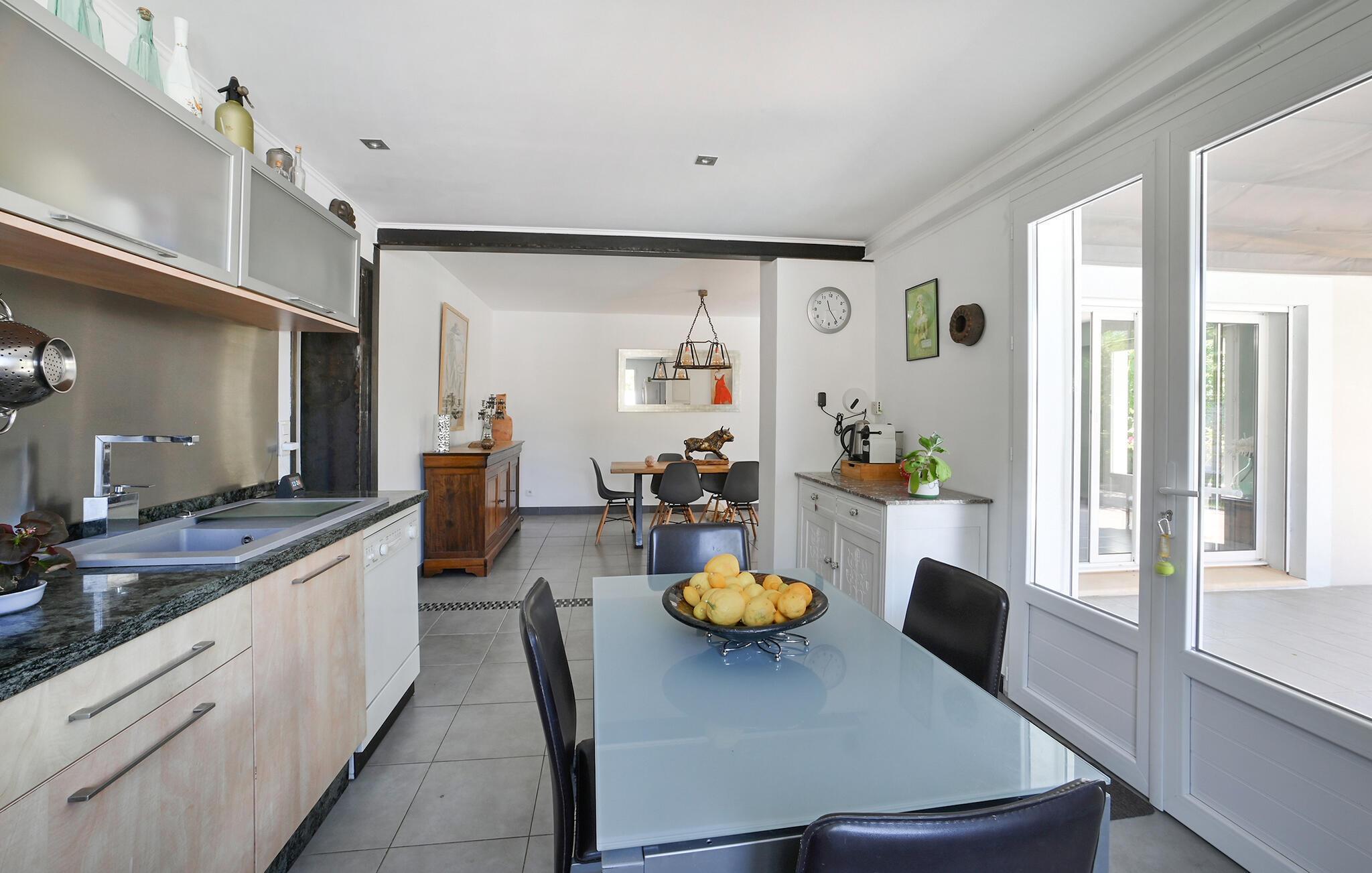 Det rummelige feriehus byder på plads til hele familien og sikrer komfort og afslapning. Det fuldt udstyrede køkken lægger op til at tilberede regionale specialiteter sammen, som I derefter kan nyde i skyggen på den rummelige, overdækkede terrasse. Nyd en forfriskende dukkert i jeres private pool på varme dage.