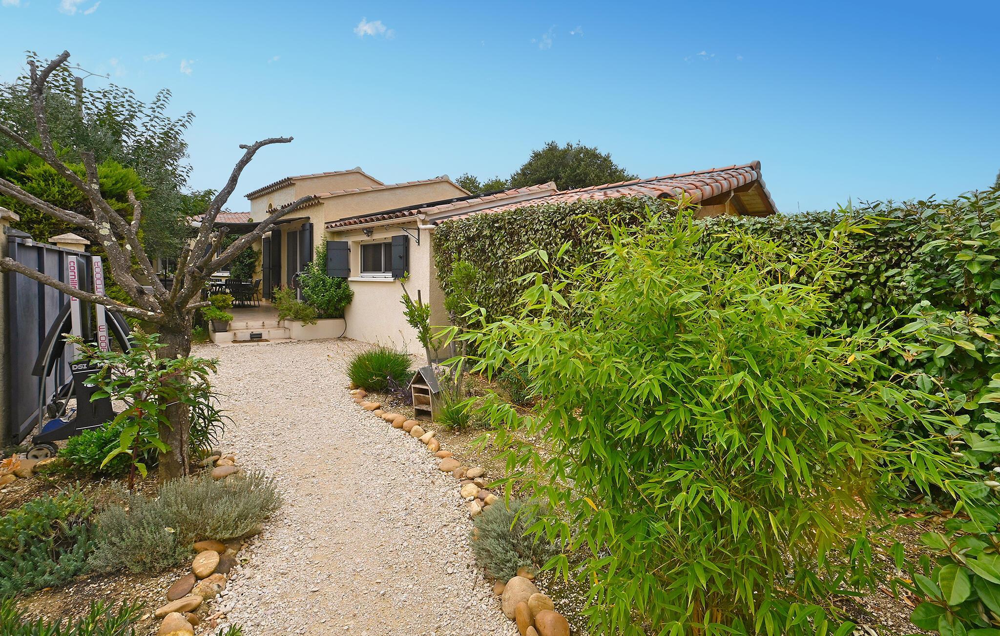 I kan parkere i haven ved ankomst. Den private swimmingpool samt det herlige poolhus kommer også til at give jer masser af gode stunder på turen. På den skyggefulde terrasse foran huset kan I nyde nogle programfri timer og give jer god tid omkring spisebordet.