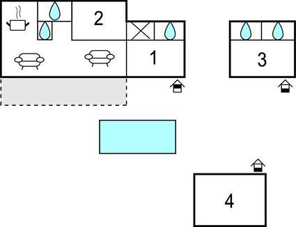 Badeværelse 4m2 (nr. 3) - WC. Varmt og koldt vand. Bruser