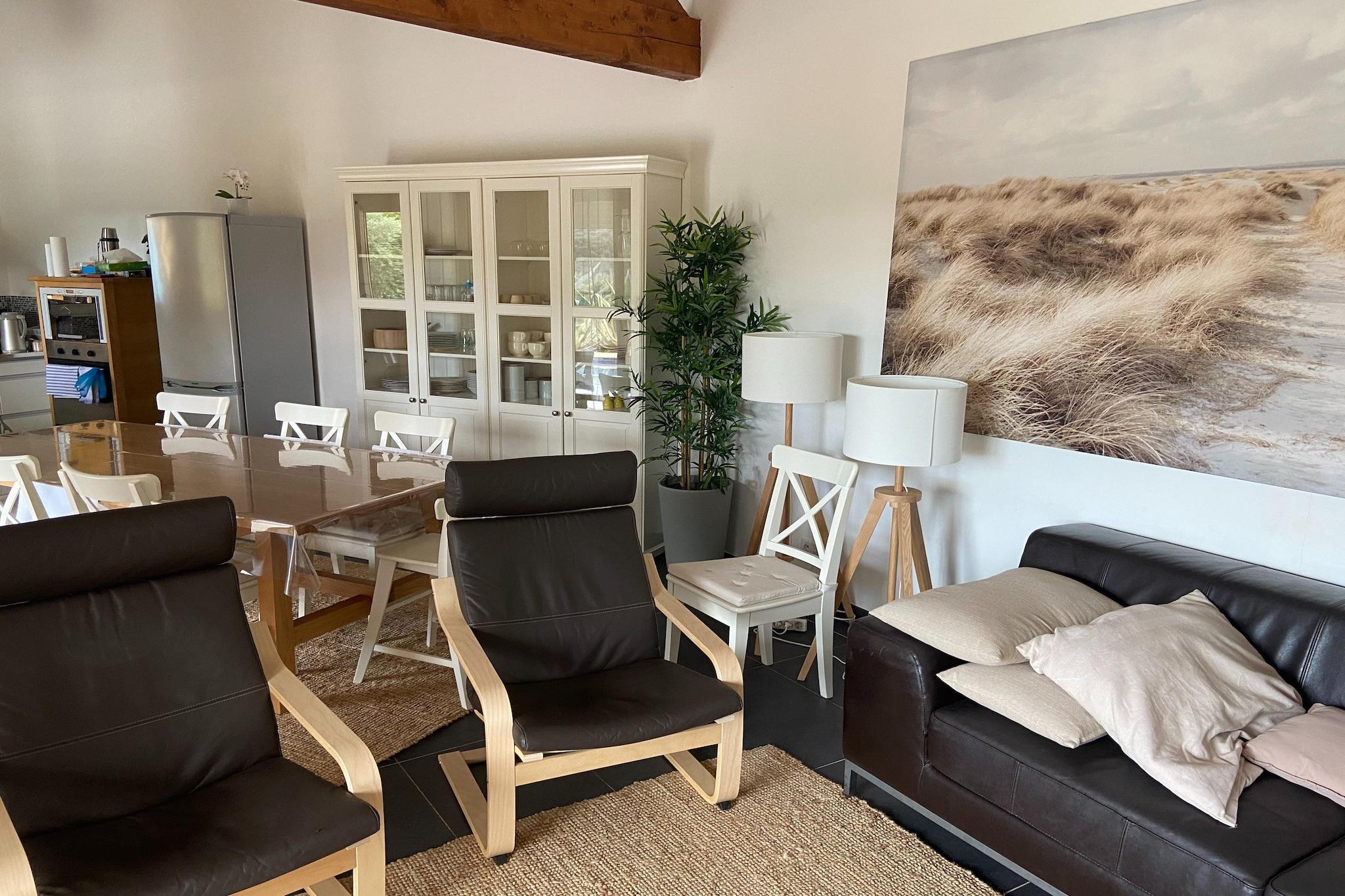 Stueetage: (åbent køkken(kogeplade, elkedel, emhætte, kaffemaskine, ovn, mikrobølgeovn, opvaskemaskine , køle-fryseskab), stue / spisestue(Fjernsyn(fladskærm, Hollandske TV-kanaler, Internationale TV-kanaler), spisebord, kakkelovn(træ), sofahjørne, havedøre), Soveværelse med badeværelse(dobbeltseng(dobbelt dynebetræk, 160 x 200 cm), bruser(Walk-in-bruser), håndvask, håndvask, havedøre), toilet, klimaanlæg) På 1. etage: (soveværelse(enkeltseng(90 x 190 cm), enkeltseng(90 x 190 cm), havedøre, balkon), soveværelse(køjeseng, havedøre, balkon), badeværelse(badekar, håndvask, toilet), klimaanlæg) kogeplade(Komfur med to kogeplader), vaskekumme, klimaanlæg, terrasse(privat, overdækket), terrasse, have(privat, indhegnet, 1000 m2), havemøbler, grill, swimmingpool(privat, vand alarm, 8 x 4 m.), loungemøbler
