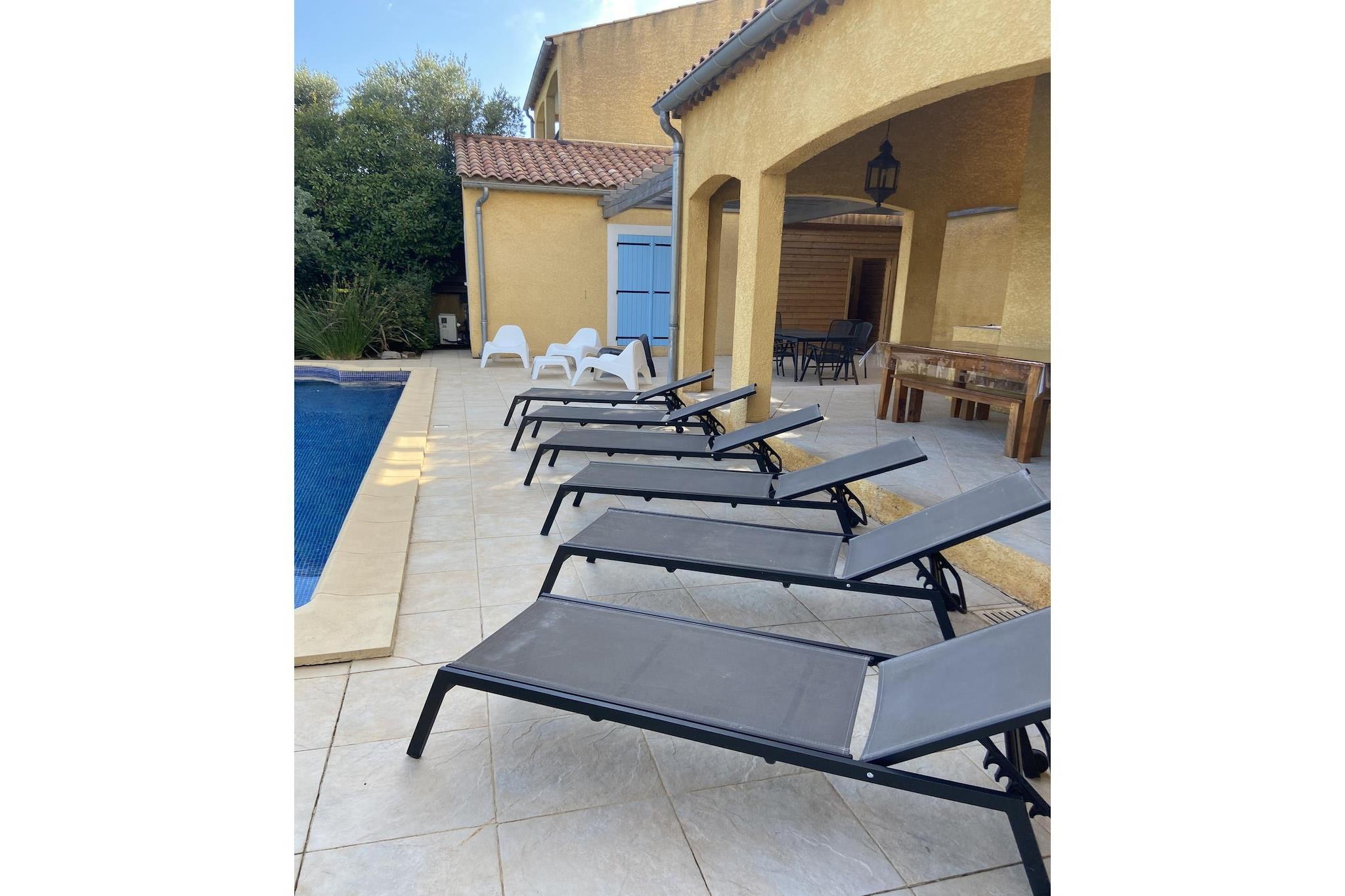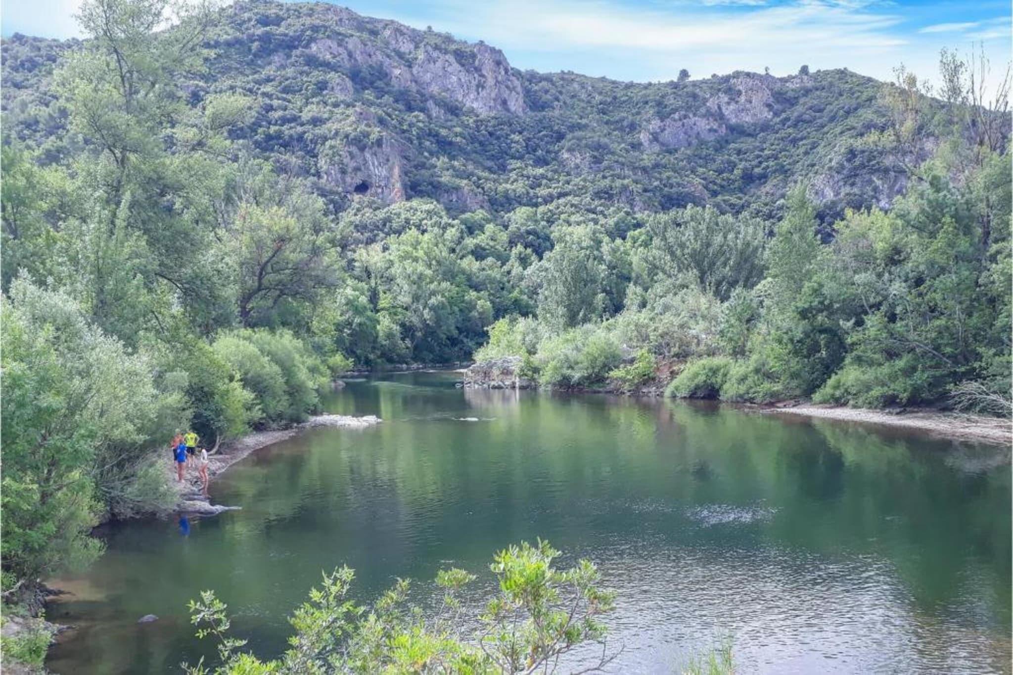 Flygt til denne fortryllende 4-værelses villa i den maleriske landsby Roquebrun, perfekt til familier eller små grupper på op til 8 gæster. Omgivet af frodige vinmarker og den fredelige Orb River-dal, blander hjemmet moderne komfort med rustik charme. Tag en forfriskende dukkert i din private 8x4m swimmingpool, nyd den skyggefulde terrasse med en grill, eller slap blot af i den smukt møblerede have. Indenfor sikrer en hyggelig opholdsstue med brændeovn og aircondition året rundt komfort. Kun 5 km væk finder du lokale købmandsforretninger, et bageri og charmerende restauranter, der serverer regionale specialiteter. For en ferie ved havet er Cap d'Agdes sandstrande kun 45 km væk, mens vinlandsbyen Assignan på en bakketop er en kort køretur. Friluftsentusiaster kan nyde vandsport på Orb-floden eller naturskønne vandreture gennem Haut-Languedoc Regional Park. Béziers Lufthavn ligger kun 48 km væk, og Carcassonne og Montpellier er også inden for rækkevidde. Villaens veludstyrede køkken, komplet med moderne apparater, inviterer dig til at lave mad sammen og nyde al fresco måltider på den overdækkede terrasse. Efter en dag med eventyr kan du slappe af på balkonen med et glas lokal vin, mens solen går ned over bakkerne. Med gennemtænkt designet interiør, rolige omgivelser og en fredelig politik uden kæledyr tilbyder denne villa et idyllisk tilflugtssted, hvor hvert øjeblik føles specielt.