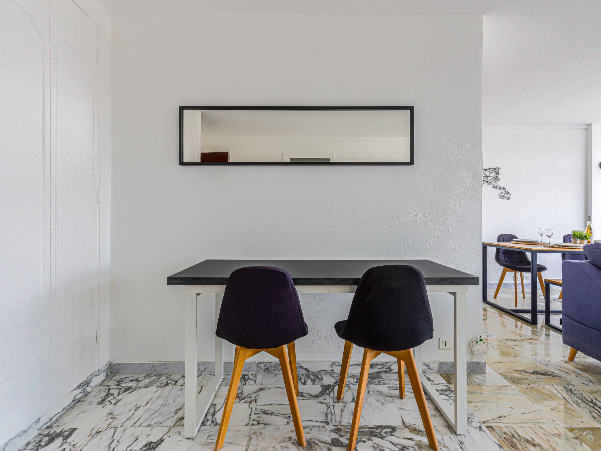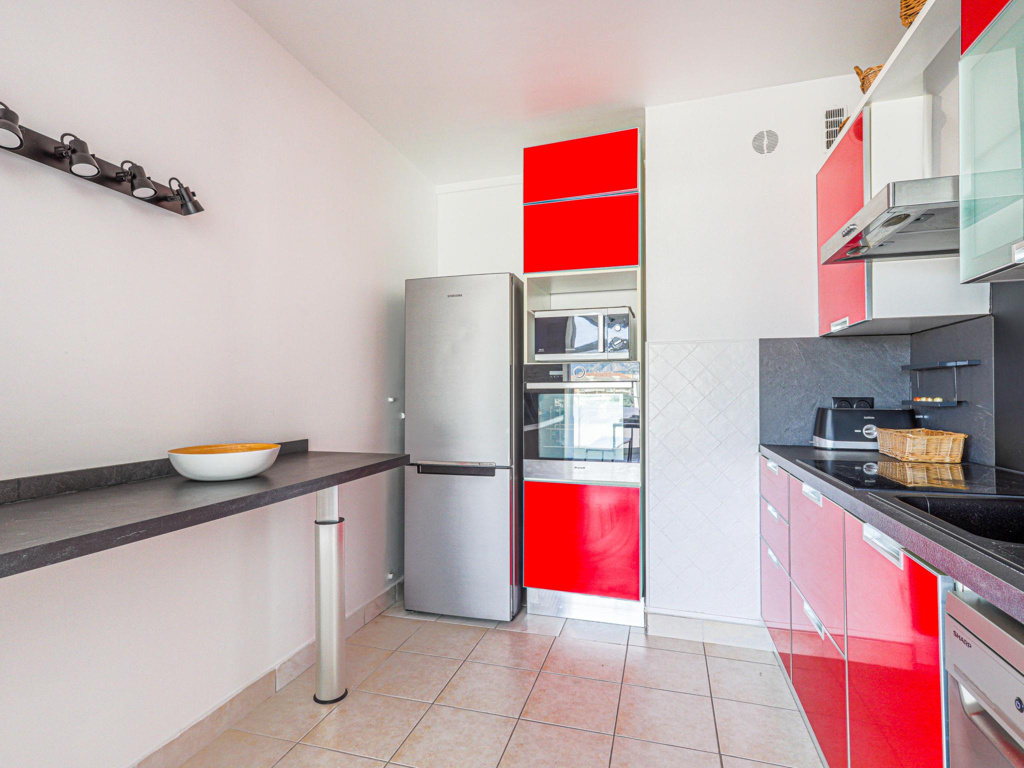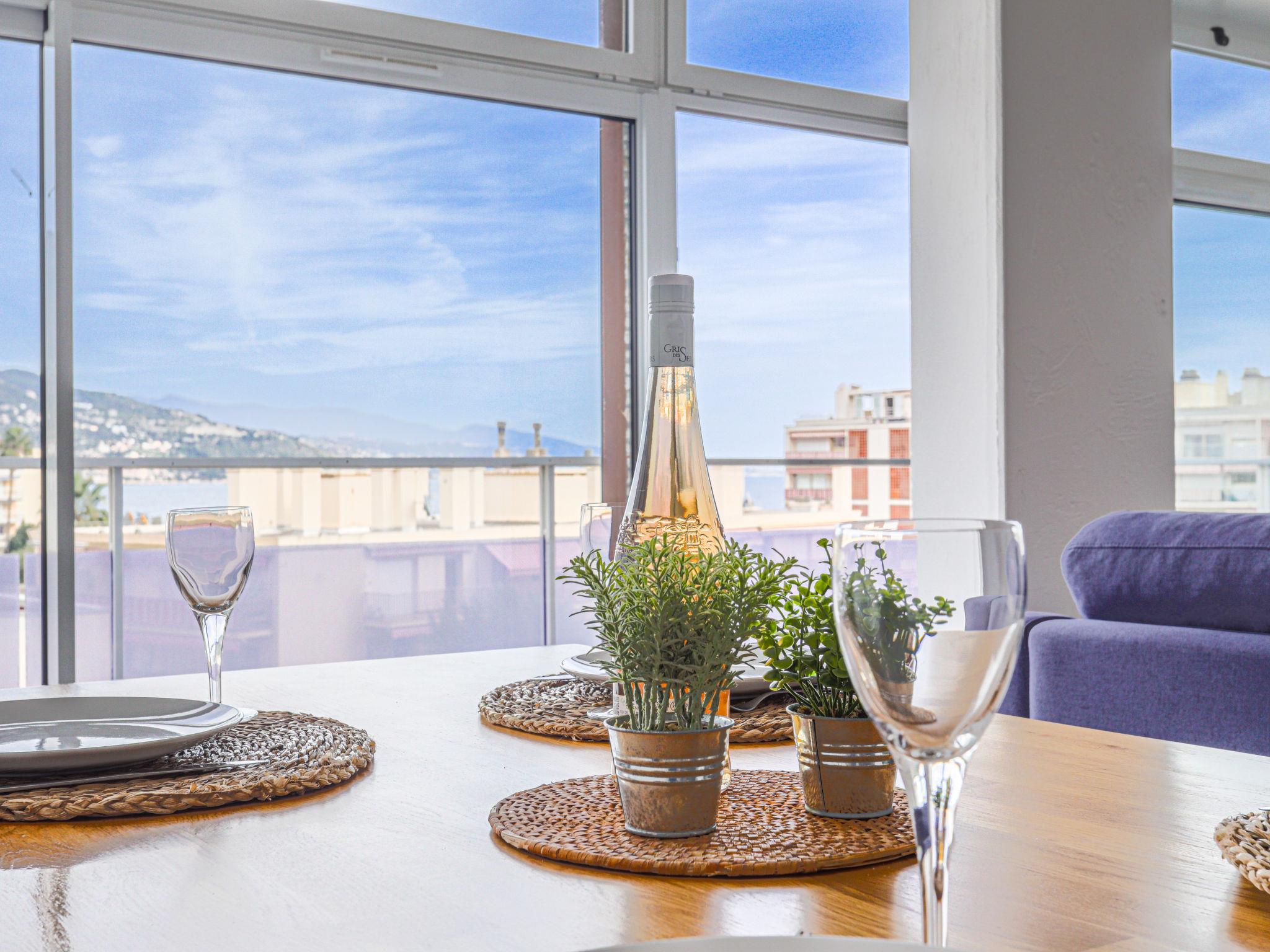 2-room apartment 60 m2 on 5th floor, south facing position. Spacious and bright in 2024, comfortable and modern furnishings: large living/sleeping room with 1 double sofabed (1 x 140 cm, length 190 cm), flat screen and air conditioning. 1 room with 1 french bed (140 cm, length 190 cm), air conditioning. Open kitchen (4 hot plates, toaster, kettle, microwave, electric coffee machine). Shower/WC. Heating. View of the sea, the mountains and the resort. Facilities: washing machine. Please note: 1 small pet/ dog allowed. Smoke alarm. Offer by a private individual according to Art. 155, IV of CGI. 06104001474OW