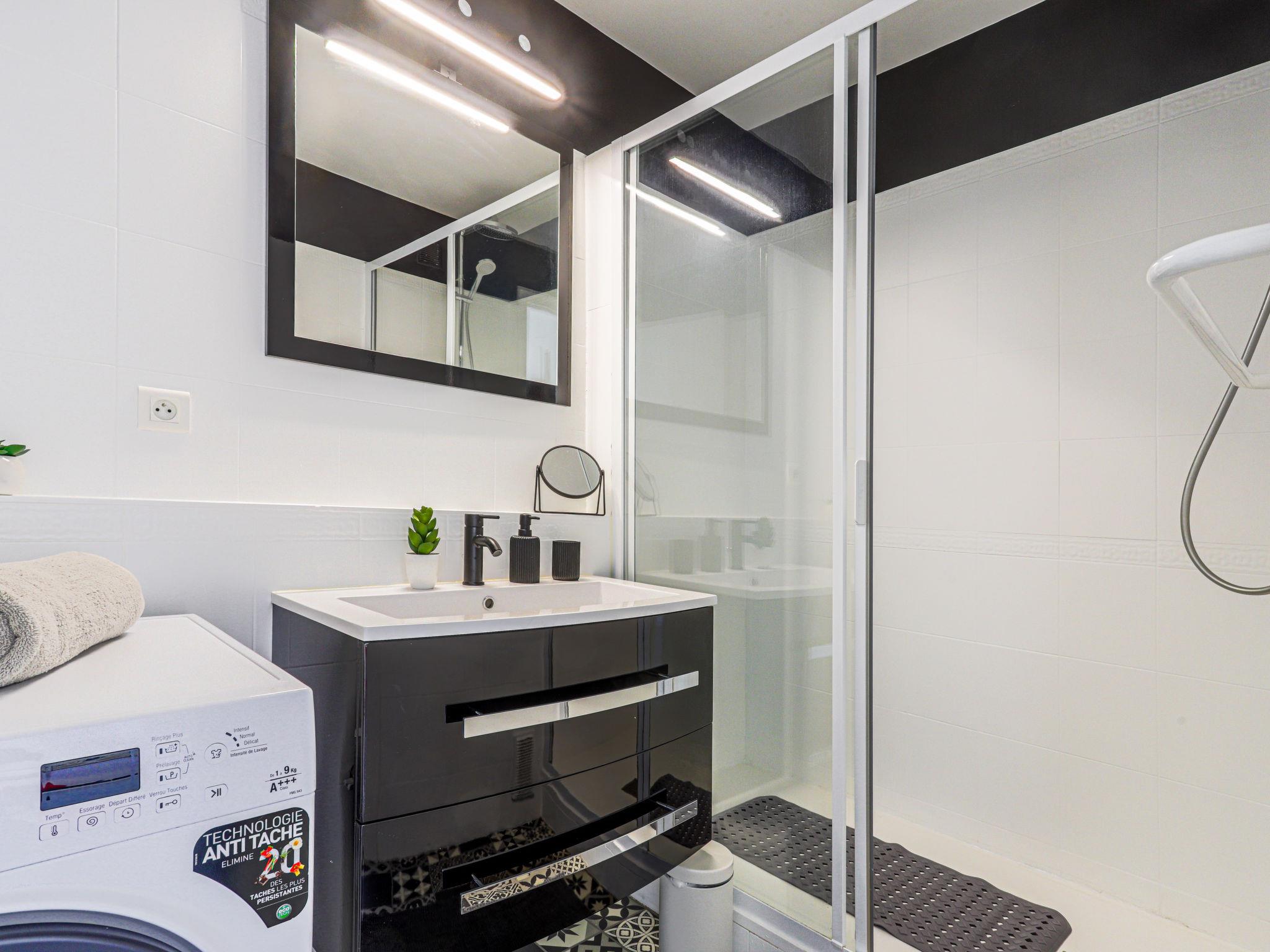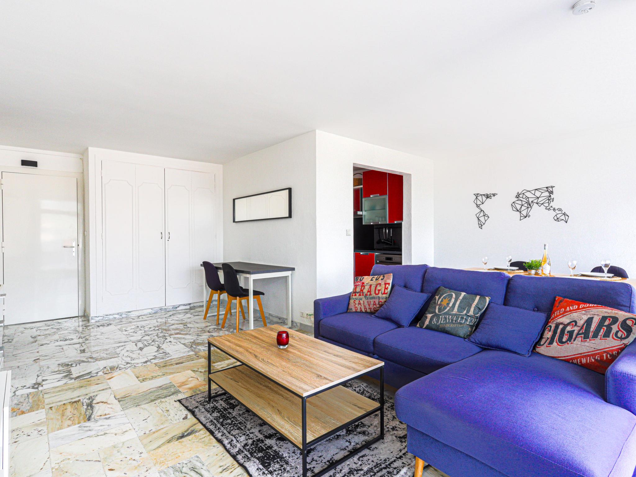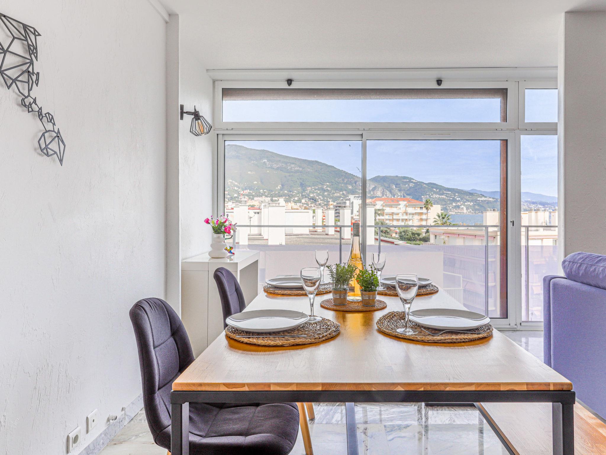 2-room apartment 60 m2 on 5th floor, south facing position. Spacious and bright in 2024, comfortable and modern furnishings: large living/sleeping room with 1 double sofabed (1 x 140 cm, length 190 cm), flat screen and air conditioning. 1 room with 1 french bed (140 cm, length 190 cm), air conditioning. Open kitchen (4 hot plates, toaster, kettle, microwave, electric coffee machine). Shower/WC. Heating. View of the sea, the mountains and the resort. Facilities: washing machine. Please note: 1 small pet/ dog allowed. Smoke alarm. Offer by a private individual according to Art. 155, IV of CGI. 06104001474OW