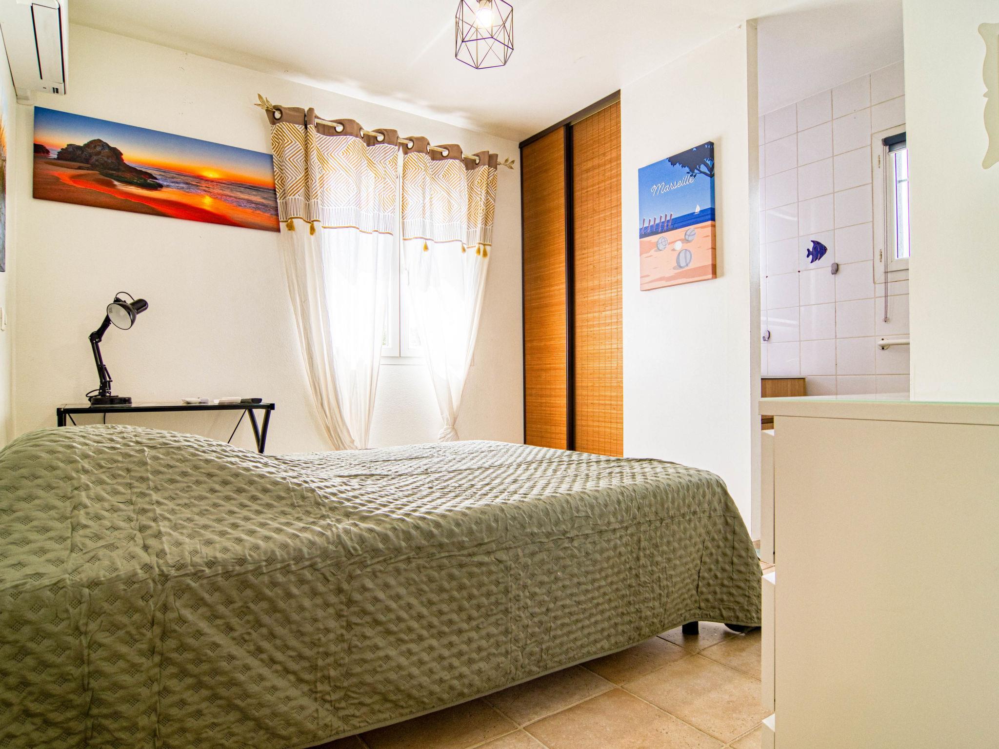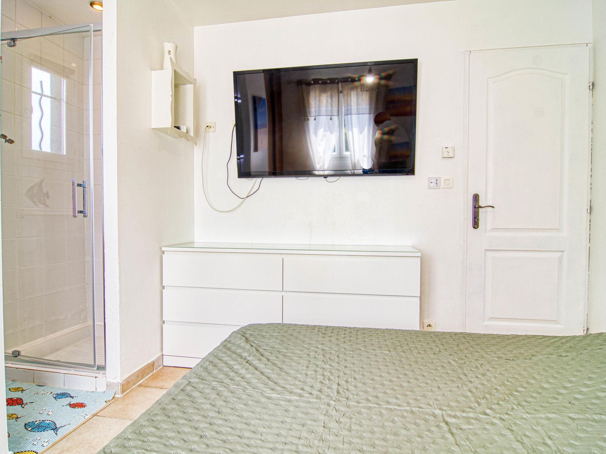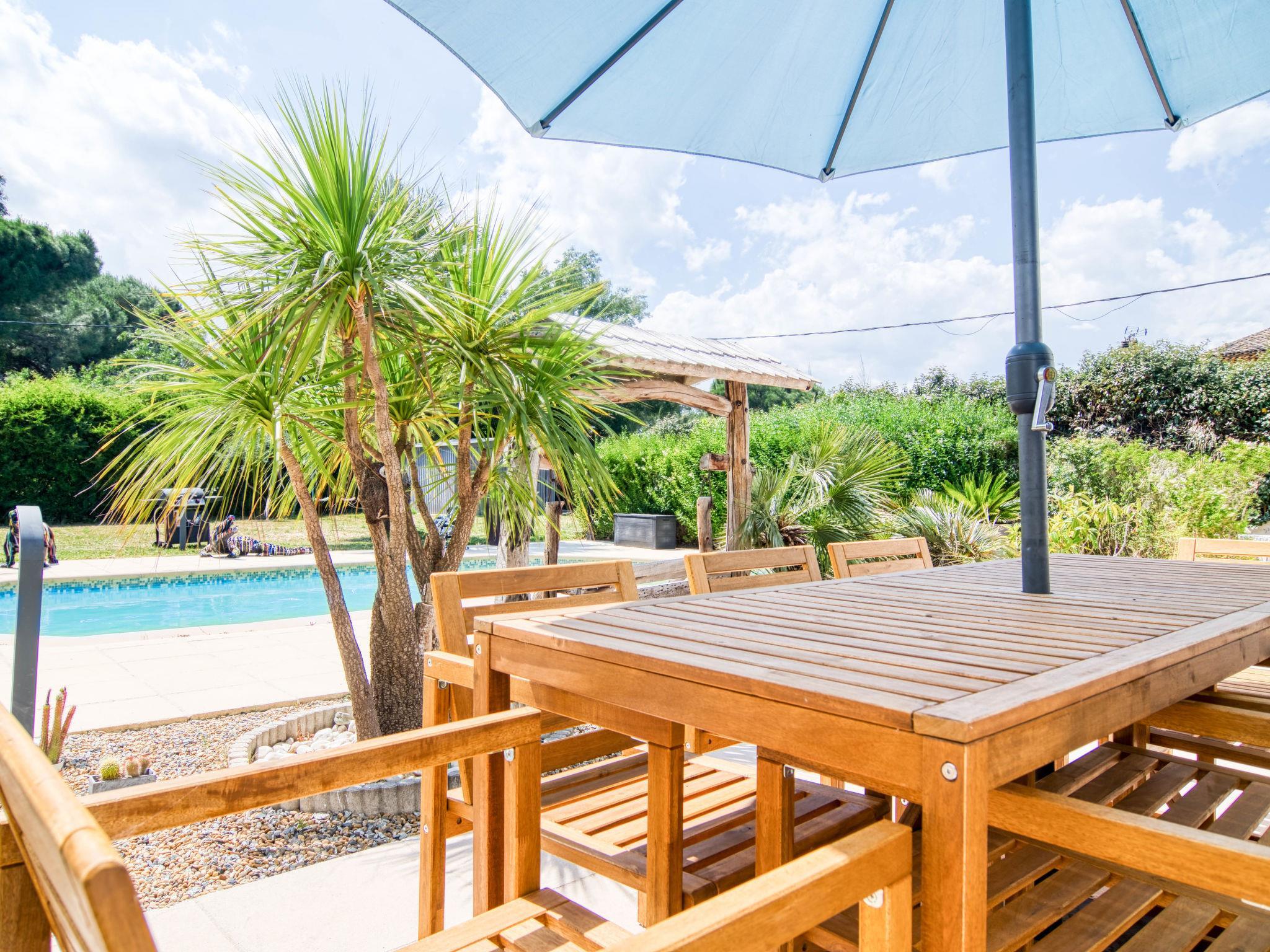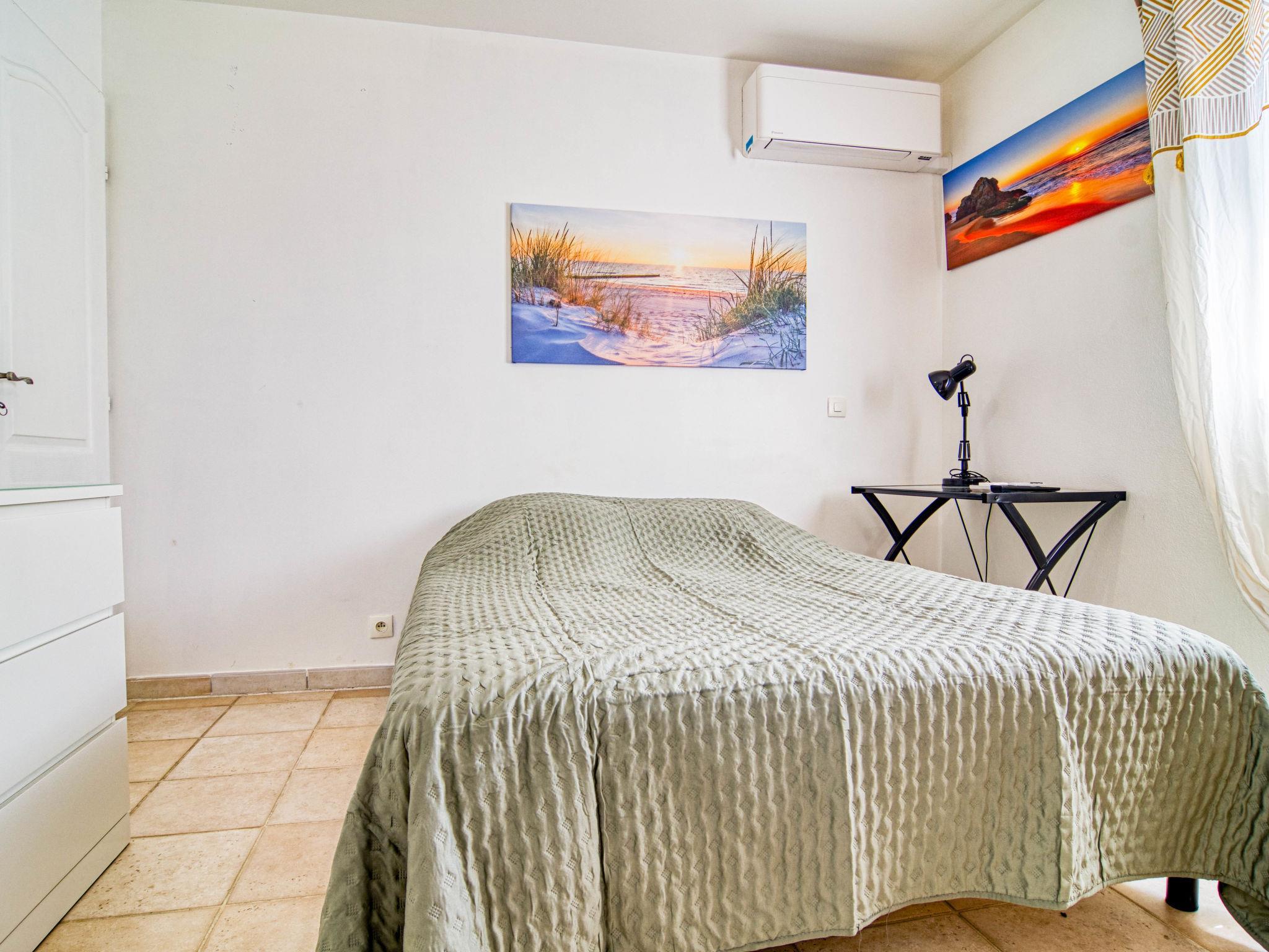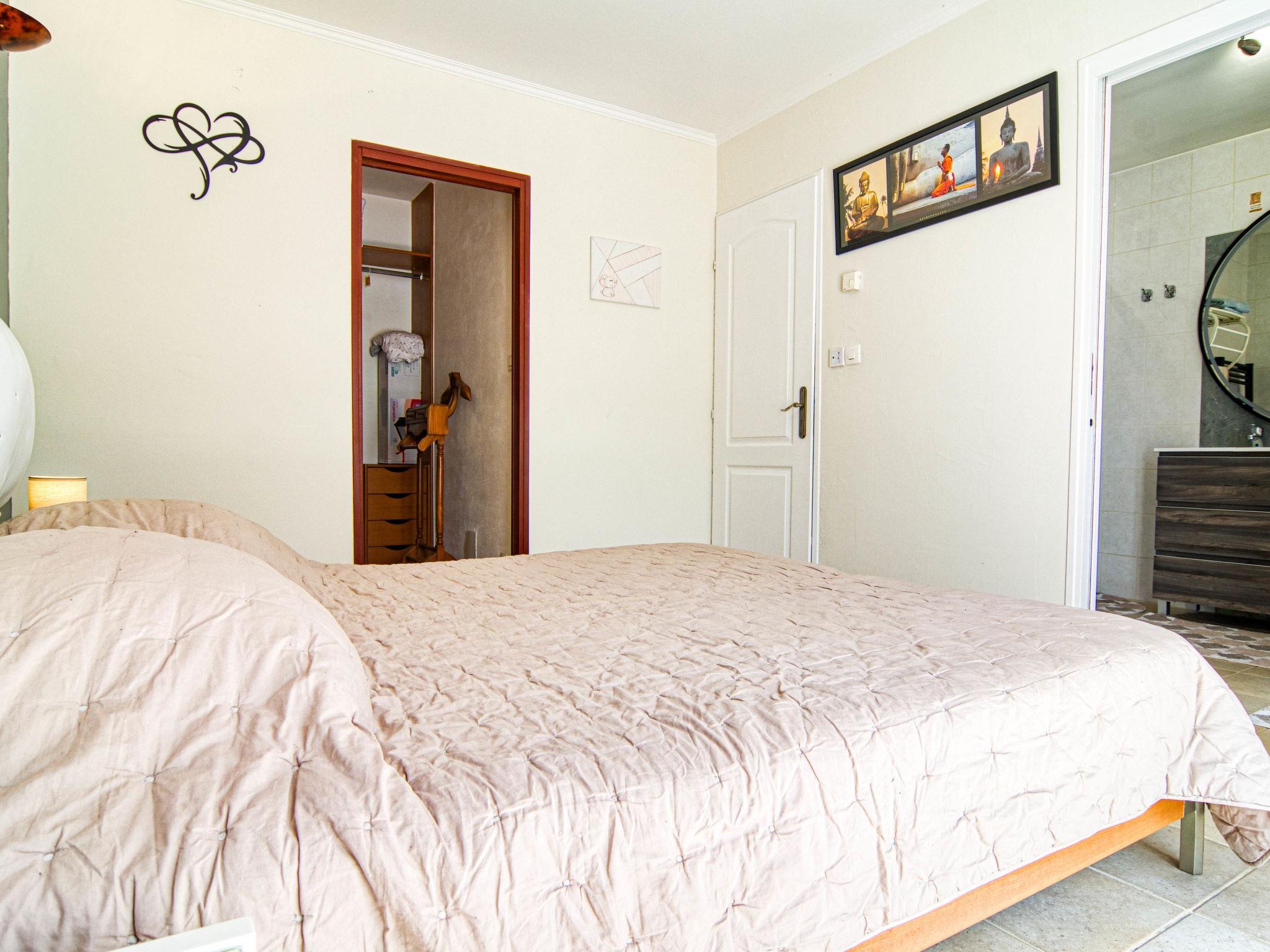 "Villa Les Oliviers", 5-room villa 200 m2 on 2 levels. Comfortable and beautiful furnishings: large living/dining room with dining table and TV (flat screen), air conditioning and electric shutters. Exit to the terrace. 1 room with 1 french bed (160 cm, length 200 cm), separate WC and TV (flat screen), air conditioning and electric shutters. Exit to the garden. 1 room with 2 beds (90 cm, length 190 cm), shower, hip bath and TV (flat screen), air conditioning and electric shutters. Exit to the swimming pool. Open kitchen (oven, dishwasher, 3 induction hot plates, toaster, kettle, microwave, freezer, electric coffee machine) with bar. Exit to the veranda. Sep. WC. Upper floor: 2 rooms, each room with 1 french bed (140 cm, length 190 cm), shower and TV (flat screen), air conditioning and electric shutters. Sep. WC. Terrace furniture, barbecue (portable), deck chairs (4), conservatory. Facilities: washing machine, safe, iron, children's high chair, baby cot for up to 3 year olds, hair dryer. Internet (WiFi, free). Please note: non-smoking house. Maximum 1 pet/ dog allowed. Smoke alarm. Offer by a private individual according to Art. 155, IV of CGI. 83107002402C0