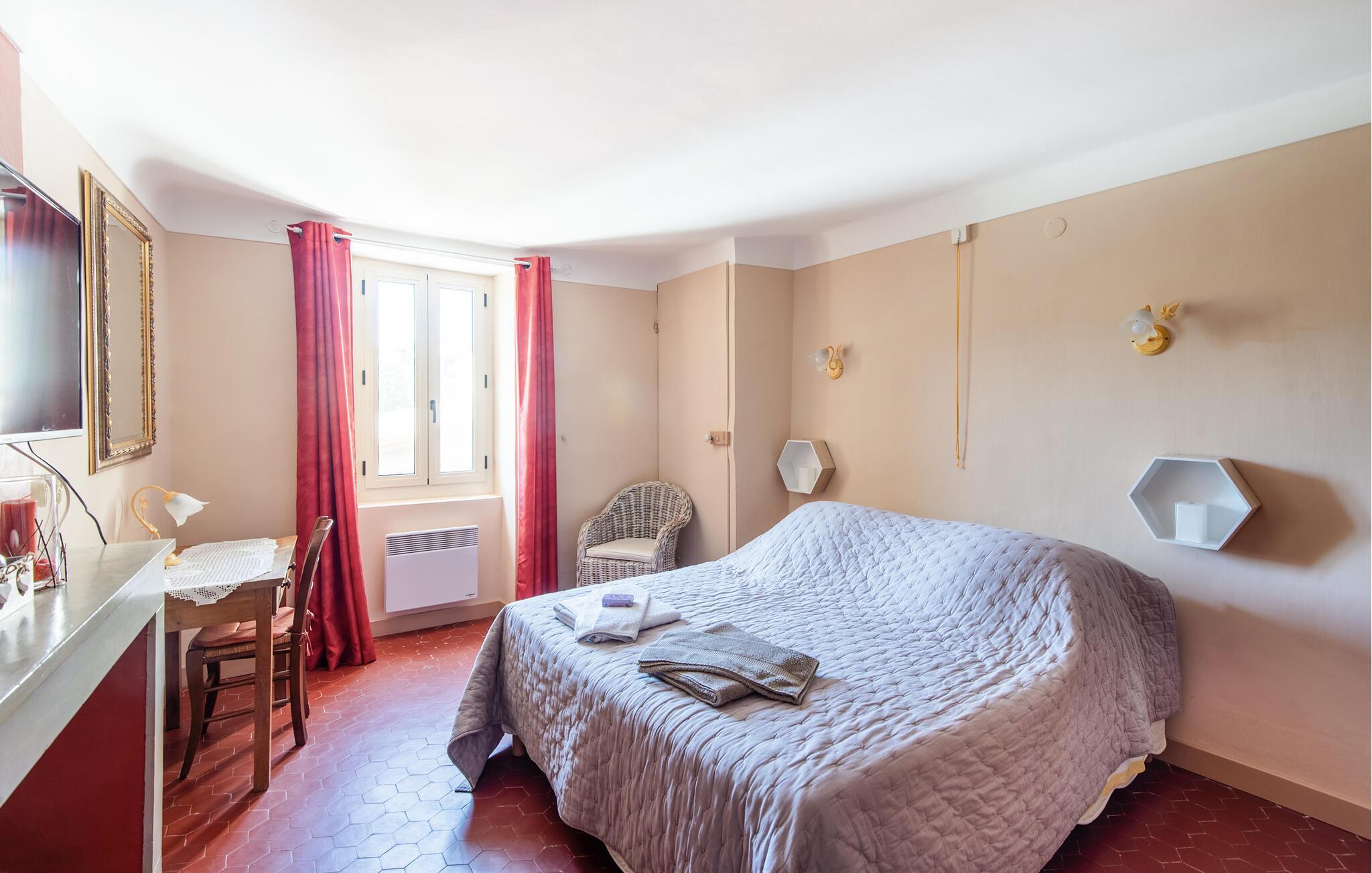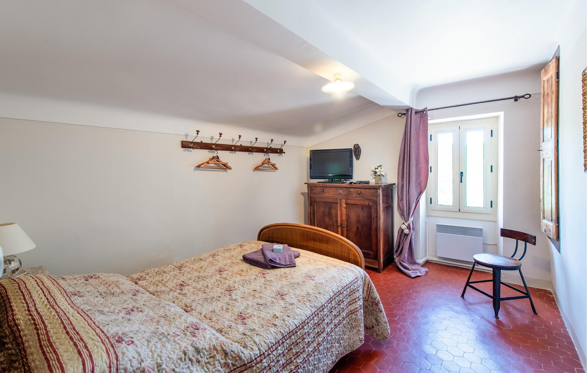 se de okkerfarvede klipper i Roussillon, Begiv jer ud på cykel gennem lavendelmarkerne i Apt, oplev regionale specialiteter og kunsthåndværk på det ugentlige marked i Lourmarin eller svøm og tag på picnic ved Lac de la Bonde. Udforsk Bonnieux, Gordes og Ménerbes eller tag en kajaktur på Sorgue.
