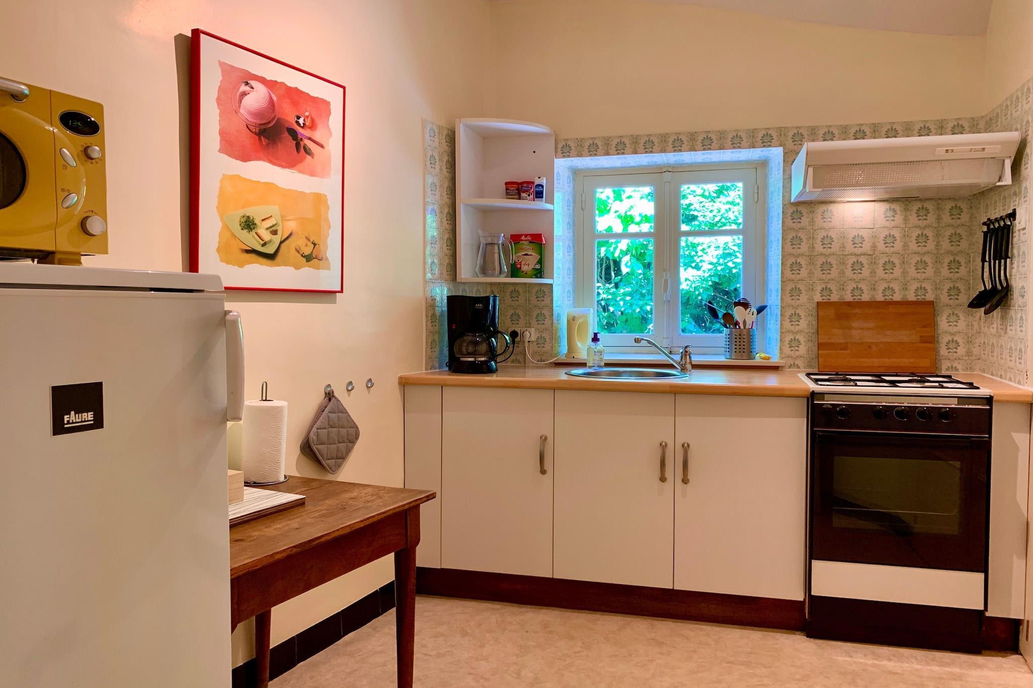 Denne hyggelige lejlighed (65m2), fuldt og smart møbleret, sutueres på 2. sal under de århundreder gamle bjælker af villaen. Naturligvis har du egen indgang med en smuk beliggende terrasse med grill. Villaen har en kongelig have med flere terrasser, hvor gamle kastanjetræer giver vidunderlig skygge om sommeren. Lejligheden ligger i Saint-Nectaire, en malerisk by i bjergene i Massif du Sancy i Auvergne, 30 km syd for Clermont -Ferrand. Saint-Nectaire har blandt andet en smuk romerske kirke fra det 12. århundrede, termalerne, de gamle romerske bade, Parc Aventure og hulerne Cornadore. Så er der Saint Nectaire, som er en ideel base for smukke vandreture gennem (bjerg) landskabet, dejlige / sport cykelruter og fantastiske motor ture. I den direkte omringning er der mange søer at svømme og solbade; På nogle af disse søer er der kanoer eller både til udlejning. For golfelskere er der 4 golfbaner (9 og 18 huller). Stærkt anbefales Parc Vulcania, en meget fængslende udendørs park om vulkanisme, unik i Europa! Måske uventet: Selv om vinteren kan du nyde det meget herinde! Inden for 20 min. kørsel finder du et omfattende vintersportområde (1300 - 1800 m) med ca. 100 km skislopes og 200 km langlauf muligheder. (Sne garanteret fra midten af december til begyndelsen af april). Kort sagt, et ideal, der omgås for alsidige og initiativrige mennesker.