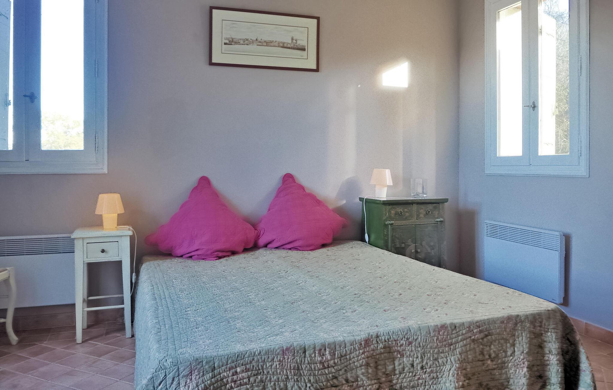 Ferievillaen i Gard Provence har en naturskøn beliggenhed i St. André d'Olérargues med en rummelig terrasse og en opvarmet pool med en fængslende udsigt over dalen. I ejendommens stueetage er der fuldt udstyret køkken med direkte udgang til terrasse og rummelig stue med franske vinduespartier ud til terrassen samt to soveværelser og et badeværelse. På første sal er der et ensuite soveværelse. I venstre fløj af ejendommen finder du soveværelse og tv-stue med sovesofa. Over tv-stuen er der en åben mezzanin med to enkeltsenge. På grund af rummets lave højde er mezzaninen mere velegnet til børn/teenagere. Dog bør meget små børn være under opsyn her (åbne trapper). Udenfor er en privat opvarmet swimmingpool (12m x 6m) med terrasser, liggestole og en stor delvist overdækket terrasse med siddepladser. Grunden er ikke indhegnet og er udformet i forskellige niveauer. Huset er roligt beliggende, i rolige og meget naturlige, men ikke isolerede omgivelser, lige under en lille landsby. Bageri og købmand omkring 3 km væk, flere butikker og restauranter i Goudargues (10 min i bil, 7,5 km). I omgivelserne kan du besøge følgende turiststeder: La Roque sur Cèze (vandfald og svømning) 11 km, den meget smukke landsby Goudargues (restauranter og terrasser) 7,5 km. Og den meget smukke historiske landsby Montclus (17 km). Den meget smukke by Uzès (21 km). Barjac (ved 26 km), Pont St. Esprit og Gorges de l'Ardèche (canyoning, kanosejlads, ca. 45 min. kørsel).