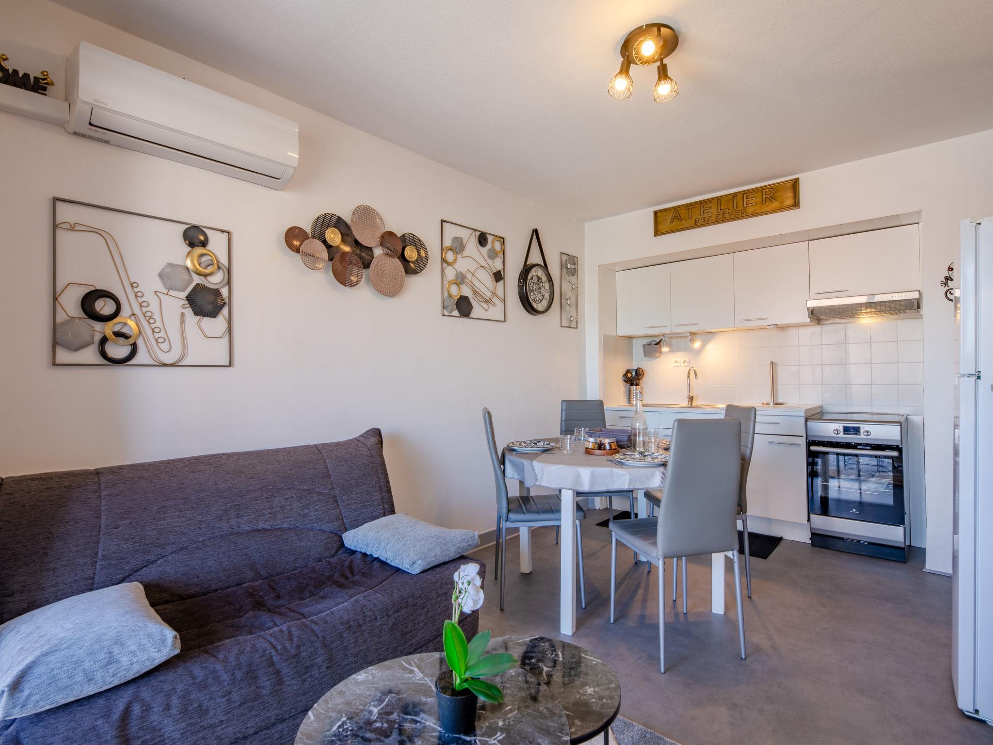 2-room apartment 35 m2 on 3rd floor, east facing position. Renovated in 2024, comfortable furnishings: living/dining room with 1 double sofabed (1 x 140 cm, length 190 cm), TV (flat screen), air conditioning. Exit to the balcony. 1 room with 1 french bed (1 x 140 cm, length 190 cm), air conditioning. Open kitchen (oven, dishwasher, 4 induction hot plates, toaster, kettle, microwave, electric coffee machine). Shower, sep. WC. Electric heating. Balcony, east facing position. Balcony furniture. View of the sea. Facilities: washing machine, iron. Internet (WiFi, extra). Please note: TV only FR. Smoke alarm. Offer by a private individual according to Art. 155, IV of CGI. FVK6B3