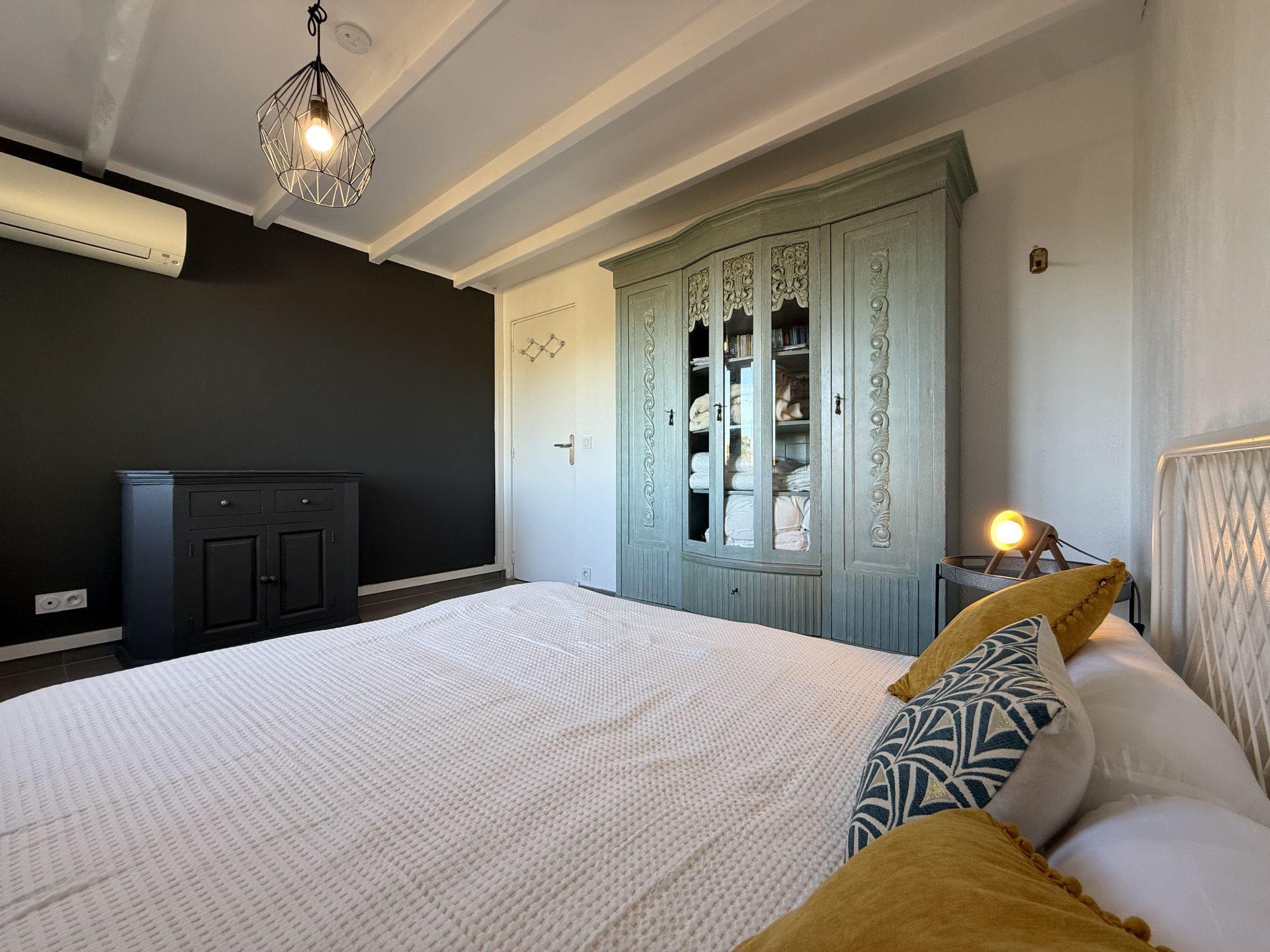 3-room house 60 m2. Living/dining room with open-hearth fireplace (only for decoration), TV, flat screen and air conditioning. Exit to the terrace. 1 room with 1 french bed (1 x 140 cm, length 190 cm), air conditioning. 1 children's room with 1 pull-out bed (2 pers. 2 x 80 cm, length 190 cm). Open kitchen (mini-oven, dishwasher, 4 induction hot plates, toaster, kettle, freezer, electric coffee machine). Shower/WC, sep. WC. Electric heating. Large terrace. Terrace furniture. Facilities: washing machine, iron, hair dryer. Internet (WiFi, free). Parking. Please note: smoke alarm. Offer by a private individual according to Art. 155, IV of CGI. 9TTRMJ