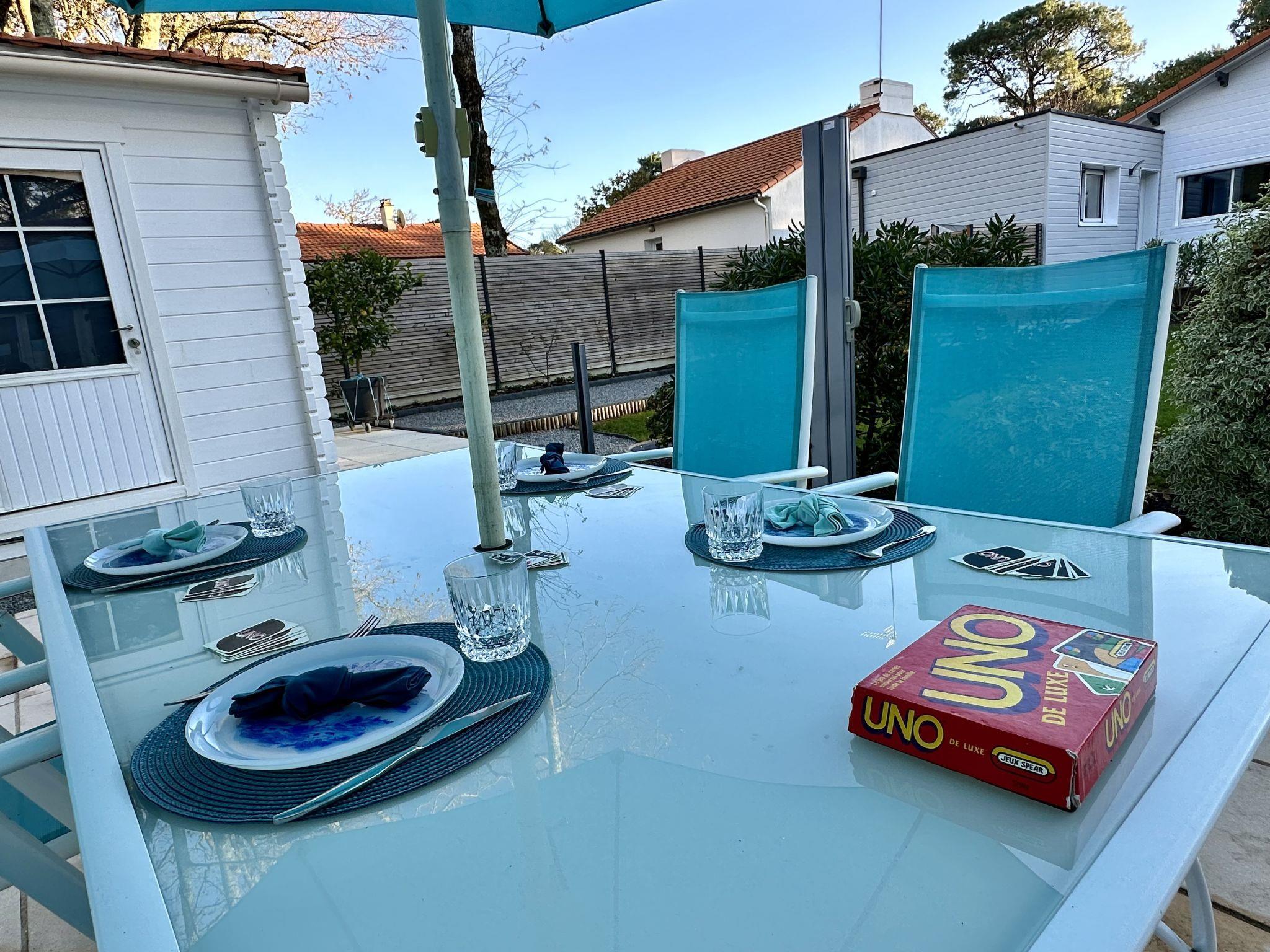 "Joannie", 2-room house 45 m2, south facing position. Comfortable furnishings: living/dining room with panoramic window with 1 double sofabed (1 x 140 cm, length 200 cm), TV (flat screen). Exit to the terrace. 1 room with 1 french bed (1 x 140 cm, length 200 cm). Exit to the terrace. Open kitchen (oven, dishwasher, 3 induction hot plates, toaster, kettle, microwave, electric coffee machine). Shower, sep. WC. Electric heating. Large terrace 50 m2, south facing position. Terrace furniture, barbecue, deck chairs (2). Facilities: washing machine, iron, hair dryer. Internet (WiFi, free). Please note: non-smoking house. Smoke alarm. Offer by a private individual according to Art. 155, IV of CGI.