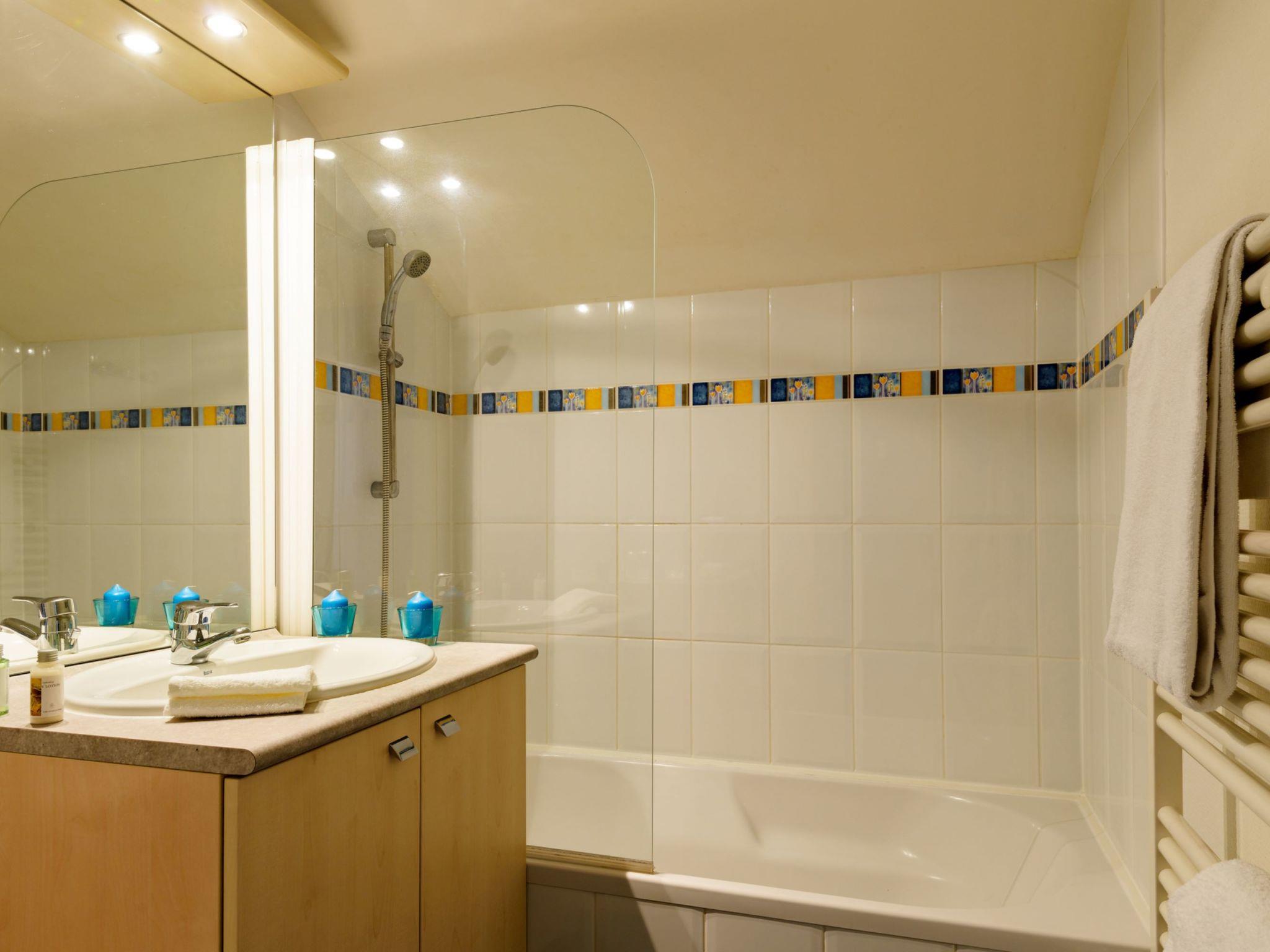 Resort "Les Roches Douvres". 4 houses in the residence. 81 apartments in the residence. 1.5 km from the centre of Saint Briac-sur-Mer, on the outskirts, 7 km from the centre of Dinard, 300 m from the sea. For shared use: property with plants, meadow, swimming pool heated, secured (13 x 6 m, depth 150 cm, seasonal availability: 01.Jan. - 31.Dec.). In the complex: reception, lounge, sauna (extra). Billiard table, lift, storage room for bicycles, washing machine (for shared use, extra), bicycle rental. Bread roll service. Parking. Shop 1.5 km, restaurant 1.5 km, bus stop "Le Golf" 600 m, sandy beach 300 m. Golf course (18 hole) 450 m. Please note: the photograph shows a typical example. The holiday properties may differ in living space, floorplan, equipment and furnishing.