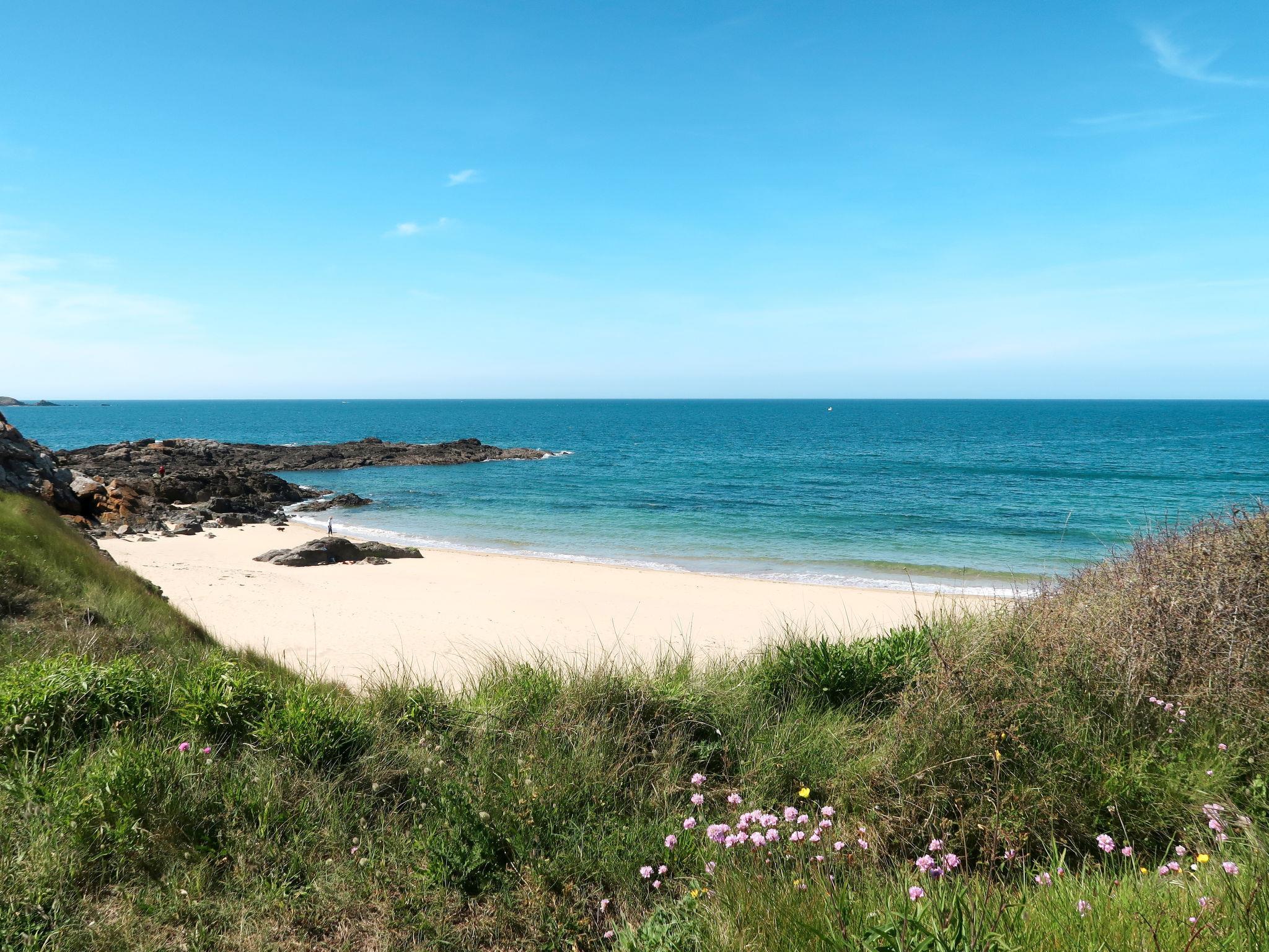 Resort "Les Roches Douvres". 4 houses in the residence. 81 apartments in the residence. 1.5 km from the centre of Saint Briac-sur-Mer, on the outskirts, 7 km from the centre of Dinard, 300 m from the sea. For shared use: property with plants, meadow, swimming pool heated, secured (13 x 6 m, depth 150 cm, seasonal availability: 01.Jan. - 31.Dec.). In the complex: reception, lounge, sauna (extra). Billiard table, lift, storage room for bicycles, washing machine (for shared use, extra), bicycle rental. Bread roll service. Parking. Shop 1.5 km, restaurant 1.5 km, bus stop "Le Golf" 600 m, sandy beach 300 m. Golf course (18 hole) 450 m. Please note: the photograph shows a typical example. The holiday properties may differ in living space, floorplan, equipment and furnishing.