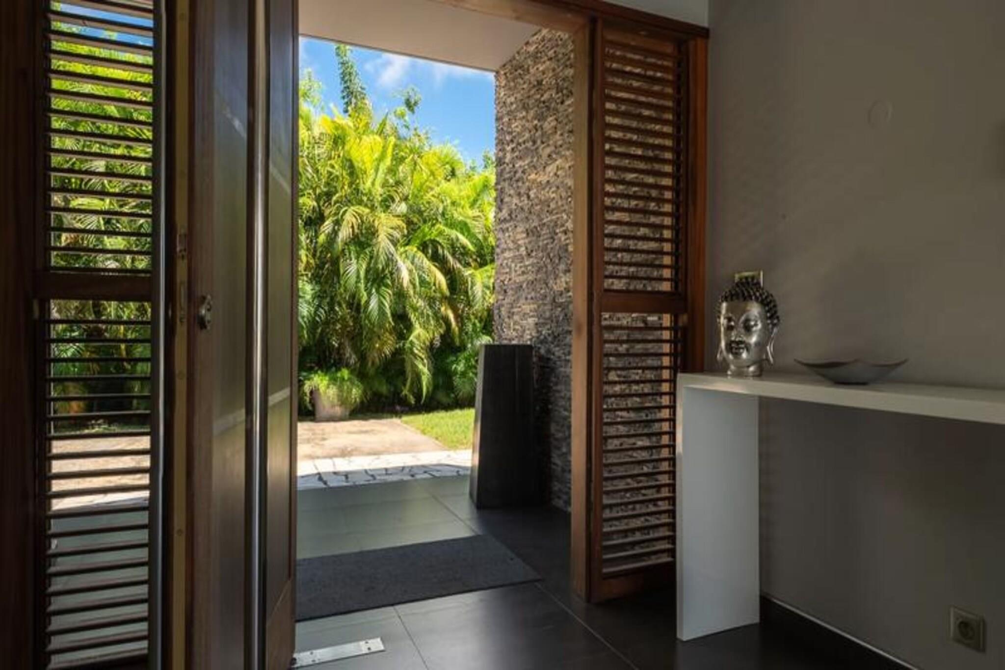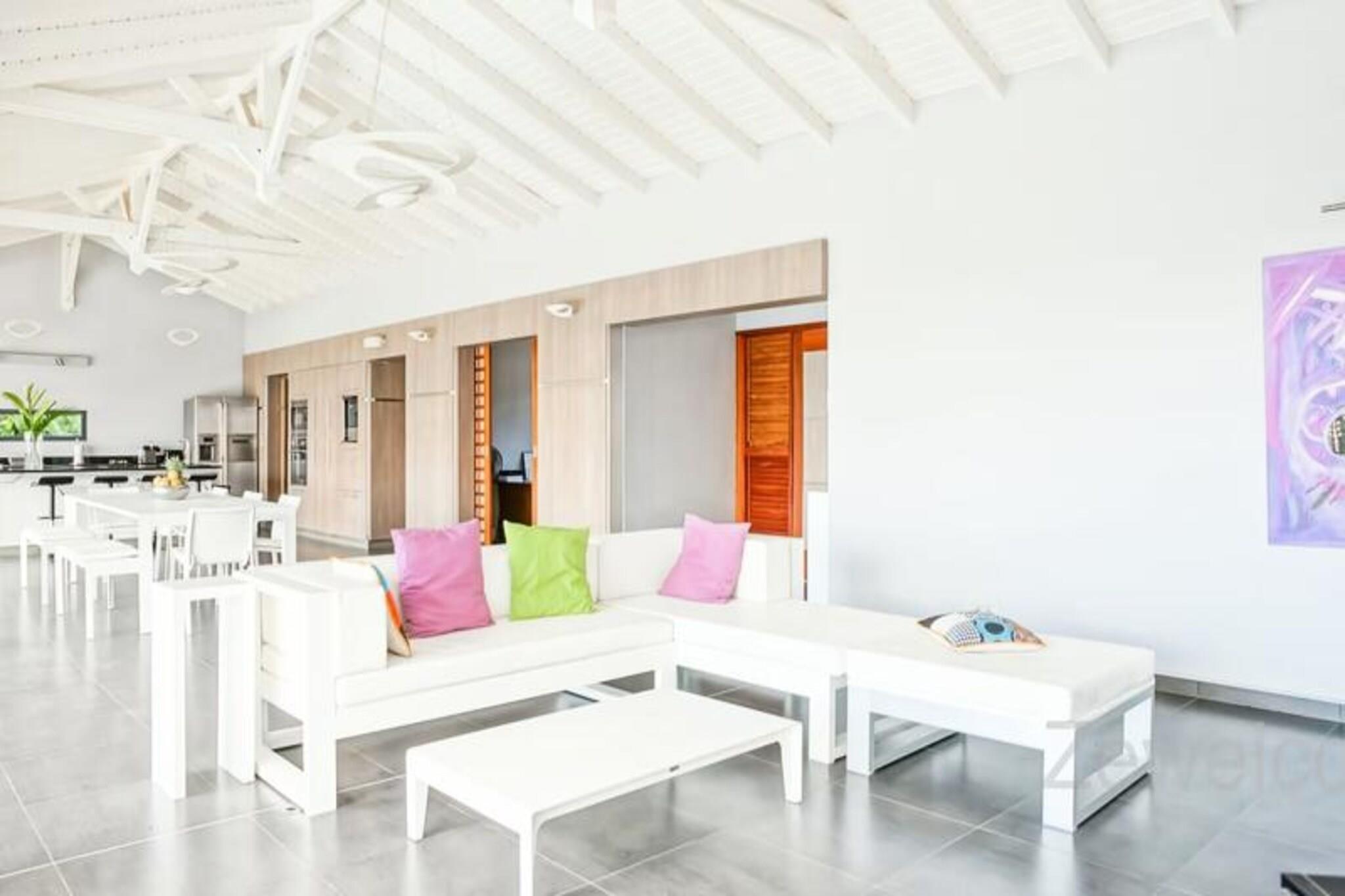 Denne luksuriøse villa på 250 m² tilbyder enestående komfort med fire soveværelser med aircondition, hver med eget badeværelse med en walk-in italiensk bruser. Avanceret sengetøj sikrer fredelige nætter. Selvom kæledyrspolitikker ikke er eksplicit angivet, er det tilrådeligt at spørge direkte. Ejendommen er beliggende i et privat domæne og kan prale af en privat swimmingpool og jacuzzi. Fester er ikke tilladt af respekt for nabolaget. Beliggende i Saint-François på Guadeloupes Grande-Terre, er dette feriehus en kort køretur fra Pointe-à-Pitre lufthavn (45 minutter) og kun 5 minutter fra byens centrum, hvor du finder et supermarked, bageri, apotek, fiskemarked og natmarked. Marina de Saint-François, med sine restauranter og butikker, er også i nærheden, ligesom den internationale golfbane, kasinoet og flyvepladsen. Villaen har en stor 90m² åben stue med komfortable siddepladser og direkte adgang til en solrig terrasse og swimmingpoolen. Det fuldt udstyrede køkken er et paradis for madelskere og inkluderer en vinkælder. Håndklæder, sengelinned og rengøring før og efter dit ophold er inkluderet. Et vandreservesystem er på plads. En dedikeret concierge er tilgængelig før, under og efter dit ophold for at hjælpe med forskellige behov, herunder udflugter, biludlejning, lufthavnstransport og særlige ønsker. Velkomstforfriskninger tilbydes ved ankomsten.