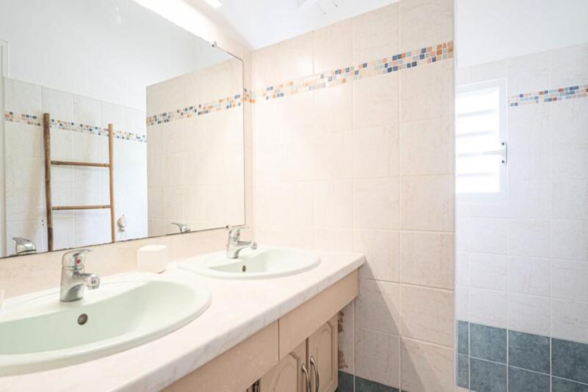 Denne **villa** tilbyder en fredfyldt flugt, beliggende på kanten af ??en international **golfbane** med en fantastisk udsigt. Det har en rummelig stue med udgang til **privat pool** og terrasse. Villaen har plads til op til 6 gæster med 3 soveværelser: et **master soveværelse** med en **160cm seng**, privat brusebadeværelse og toilet, plus to ekstra soveværelser med **160cm** og **90cm** senge, der deler badeværelse. Villaen inkluderer også **privat parkering**, **klimaanlæg** i alle værelser og et **vandreservesystem** for uafbrudt forsyning. Beliggende kun **3 minutter** fra butikker, restauranter og strande, er villaen tæt på **Saint-François Marina**, **golfbanen**, **kasino** og **flyvepladsen**. Inden for **5 minutter** kan du få adgang til fantastiske strande som **Raisins Clairs** og **Anse à la Gourde**, perfekt til vandsport, herunder **surfing** og **Wing Foil**. Villaen har et fuldt udstyret **amerikansk køkken** med et **barområde**. Yderligere tjenester omfatter **husholdning**, **concierge-assistance** og **eksklusive aktiviteter**. **Håndklæder og sengelinned** er til rådighed for din bekvemmelighed. Ideel til et fredeligt tilflugtssted i **Saint-François**, Guadeloupe.