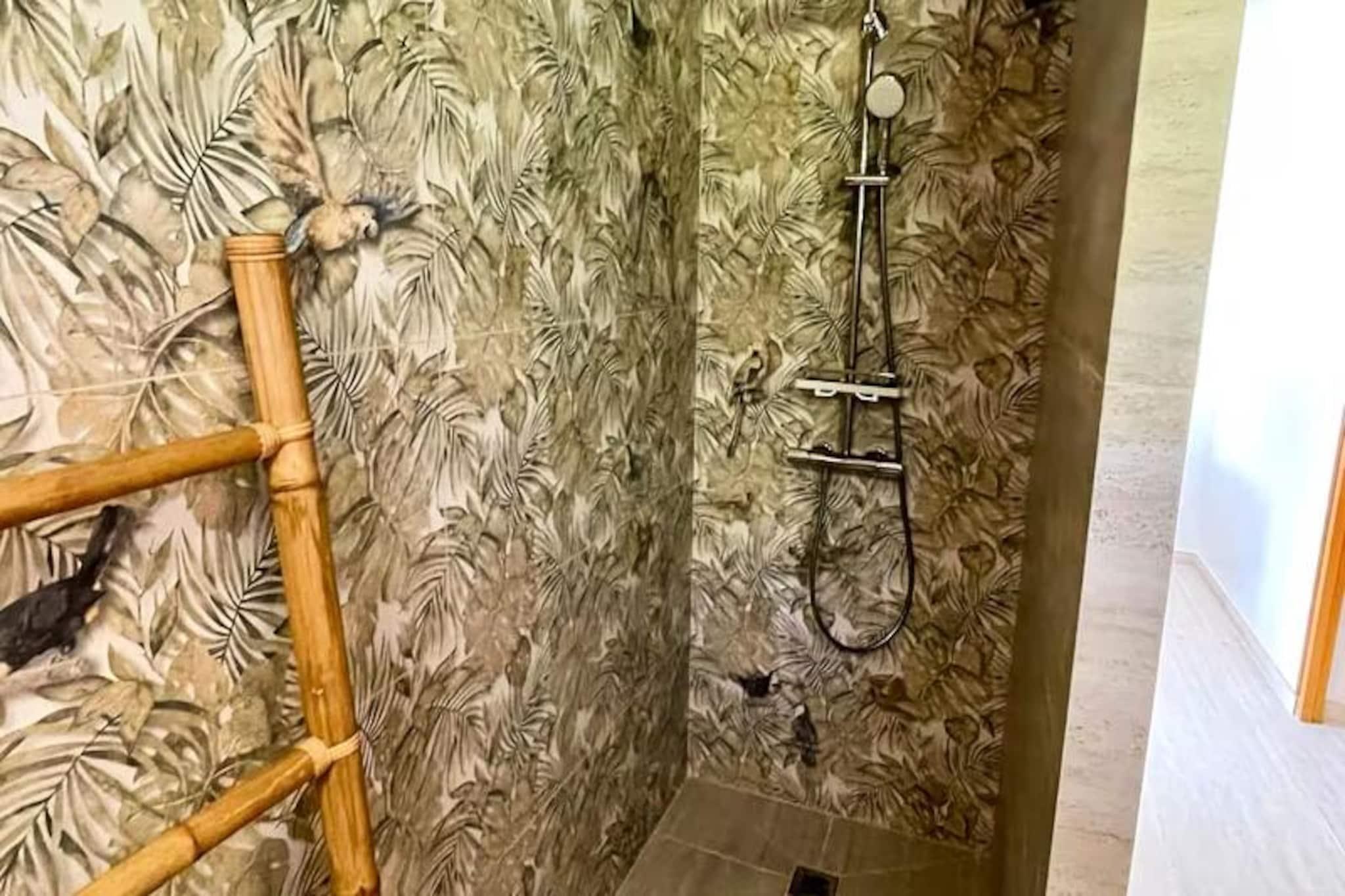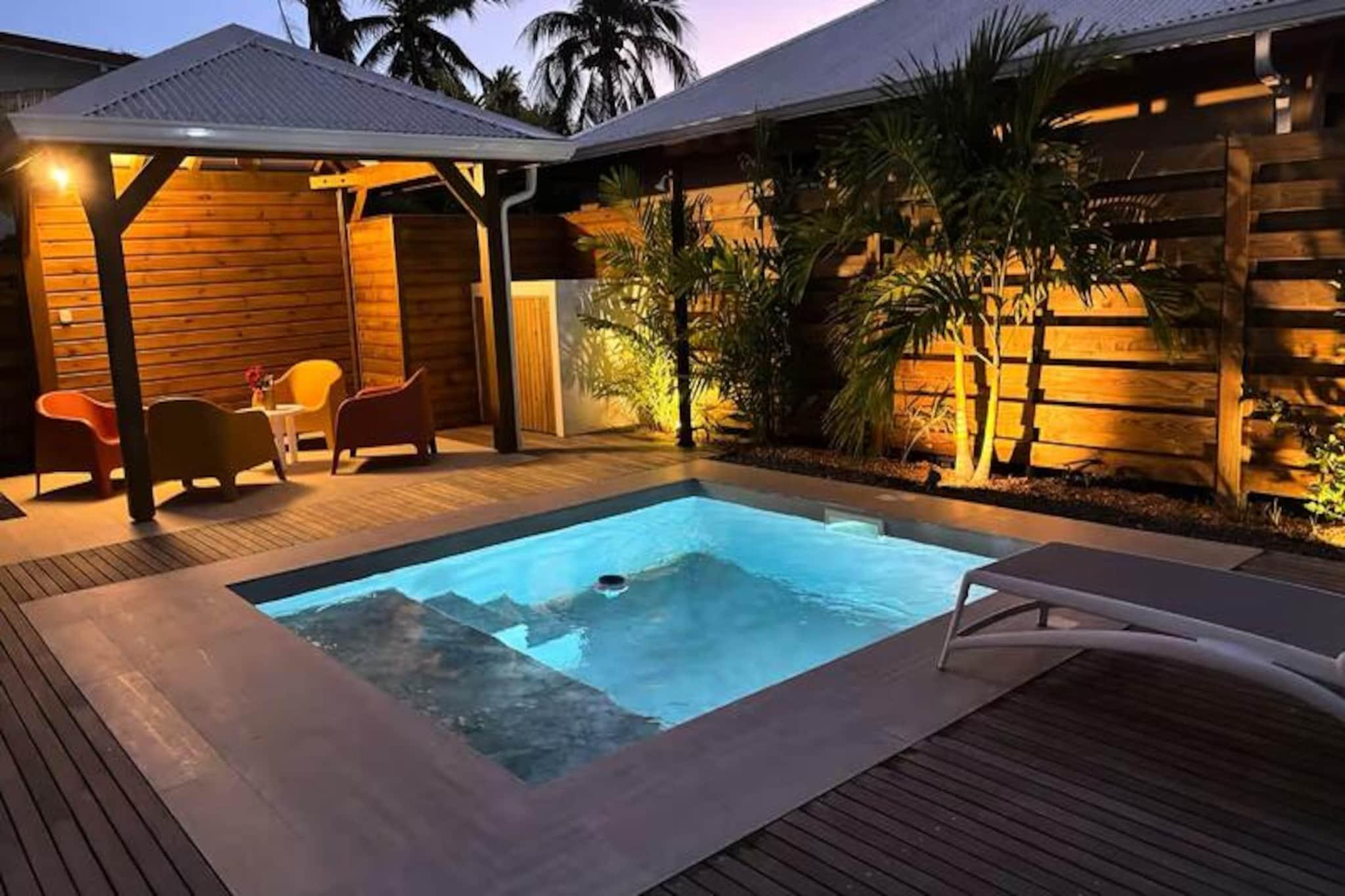 I hjertet af det fredfyldte boligområde Saint-François inviterer Villa Ti'Kaz Bonheur dig til at opleve essensen af ??caribisk ro. Dette moderne tilflugtssted, beliggende på den maleriske ø Grande-Terre i Guadeloupe, tilbyder en perfekt blanding af komfort og elegance. Forestil dig at vågne op til den blide raslen af ??palmer og starte din dag med en forfriskende dukkert i din private, afsondrede pool, omgivet af frodig tropisk vegetation. Uanset om du rejser med familie eller venner, lover denne villa en oase af afslapning og uforglemmelige minder. Indenfor finder du to rummelige soveværelser med aircondition, der begge har en blød queensize-seng designet til afslappende nætter efter en dag med udforskning. Det fuldt udstyrede køkken, komplet med stegeplade, inviterer dig til at tilberede dejlige måltider, mens den luftige stue, der køles af loftsventilatorer, giver det ideelle sted til at dele latter og historier. Villaens gennemtænkte design sikrer komfort i alle rum, med aircondition i hele hjemmet og endda i udendørsområderne, der sikrer et køligt tilflugtssted fra den varme caribiske sol. Træd udenfor for at opdage din private oase. Den glitrende pool indbyder til en forfriskende dukkert, mens den skyggefulde pavillon tilbyder et fredeligt sted at slappe af med en bog eller en tropisk cocktail. Kun 3 km væk finder du uberørte hvide sandstrande, perfekte til solbadning eller vandsport. Villaens førsteklasses beliggenhed placerer dig også i nærheden af ??den pulserende Saint-François Marina, hvor du kan udforske en række restauranter, butikker og lokale markeder. Golfentusiaster vil sætte pris på den nærliggende golfbane, og naturelskere vil blive betaget af det fantastiske udsigtspunkt Pointe-des-Châteaux, kun 15 minutters kørsel væk, der tilbyder panoramaudsigt over La Désirade-øen. Villa Ti'Kaz Bonheur er mere end bare et sted at bo; det er en invitation til at fordybe dig i Guadeloupes fortryllende skønhed. Med dedikeret concierge-service, en velkomstcocktail og skræddersyede anbefalinger til udflugter og billeje er hver eneste detalje designet til at gøre dit ophold ekstraordinært. Flygt til dette tropiske paradis og skab minder, der vil vare hele livet.