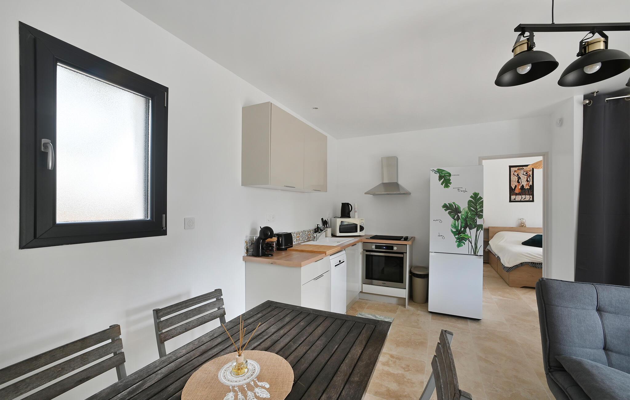 Dette lyse og moderne feriehus ligger tæt på smukke strande og giver jer en ideel base, hvorfra I kan udforske de forskellige attraktioner omkring Montpellier. Pisk lækre retter op i det charmerende køkken og planlæg jeres aktiviteter for den kommende dag ved det indbydende spisebord. Føl jer godt tilpas i de behagelige lænestole, læs en spændende bog eller få en god snak over et glas vin.