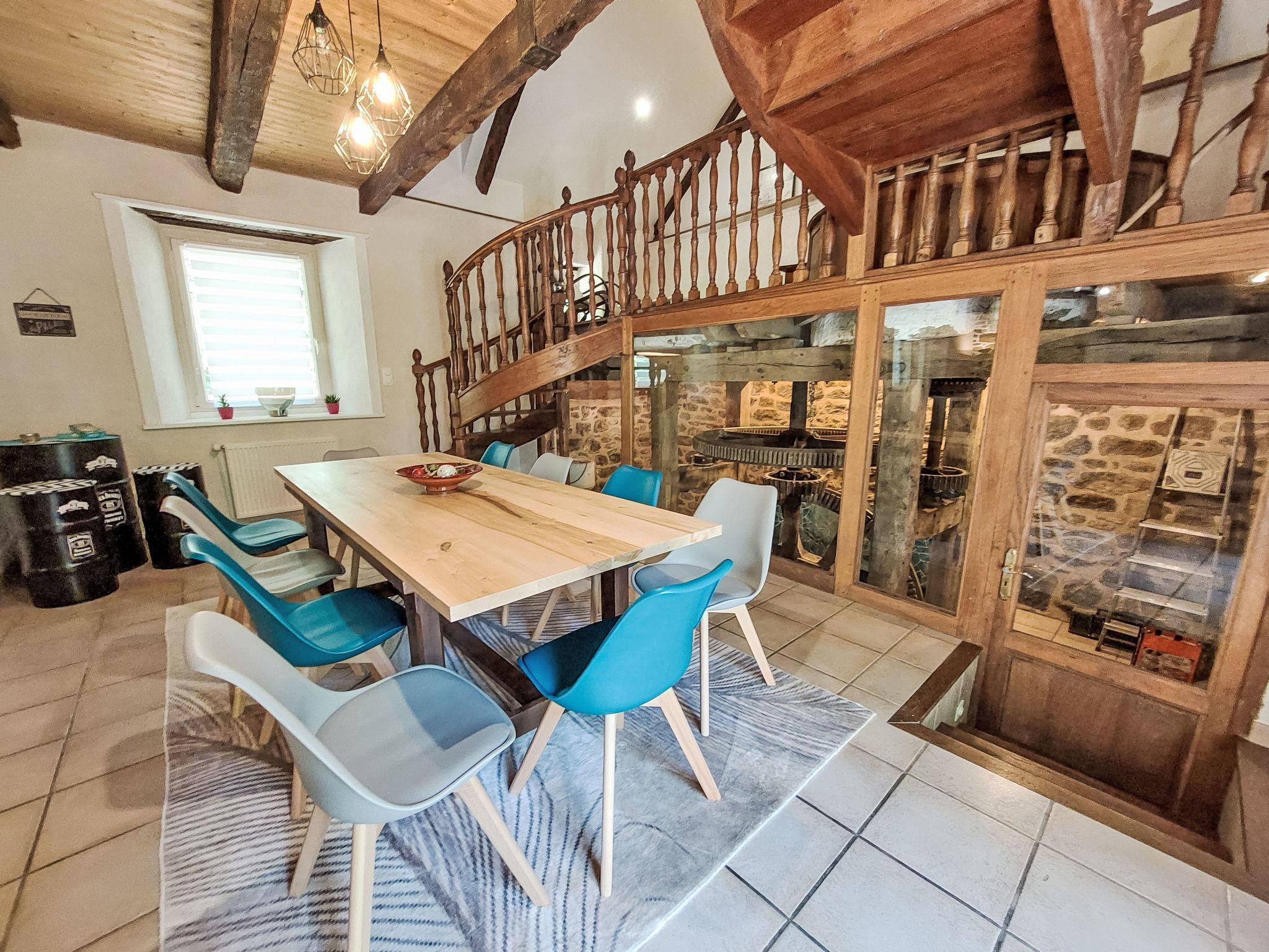 "La Meunière", 5-room terraced house 120 m2 on 2 levels. Cosy furnishings: entrance hall. Large living/dining room with open-hearth fireplace and TV (flat screen). Exit to the terrace. Open kitchen (oven, dishwasher, 3 induction hot plates, toaster, kettle, microwave, freezer, electric coffee machine) with bar. Sep. WC. Upper floor: with sloping ceilings, 3 rooms, each room with 1 french bed (140 cm, length 190 cm). 1 room with 2 beds (90 cm, length 190 cm). Shower/WC. Electric heating. Terrace furniture, barbecue, deck chairs (3). Facilities: Internet (WiFi, free). Please note: not suitable for small children. Non-smoking house. Maximum 1 pet/ dog allowed. Smoke alarm. Offer by a private individual according to Art. 155, IV of CGI.