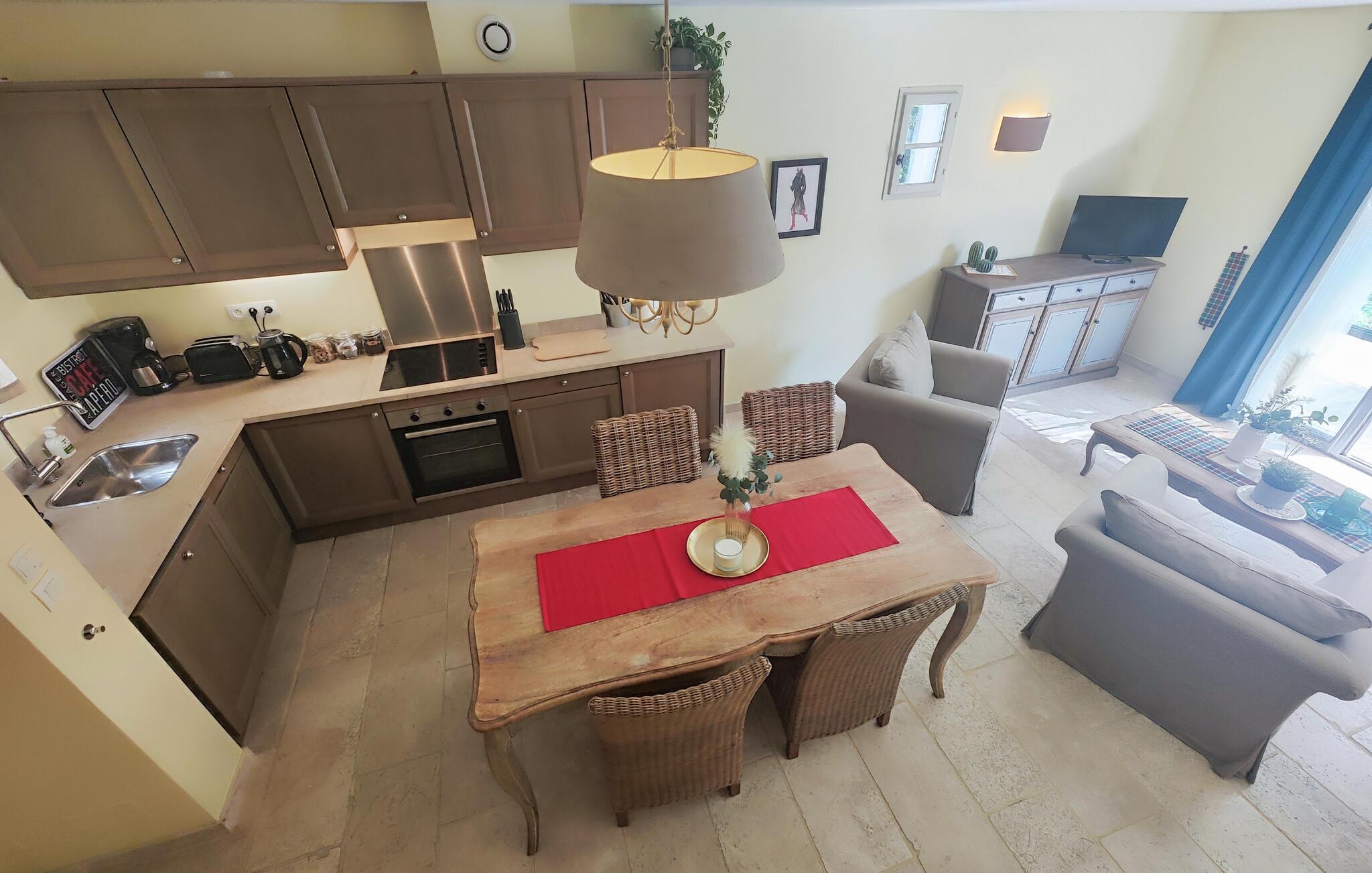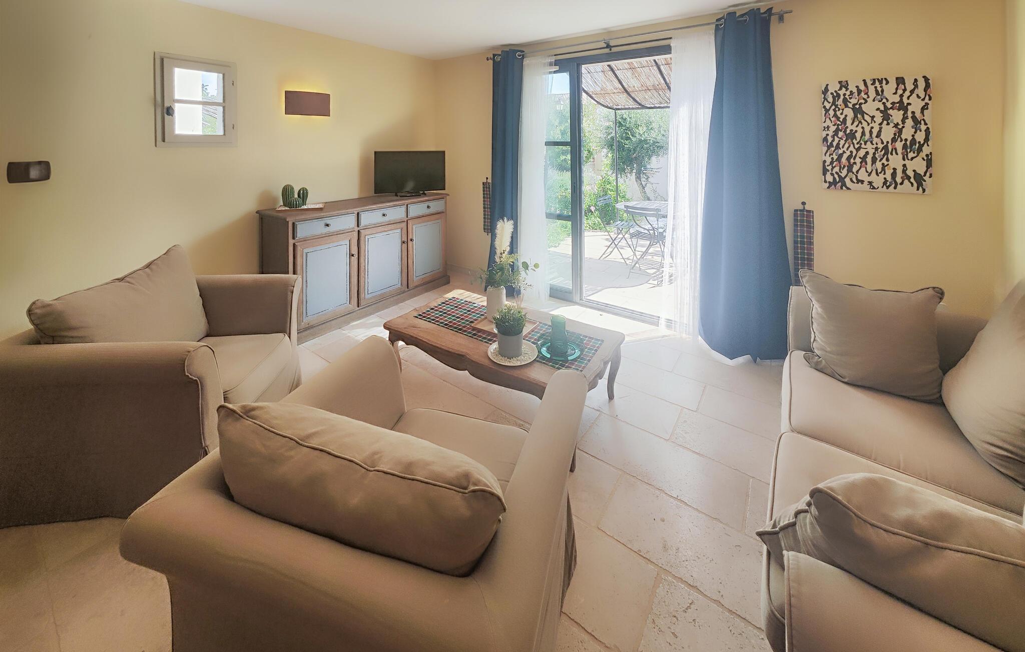 Udendørs venter jer mange timer på terrassen, hvor I kan bade i solen og runde en smuk feriedag af med en kølig drink på de lune sommeraftener.