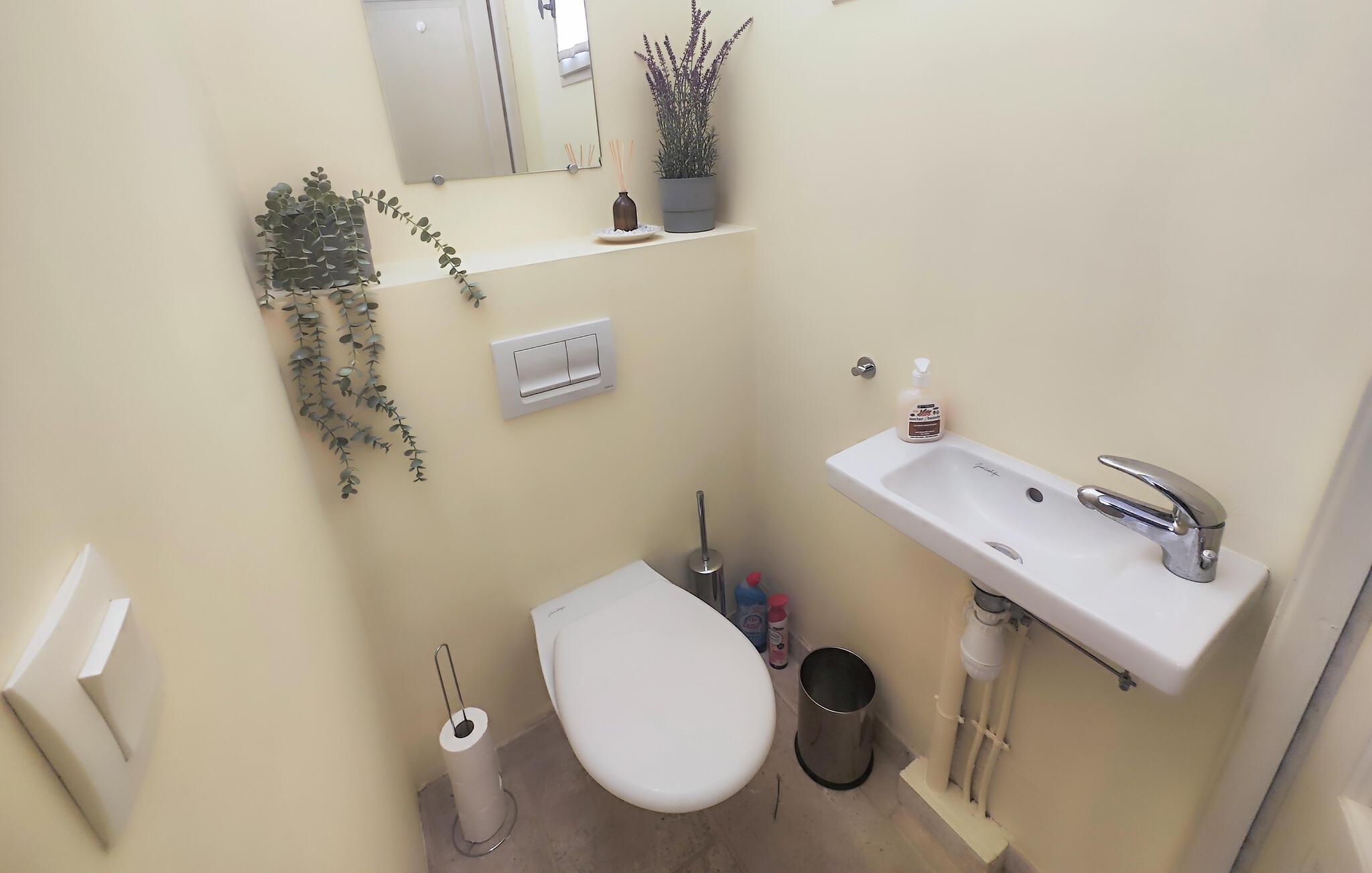 Badeværelse 4m2 (nr. 1) - WC. Varmt og koldt vand. Badekar