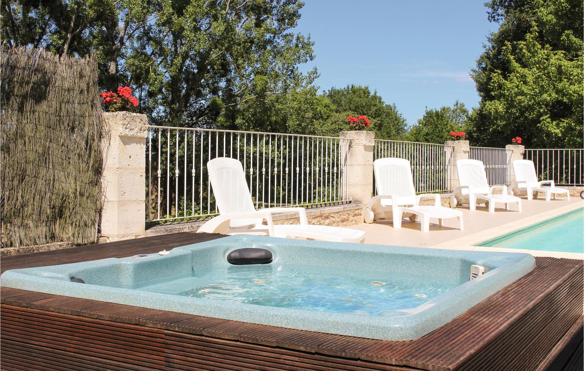 Dette objekt, oprinedligt et vinlager fra det 18. århundrede, ligger i regionen Dordogne og vil med sikkerhed begejstre jer. Die fleste rum vender mod husets bagside. I har en privatpool, der kan opvarmes, til rådighed, og derudover et spa og en whirlpool. Glæd jer til en dejlig fri udsigt på dalen. På køligere aftener kan I hygge ved brændeovnen. Soveværelset, hvor der også er et sovegalleri med 2 enkeltsenge, deles om badeværelset med soveværelse 3. En veludstyret anneks med køkken, badeværelse og et 5. soveværelse byder ekstra privatsfære til nogle af jer. Fra huset er der 2 km til nærmeste indkøbsmulighed, på samme afstand finder I også en restaurant, hvor I kan smage regionens typiske retter og nyde de fremragende lokale vine.