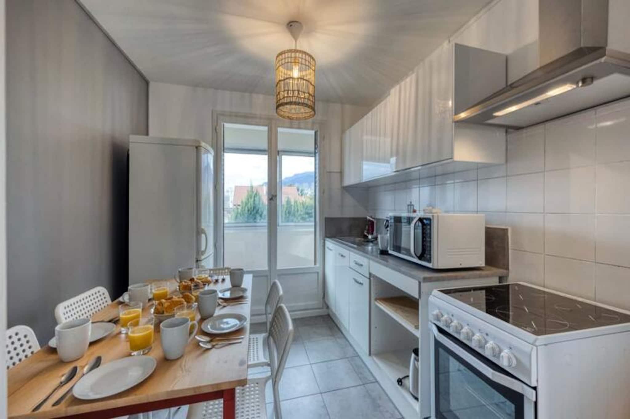 I hjertet af Saint Martin d'Hères, hvor urban komfort møder charmen fra de franske alper, tilbyder denne smukt renoverede 4-værelses lejlighed et indbydende tilflugtssted for op til seks gæster. Uanset om du besøger stedet i forbindelse med forretning eller fritid, kombinerer denne ejendom moderne komfort med et strejf af lokalt præg, hvilket gør den til den perfekte base for dit ophold. Fra det øjeblik du træder ind, vil du føle dig hjemme i de lyse, luftige rum, der er designet til afslapning og forbindelse. Lejligheden har en rummelig stue med et hyggeligt opholdsområde, et tv og Wi-Fi, så du kan holde dig forbundet. Det halvåbne køkken er fuldt udstyret med køleskab, induktionskogeplade, ovn, mikrobølgeovn og kaffemaskine, hvilket sikrer, at du har alt, hvad du behøver for at tilberede lækre måltider. Tre komfortable soveværelser, hver med en dobbeltseng, garderobe, skrivebord og stol, giver afslappende rum til en god nats søvn. Et moderne brusebad og et separat toilet bidrager til bekvemmeligheden, mens loggiaen med en vaskemaskine sikrer et praktisk touch til længere ophold. Gå udenfor, og du vil befinder dig kun få minutter fra offentlige transportforbindelser, herunder C8-bussen, der forbinder dig til universiteter, Echirolles, Eaux Claires og bymidten. Gratis parkering i boligen gør det nemt for dem, der rejser i bil. Udforsk det pulserende lokalområde med dets blanding af kulturelle attraktioner, grønne områder og travle markeder, eller begiv dig længere ud for at opdage de fantastiske landskaber i den omkringliggende region. Uanset om du er her for at udforske byen, nyde de nærliggende bjerge eller blot slappe af i et komfortabelt og veludstyret rum, tilbyder denne lejlighed en ideel blanding af beliggenhed, faciliteter og stil. Book dit ophold i dag, og oplev det bedste af Saint Martin d'Hères.
