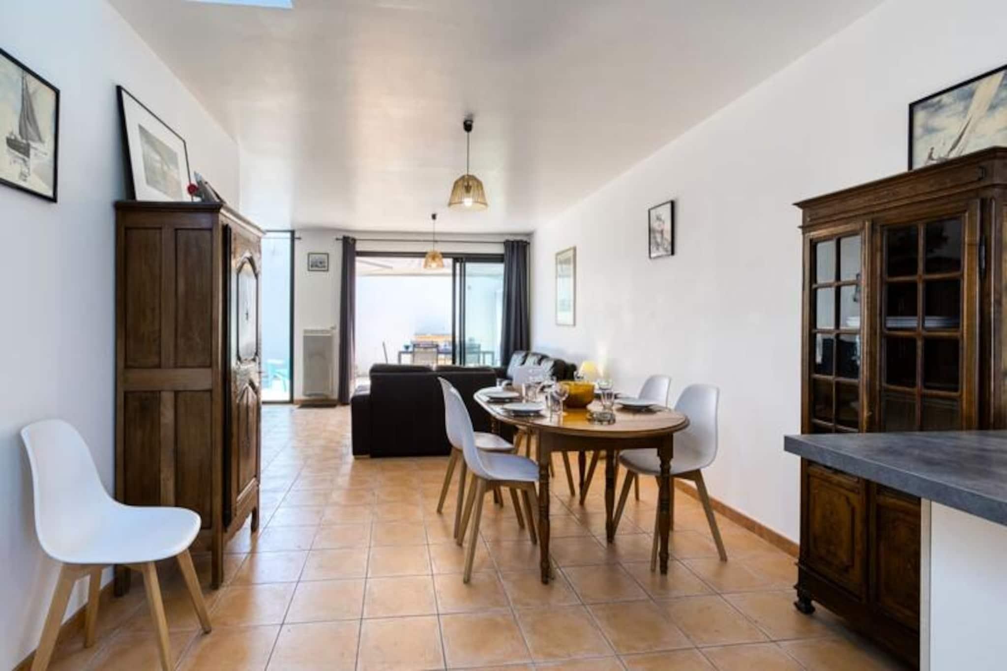 I hjertet af Saint-Pierre-d'Oléron, hvor charmen ved ølivet møder moderne komfort, tilbyder dette dejlige hus på 90 m² en fredfyldt tilflugtssted for op til seks gæster. Forestil dig at vågne op til den blide summen i bymidten, med lokale butikker, bagerier og markeder kun få skridt væk, og løftet om en dag fyldt med kysteventyr og kulinariske lækkerier. Dette er din port til skønheden på Île d'Oléron, hvor hvert hjørne fortæller en historie om fransk ø-liv. Huset er fordelt på to etager og er designet til både afslapning og hygge. Den åbne stue, badet i naturligt lys, forbinder problemfrit stuen, spisestuen og et fuldt udstyret køkken, hvilket gør det perfekt til fælles måltider og hyggelige aftener. Soveværelset i stueetagen med en queensize-seng tilbyder et fredeligt tilflugtssted, mens de airconditionerede soveværelser ovenpå, herunder et med en dobbeltseng og et andet med to enkeltsenge, giver fleksible sovemuligheder for familier eller venner. Moderne faciliteter som Wi-Fi, satellit-tv og stereoanlæg sikrer et behageligt ophold, mens den 30 m² store gårdhave inviterer dig til at slappe af med en bog eller nyde en middag under stjernerne. Træd udenfor, og du vil blive fordybet i Saint-Pierre-d'Olérons pulserende liv. Gå en tur til nærliggende restauranter som La Sardinerie eller Sillage for at nyde frisk fisk og skaldyr og lokale specialiteter. Øens fantastiske strande ligger kun en kort køretur væk og tilbyder muligheder for at solbade, svømme eller udforske kystlinjen. For dem, der søger et strejf af historie, giver byens charmerende gader og nærliggende vartegn et glimt af regionens rige kulturarv. Uanset om du er her for at slappe af, udforske eller forkæle dig selv med øens smagsoplevelser, tilbyder dette hus den perfekte base for et uforglemmeligt ophold. Lad rytmen i Saint-Pierre-d'Oléron guide dine dage og skab minder, der vil hænge ved længe efter din afrejse.