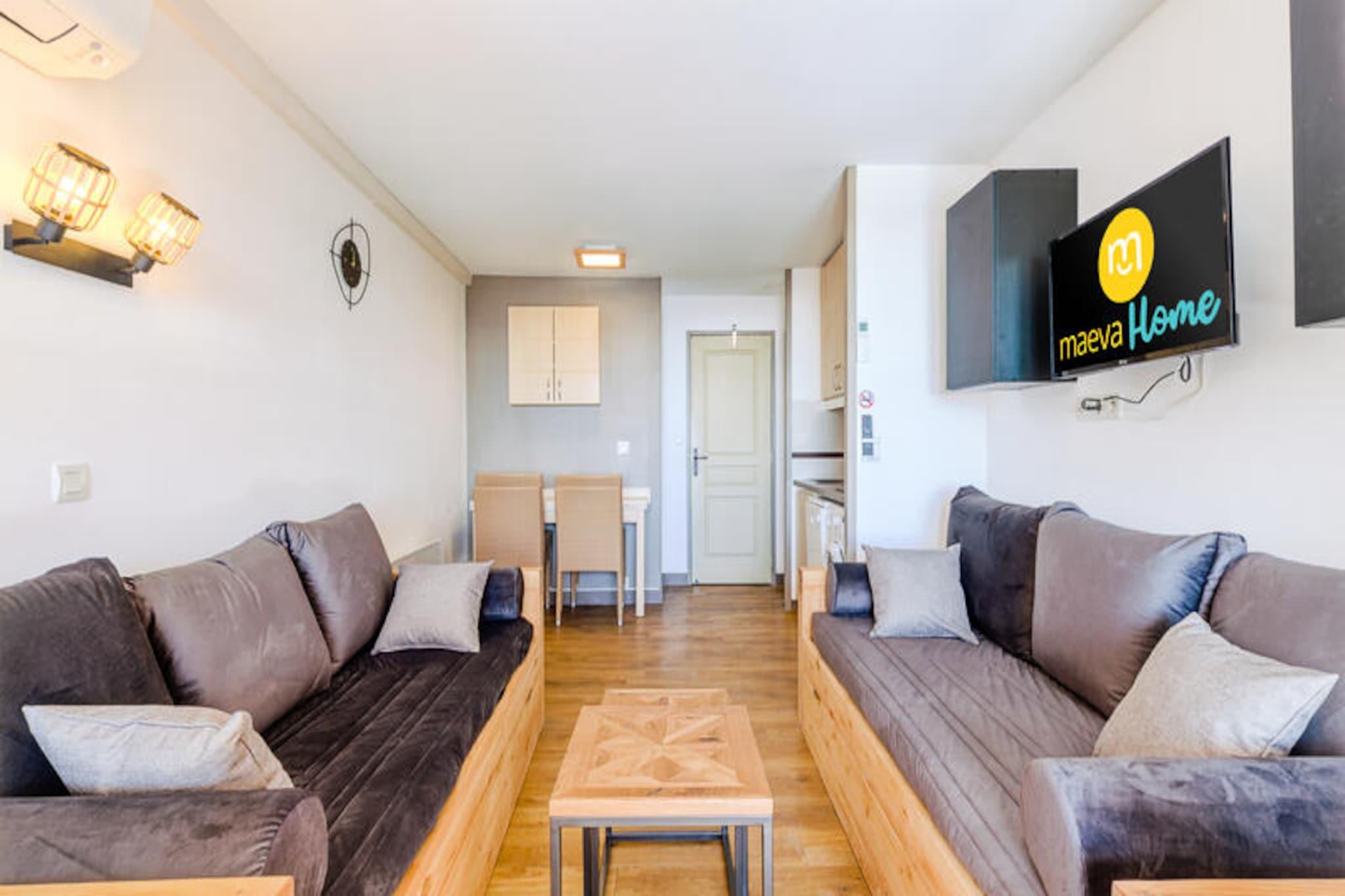 Denne lejlighed på 27 m² er ideel til op til 5 gæster og byder på et komfortabelt soveværelse med en dobbeltseng, en stue med en sovesofa og en udtræksseng samt en balkon med en fantastisk havudsigt. Ejendommen er kæledyrsvenlig, hvilket sikrer, at dine lodne ledsagere kan tage med dig på din ferie. Med en dedikeret parkeringsplads og nem adgang til faciliteter er denne lejlighed perfekt til et afslappende ophold. Gæsterne kan nyde brugen af ??boligens swimmingpools, selvom adgangen afhænger af den valgte bolig. Beliggende i landsbyens centrum, er denne lejlighed kun 100 meter væk fra lokale virksomheder, caféer og markeder, hvilket gør det nemt at nyde det lokale køkken og shopping. Den nærmeste strand ligger mere end 500 meter væk, og der er en praktisk lille tog-service til rådighed for adgang til Agay Bay og Dramont-stranden. De pulserende omgivelser byder også på en række aktiviteter, der sikrer, at der er noget for enhver smag. Lejligheden indeholder et køkken i amerikansk stil med et spisebord og fire stole, perfekt til at tilberede måltider under dit ophold. Badeværelset er veludstyret og byder på et badekar med en søjle, en elektrisk håndklædetørrer og en hårtørrer. For ekstra bekvemmelighed er der en stikkontakt i nærheden af ??spejlet, og der er et separat toilet.