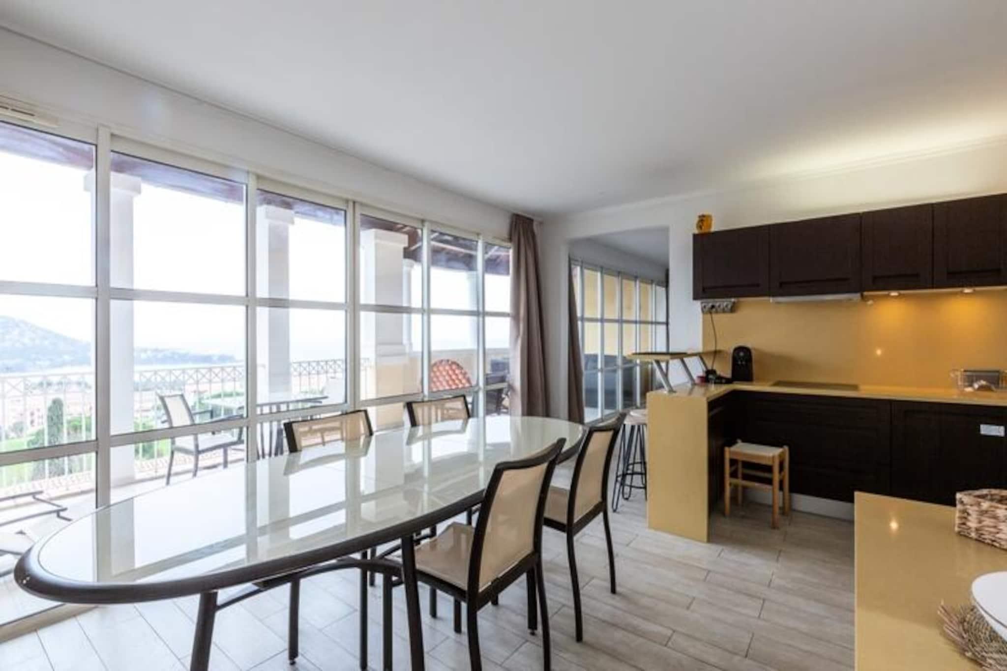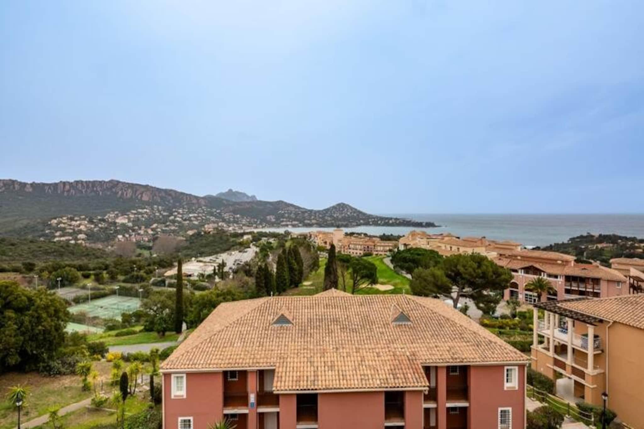 Højt over den glitrende middelhavskyst tilbyder dette solbeskinnede tilflugtssted i Cap Esterel Residence en idyllisk flugt for familier og grupper, der søger både afslapning og eventyr. Med panoramaudsigt over Agay-bugten og Esterel-bjergene fra din store terrasse er hvert øjeblik her fyldt med den franske rivieras skønhed. Uanset om du nyder de gyldne stråler eller en stille aften under stjernerne, lover denne lejlighed på øverste etage uforglemmelige minder. \n\nTræd indenfor og oplev et rummeligt og gennemtænkt interiør på 78 m². Lejligheden har komfortabel plads til op til otte gæster med tre soveværelser, en lys stue med sovesofa og tre badeværelser for ekstra bekvemmelighed. Det fuldt udstyrede åbne køkken inviterer dig til at tilberede lækre måltider, som du kan nyde under åben himmel på terrassen. Moderne faciliteter såsom vaskemaskine, tv og valgfri Wi-Fi sikrer et behageligt ophold, mens den inkluderede parkering og babyudstyr gør det til et familievenligt valg.\n\nUden for din dørtrin er Cap Esterel Village et pulserende centrum for aktivitet. Gå en tur gennem charmerende gader fyldt med butikker, restauranter og barer, eller tag en dukkert i en af ??de tre fantastiske swimmingpools med rutsjebaner, bølgebassin og spabade. For de yngre gæster tilbyder børne- og teenageklubberne en række spændende aktiviteter, lige fra hemmelige agentmissioner til cirkusworkshops. Når det er tid til at tage til stranden, kan du hoppe på det lille tog for en hurtig tur til Agay-bugten eller Dramont-stranden, kun 1 km væk.\n\nUanset om du er her for at udforske Esterel-bjergenes barske skønhed, slappe af ved poolen eller nyde Middelhavets krystalklare vand, tilbyder denne bolig den perfekte base for en uforglemmelig ferie. Lad charmen ved den franske riviera fortrylle dig på Cap Esterel.