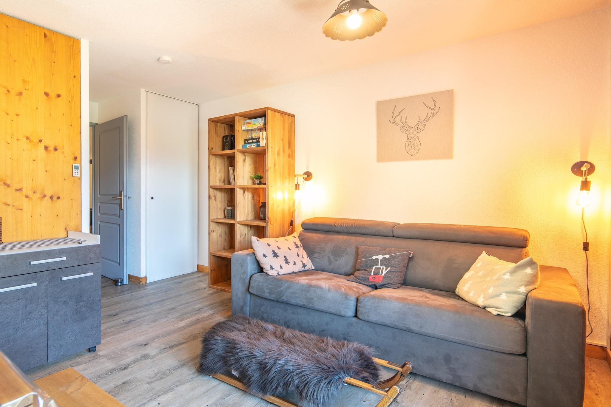 Les Grizzlis N 24 - 2P5 i Saint-Sorlin-d"Arves tilbyder et hyggeligt bjergparadis med alt hvad du behøver for en afslappende ferie. Denne 35 m² store lejlighed har et komfortabelt soveværelse, en lys stue og et privat badeværelse med bruser. Det fuldt udstyrede køkken inkluderer køleskab, mikrobølgeovn, ovn, opvaskemaskine, brødrister og kaffemaskine, hvilket gør det nemt at tilberede måltider efter en dag udendørs. Træd ud på den private balkon for at nyde den storslåede udsigt over bjergene eller slap af i boligens opvarmede udendørs swimmingpool, det perfekte sted at slappe af og lade op. Lejligheden har også essentielle faciliteter som køkkenudstyr, elkedel og te-/kaffemaskine, hvilket sikrer et bekvemt og behageligt ophold. Lejligheden ligger kun 8 km fra Croix de Fer og 22 km fra skiområdet Les Sybelles og er ideel for både vintersportsentusiaster og naturelskere. Chambéry-Savoie Lufthavn ligger 105 km væk, hvilket giver nem adgang for rejsende. Uanset om du kommer for at stå på ski, vandre eller blot for at nyde de rolige alpine omgivelser, tilbyder Les Grizzlis en indbydende base for... din bjergferie.