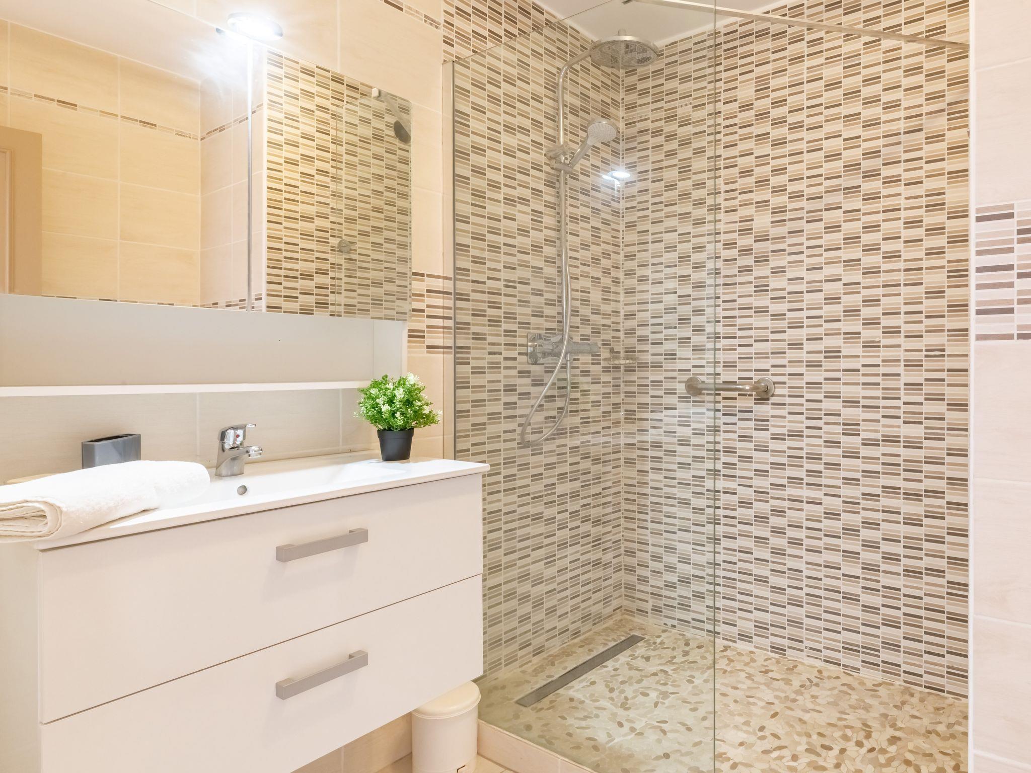 2-room apartment 38 m2, on the upper ground floor, south facing position. Renovated, comfortable and cosy furnishings: living/dining room with 1 sofabed (140 cm, length 190 cm), TV (flat screen). Exit to the terrace. 1 room with 1 french bed (1 x 140 cm, length 190 cm). Kitchen (oven, 2 ceramic glass hob hotplates, toaster, kettle, microwave, freezer, electric coffee machine). Shower/WC. Electric heating. Terrace 6 m2. Terrace furniture. Beautiful view of the sea. Facilities: washing machine, dryer, iron, baby cot. Internet (WiFi, free). Parking space n 25 (roofed, 1 car), height 220 cm, width 230 cm. Please note: non-smokers only. Maximum 1 pet/ dog allowed. Smoke alarm. 83115003919DP
