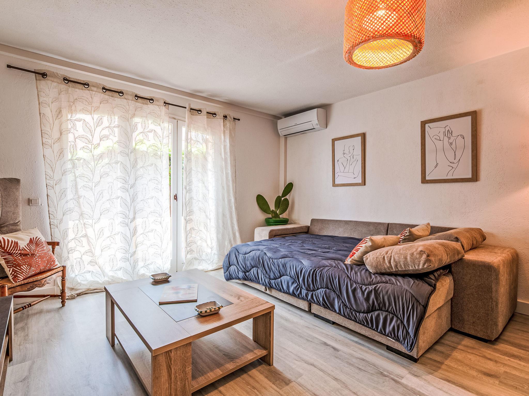 2-room apartment 50 m2, on the ground floor, south facing position. Renovated in 2025, comfortable and beautiful furnishings: living/dining room with 1 double sofabed (140 cm, length 190 cm), TV (flat screen). Exit to the terrace. 1 room with 1 french bed (160 cm, length 200 cm). Open kitchen (oven, dishwasher, 4 induction hot plates, toaster, kettle, electric coffee machine). Bathroom, sep. WC. Air-conditioning, forced-air heating. Terrace 10 m2. Terrace furniture. Partial view of the sea. Facilities: washing machine, iron, hair dryer. Internet (WiFi, free). Garage. Please note: non-smokers only. 1 small pet/ dog allowed. Smoke alarm. Offer by a private individual according to Art. 155, IV of CGI. 83115001524AV