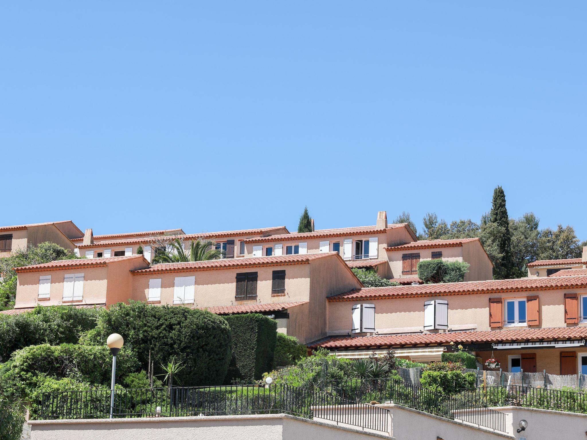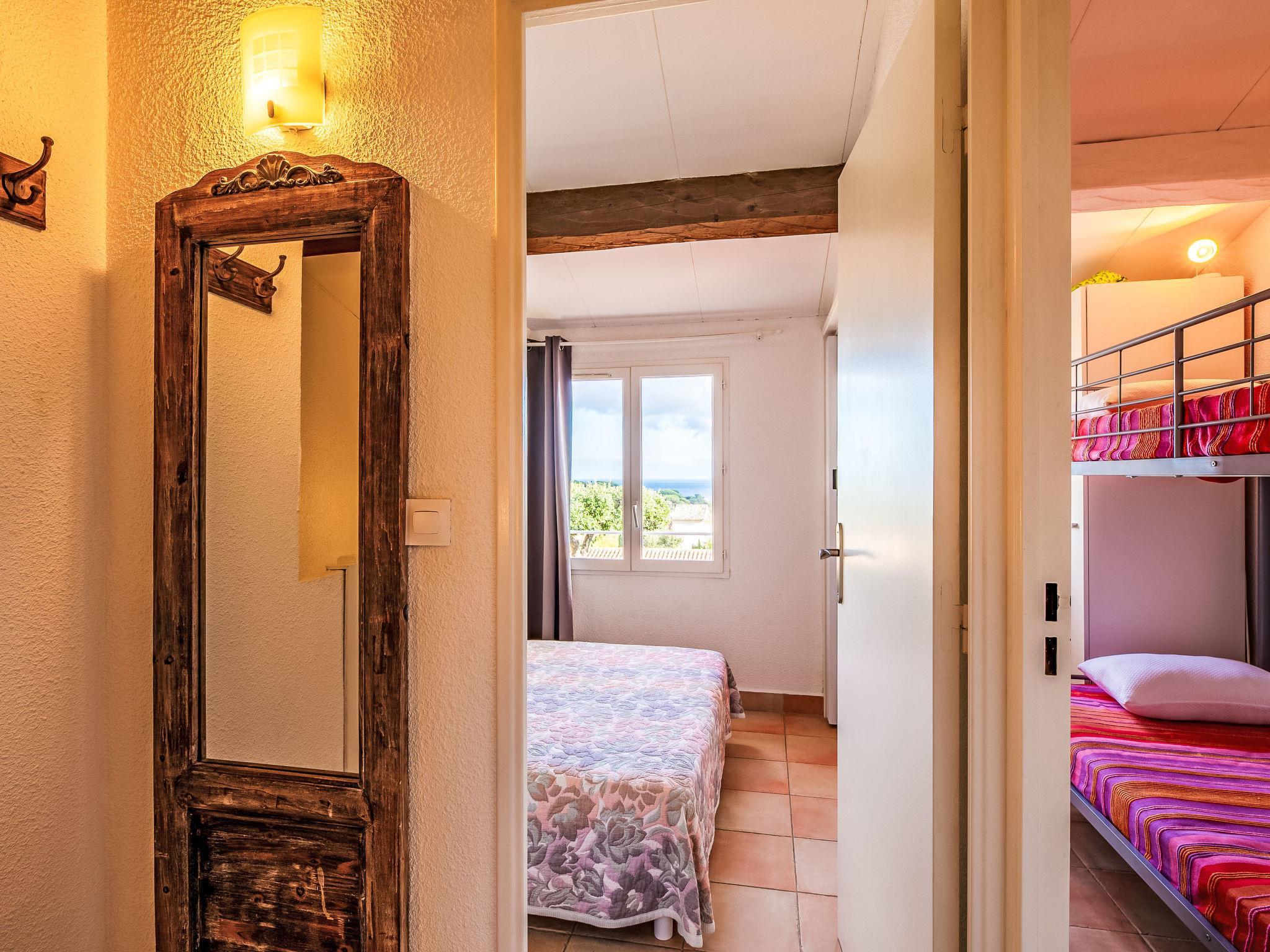 2-room terraced house 36 m2, south facing position. Cosy furnishings: living/dining room with 1 double sofabed (1 x 130 cm, length 190 cm), TV (flat screen), electric heater. Exit to the terrace, to the patio. Open kitchen (mini-oven, dishwasher, 2 ceramic glass hob hotplates, toaster, kettle, freezer, electric coffee machine). Upper floor: (steep stair), 1 small room with 1 french bed (1 x 140 cm, length 190 cm). Small sleeping alcove 7 m2 with 1 x 2 bunk beds (90 cm, length 190 cm). Shower/WC. Electric heating, air-conditioning. Terrace 45 m2. Terrace furniture. View of the sea. Facilities: washing machine, iron, hair dryer. Internet (WiFi, free). Parking space n 45. Please note: non-smokers only. Smoke alarm. Offer by a private individual according to Art. 155, IV of CGI. 83115005401DP