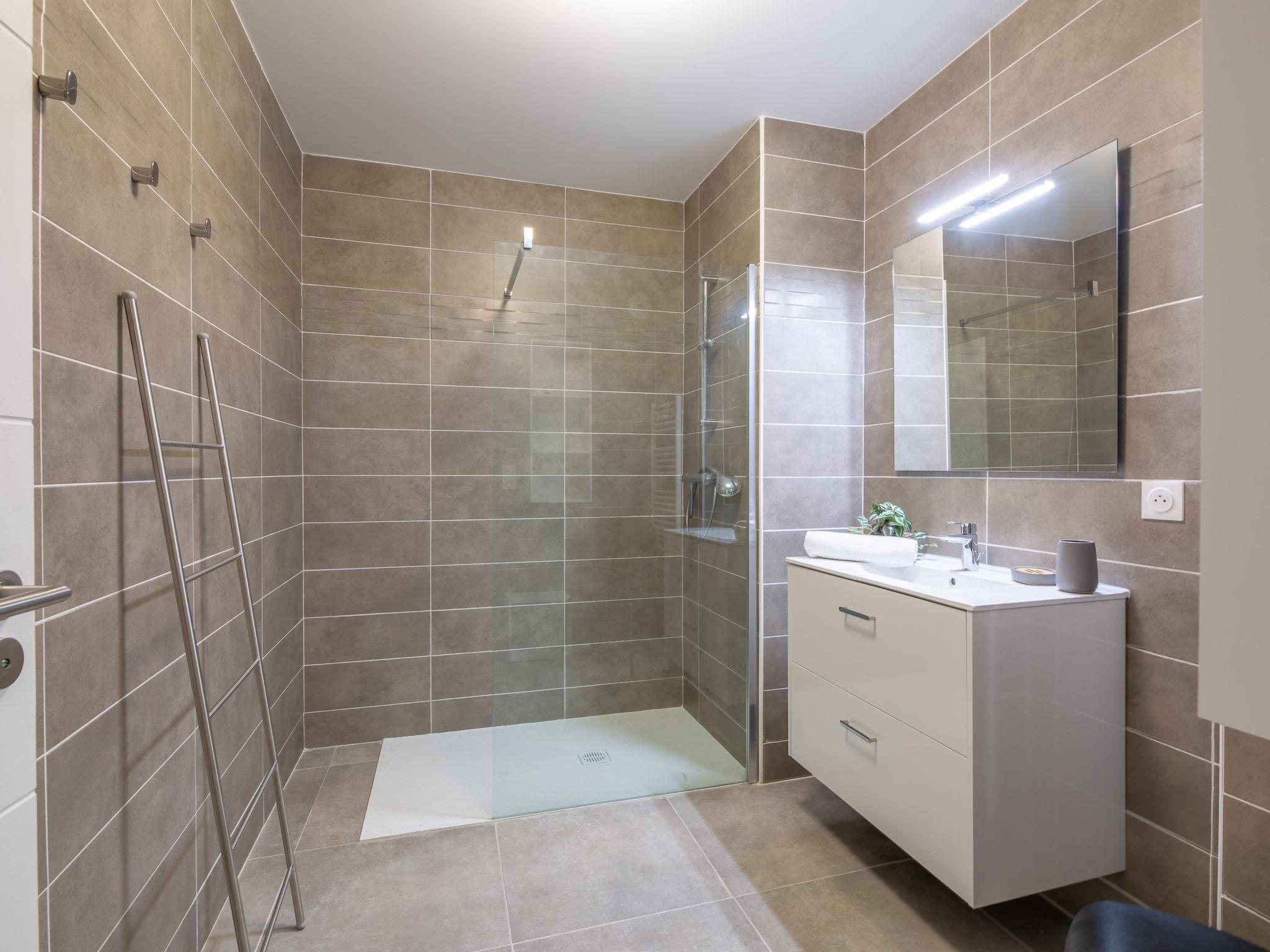 Modern apartment block "Le Clos d'Alice", 2 storeys, built in 2024. 10 apartments in the residence. In the district of Saquèdes, on the outskirts, 1.3 km from the centre, in a quiet, sunny position in the residential district, traffic calmed area, 1.5 km from the sea, 1.5 km from the beach, in the countryside. For shared use: well-kept garden, swimming pool angular fenced (10 x 5 m, depth 180 cm, seasonal availability: 01.Jun. - 30.Sep.). Parking. Grocery 400 m, supermarket 1.8 km, bakery 400 m, 15 minute walk to the centre, bus stop 450 m, sandy beach "centre Ville" 1.5 km, thermal baths "Thalasso Spa des Issambres" 7 km. Sports harbour 1.5 km, golf course (18 hole) 4 km, tennis 3 km. Nearby attractions: Aqualand Waterpark 2 km, Navette/Shuttle boat St Tropez 20min 1.5 km, St Tropez / Ramatuelle 17 km, Port-Grimaud 10 km, Gorges du Verdon 80 km. Hiking paths: Massif des Maures 5 km, Massif de l'Esterel 25 km. Please note: car recommended. Residence with electric gates. The keys‘ handover takes place by the agency Interhome in Sainte Maxime. Neighbourhood highly sensitive to noise. Quietness and good behaviour expected.