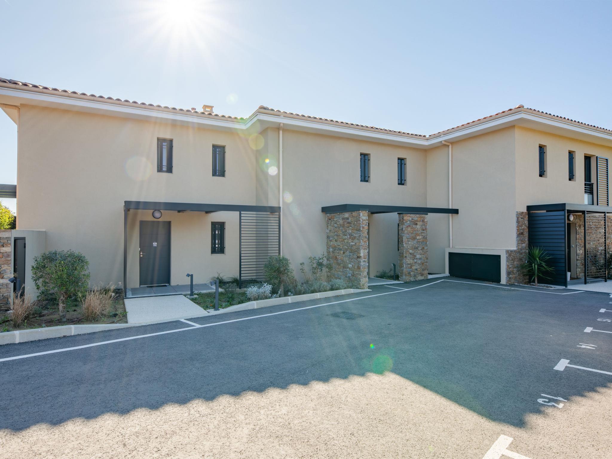 Modern apartment block "Le Clos d'Alice", 2 storeys, built in 2024. 10 apartments in the residence. In the district of Saquèdes, on the outskirts, 1.3 km from the centre, in a quiet, sunny position in the residential district, traffic calmed area, 1.5 km from the sea, 1.5 km from the beach, in the countryside. For shared use: well-kept garden, swimming pool angular fenced (10 x 5 m, depth 180 cm, seasonal availability: 01.Jun. - 30.Sep.). Parking. Grocery 400 m, supermarket 1.8 km, bakery 400 m, 15 minute walk to the centre, bus stop 450 m, sandy beach "centre Ville" 1.5 km, thermal baths "Thalasso Spa des Issambres" 7 km. Sports harbour 1.5 km, golf course (18 hole) 4 km, tennis 3 km. Nearby attractions: Aqualand Waterpark 2 km, Navette/Shuttle boat St Tropez 20min 1.5 km, St Tropez / Ramatuelle 17 km, Port-Grimaud 10 km, Gorges du Verdon 80 km. Hiking paths: Massif des Maures 5 km, Massif de l'Esterel 25 km. Please note: car recommended. Residence with electric gates. The keys‘ handover takes place by the agency Interhome in Sainte Maxime. Neighbourhood highly sensitive to noise. Quietness and good behaviour expected.