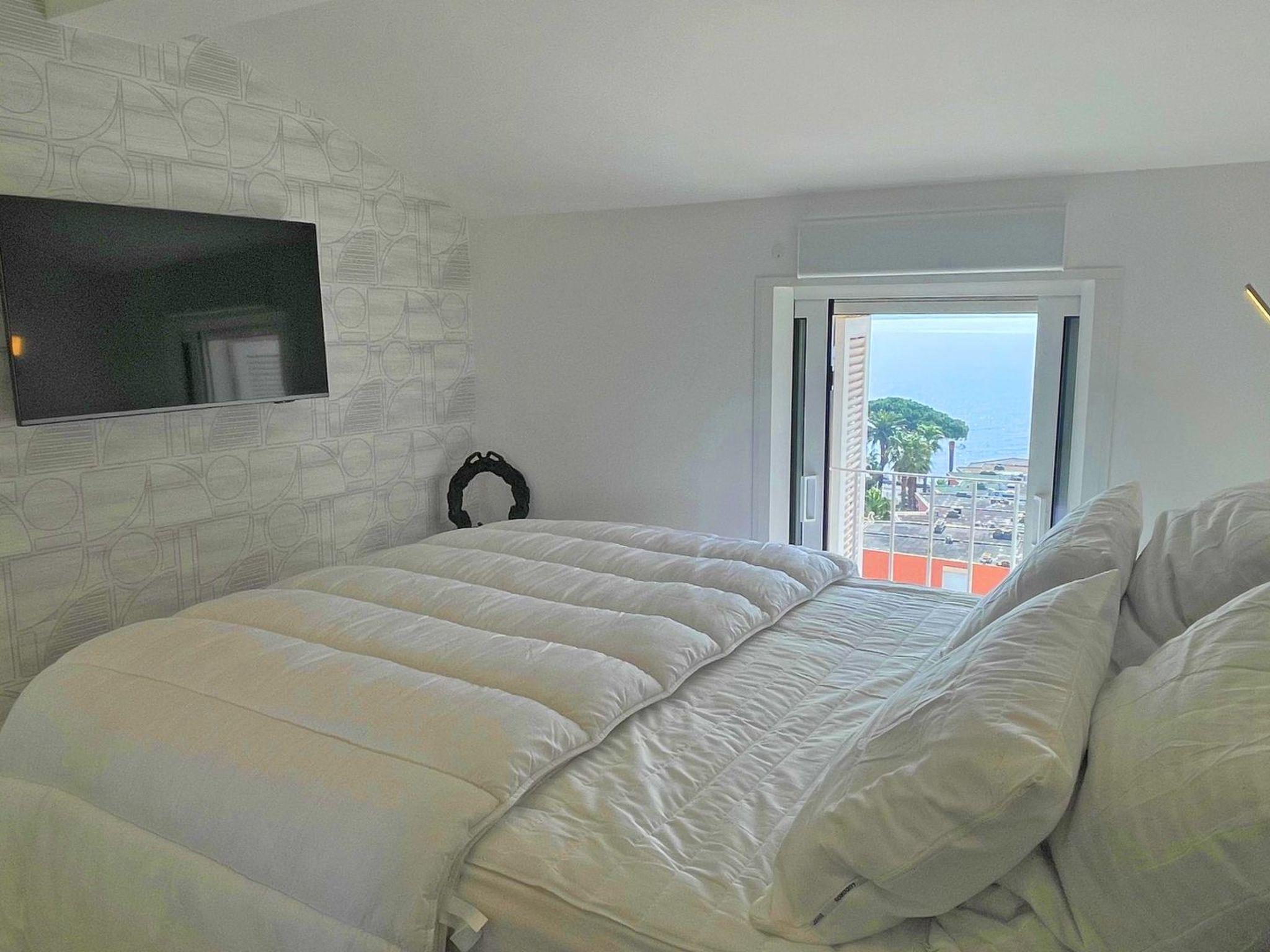 - Air-conditioned bedroom 2 with double bed 160cm (also sea view when lying down!), television, wardrobes and en suite shower room: shower, vanity unit, heated towel rail