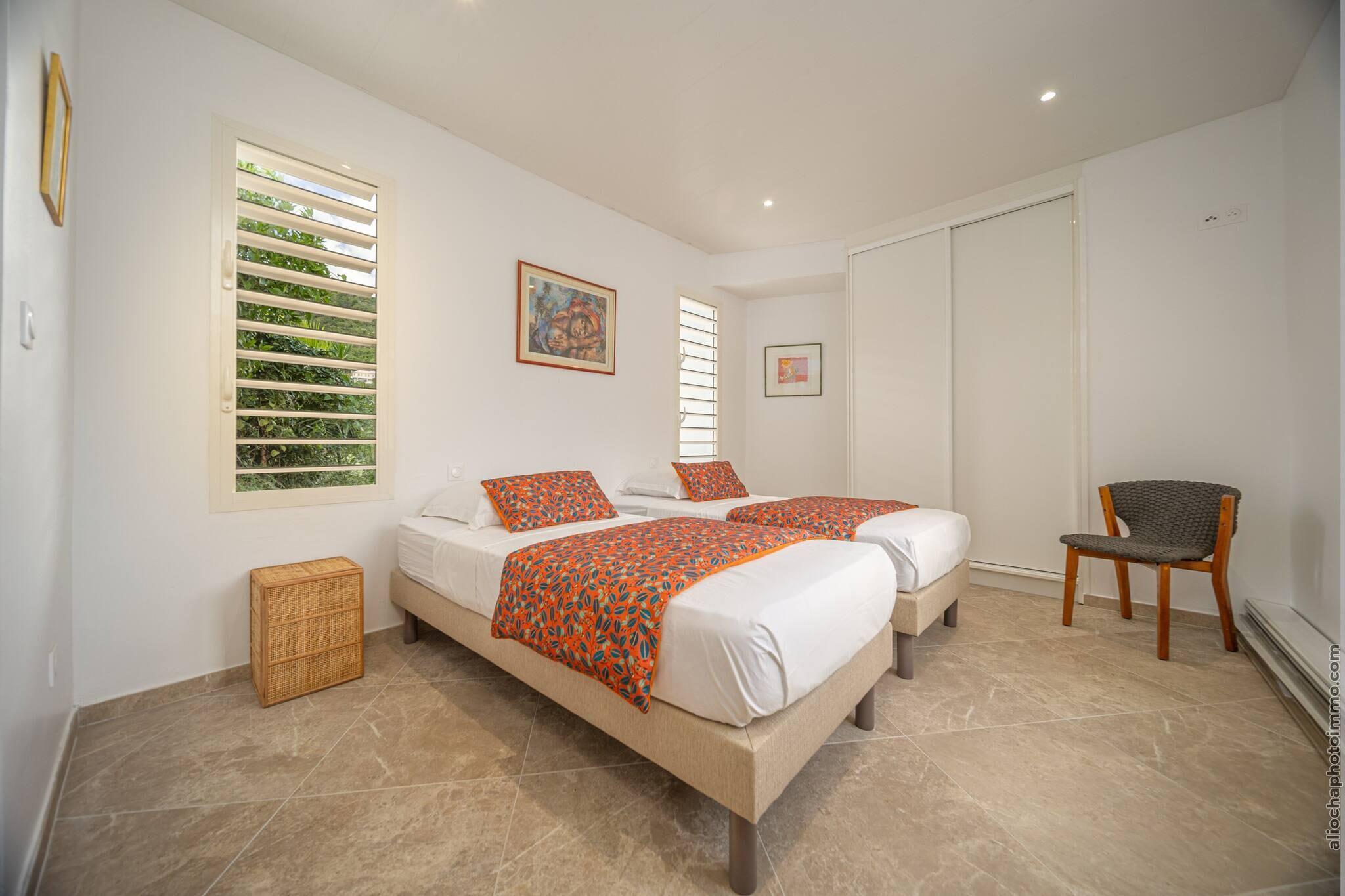 Flygt til paradis med denne unikke ejendom med to villaer i Sainte-Luce, Martinique – kun 5 minutters gang fra den turkisblå kyst ved Gros Raisin-stranden. Disse smukt indrettede hjem er perfekte til gruppeferier og tilbyder komfort, privatliv og plads til op til 10 gæster. Med 5 soveværelser med aircondition og 6 senge (inklusive 2 queensize-senge, 1 dobbeltseng, 2 enkeltsenge og 1 sovesofa) er der plads til alle at slappe af. Hver villa har et fuldt udstyret åbent køkken med moderne apparater, herunder opvaskemaskine, kaffemaskine, mikrobølgeovn, juicer og meget mere. Udenfor kan du nyde to private swimmingpools, en frodig have og en 30 m² terrasse med grill og havemøbler - ideelt til afslappet ø-liv. Efter en dag med sol og hav kan du slappe af foran satellit-tv'et eller nyde lokal mad på nærliggende strandrestauranter. Villaerne ligger i det charmerende Gros Raisin-kvarter og er tæt på vandsport, naturskønne kyststier, lokale markeder og kunsthåndværkerbutikker. Områdets fredelige atmosfære og autentiske kreolske charme gør det perfekt til familieferier eller afslapning med venner. Bemærk venligst: Fester er ikke tilladt, og musikken skal skrues ned efter kl. 22:00. Privat parkering er tilgængelig for op til 3 køretøjer. Book din ø-ferie i dag!