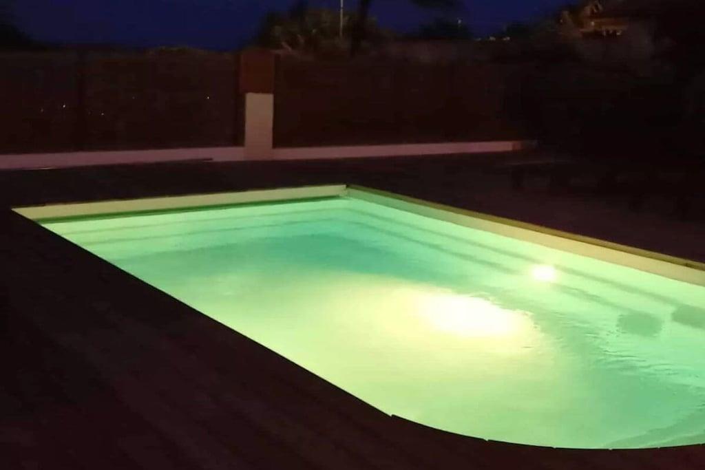Huset har tre soveværelser, to badeværelser og et separat toilet. Den rummelige stue har et komfortabelt siddeområde, og køkkenet er udstyret med moderne faciliteter såsom ovn, keramisk kogeplade, mikrobølgeovn og opvaskemaskine. Fra køkkenet har du direkte adgang til terrassen med spiseplads, grill, elektriske parasoller og et komfortabelt opholdsområde. Den private opvarmede pool måler 6 x 3,2 meter og er møbleret med seks liggestole og to parasoller. Der er en privat indgangsport og parkering til tre biler. Et aflåseligt haveskur giver sikker opbevaring af dine cykler.