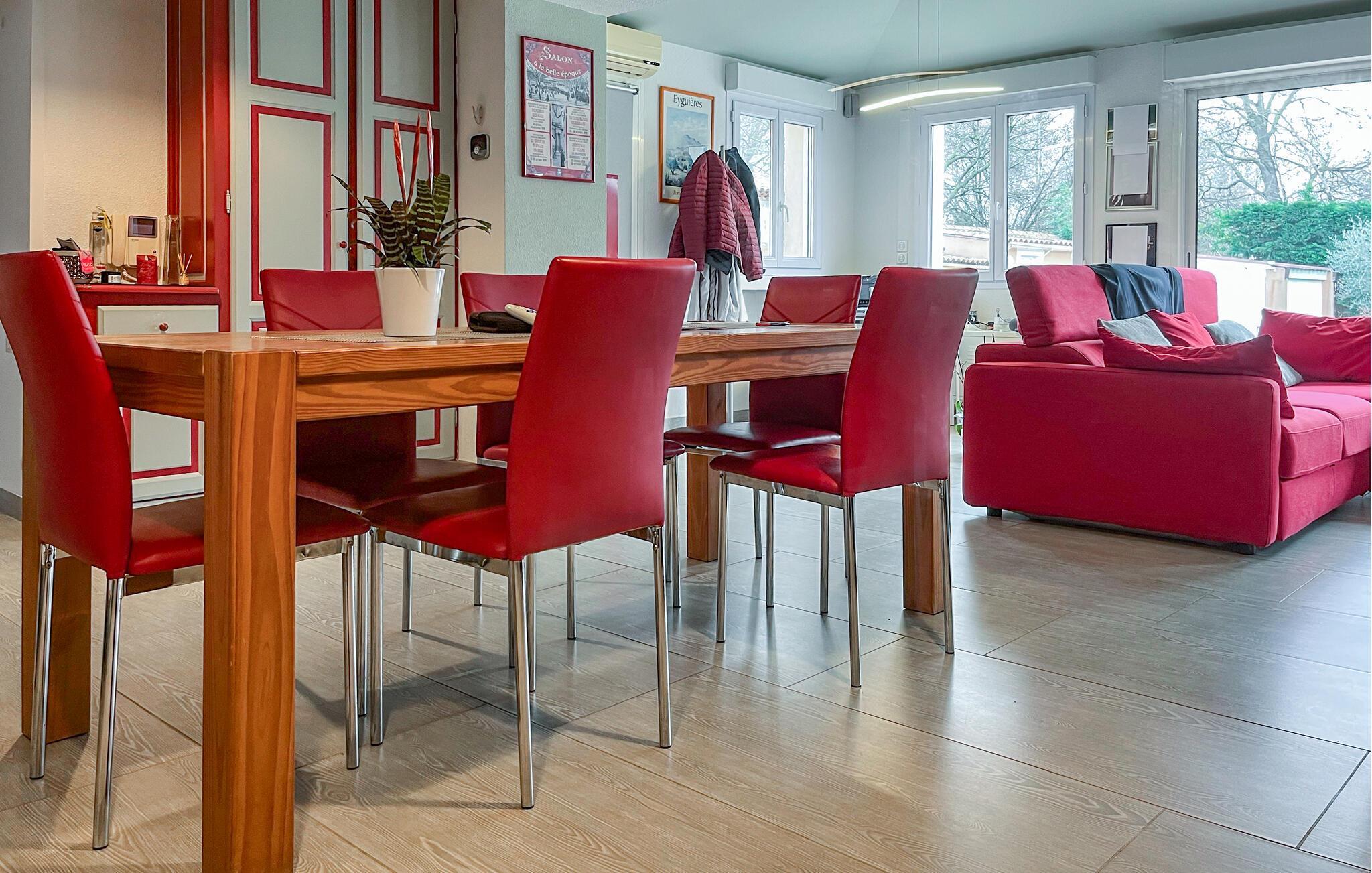 Dette smagfuldt indrettede feriehus i Salon-de-Provence er farverigt og hyggeligt og tilbyder med sine moderne faciliteter det perfekte grundlag for en uforglemmelig ferie i Provence. Glæd jer til herlige madlavningsaftener i det åbne køkken og nyd måltiderne sammen ved det store spisebord, inden I sætter jer godt til rette i sofaerne og reflekterer over dagens oplevelser med en god bog eller et glas vin efter en begivenhedsrig dag.