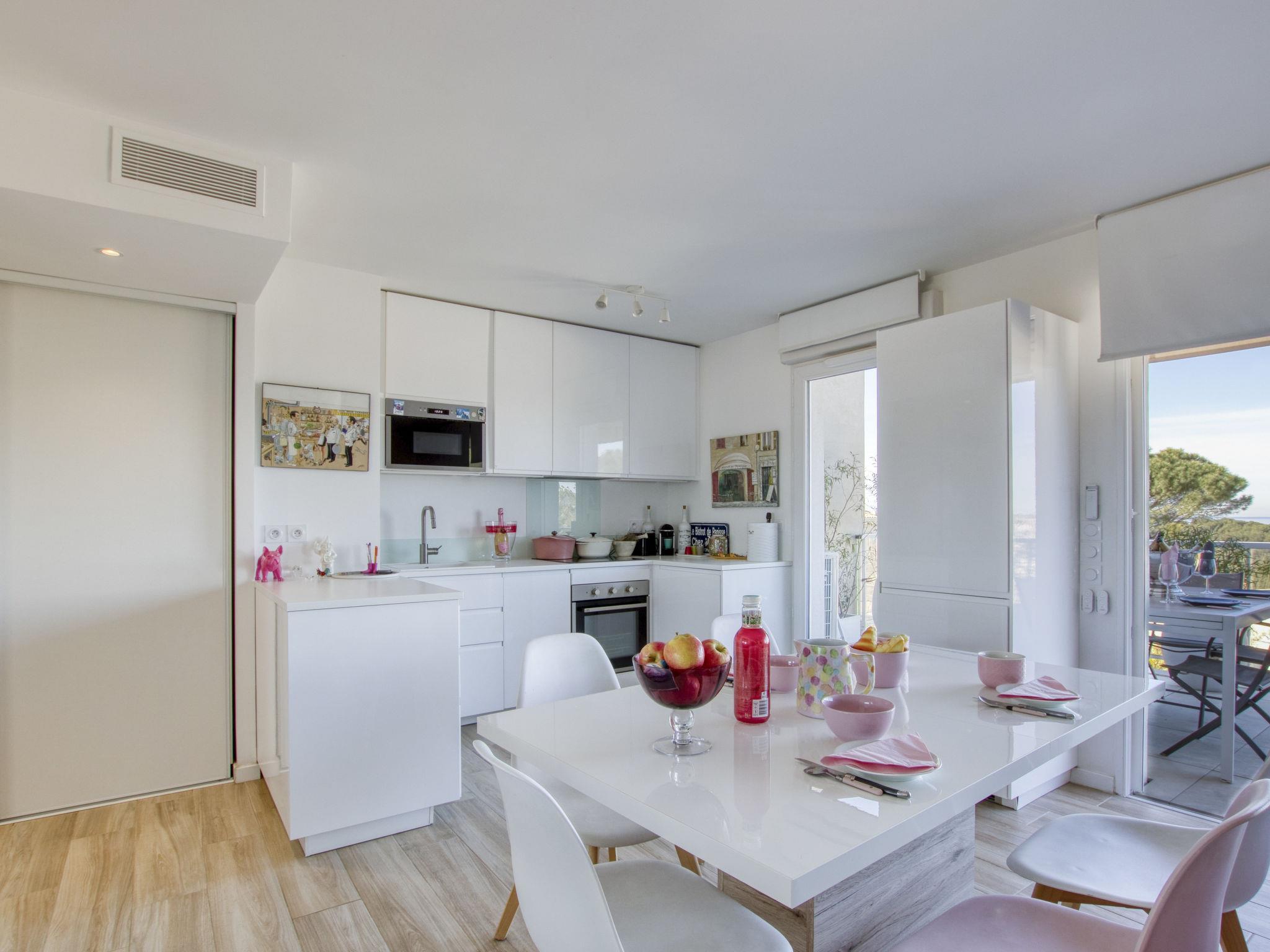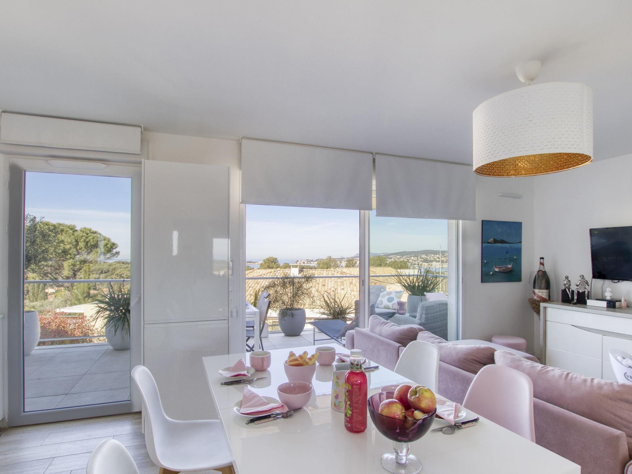 3-room apartment 63 m2 on 1st floor. Object suitable for 2 adults + 2 children. Comfortable and beautiful furnishings: living/dining room with TV (flat screen), air conditioning. Exit to the terrace. 1 room with 1 french bed (160 cm, length 200 cm), air conditioning. 1 room with 1 pull-out bed (2 x 80 cm, length 200 cm), air conditioning. Open kitchen (oven, dishwasher, 4 induction hot plates, toaster, kettle, microwave, freezer, electric coffee machine). Exit to the terrace. Shower, sep. WC. Forced-air heating. Terrace 20 m2, south-west facing position. Terrace furniture. Very beautiful panoramic view of the sea. Facilities: washing machine. Internet (WiFi, free). Parking space n 13 (1 car). Please note: non-smokers only. TV only FR. Smoke alarm. Offer by a private individual according to Art. 155, IV of CGI. 83123000920IW